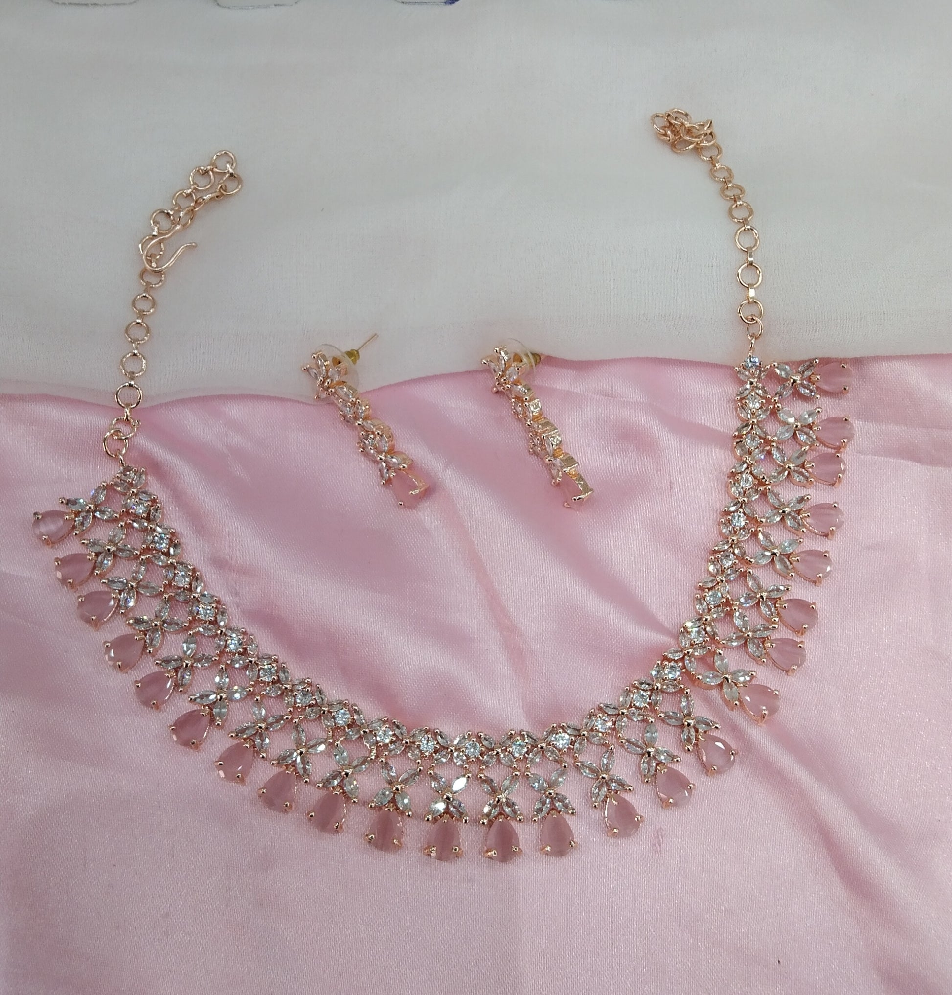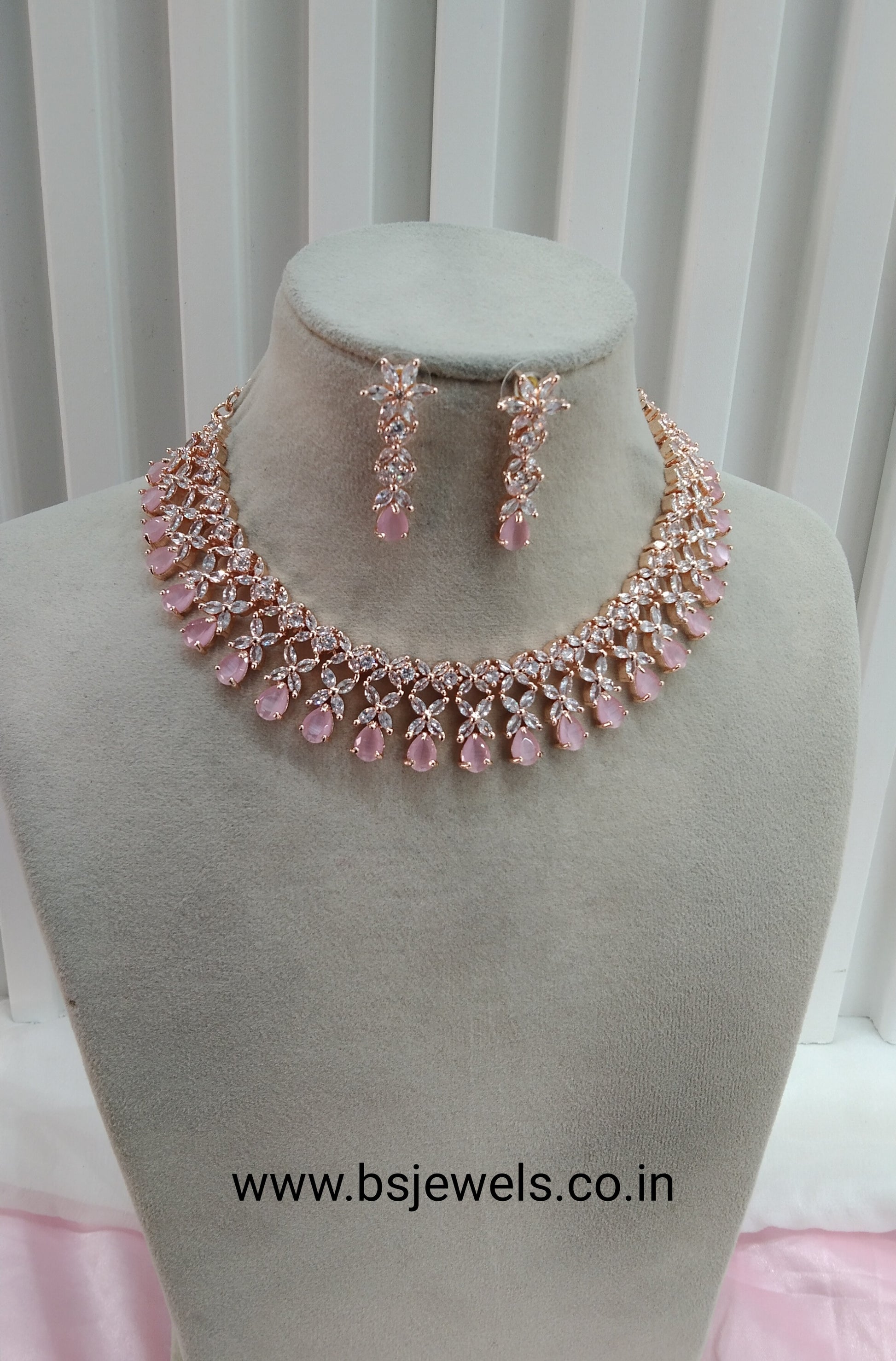 Pink Rose CZ Necklace Jewellery Oxnard Set