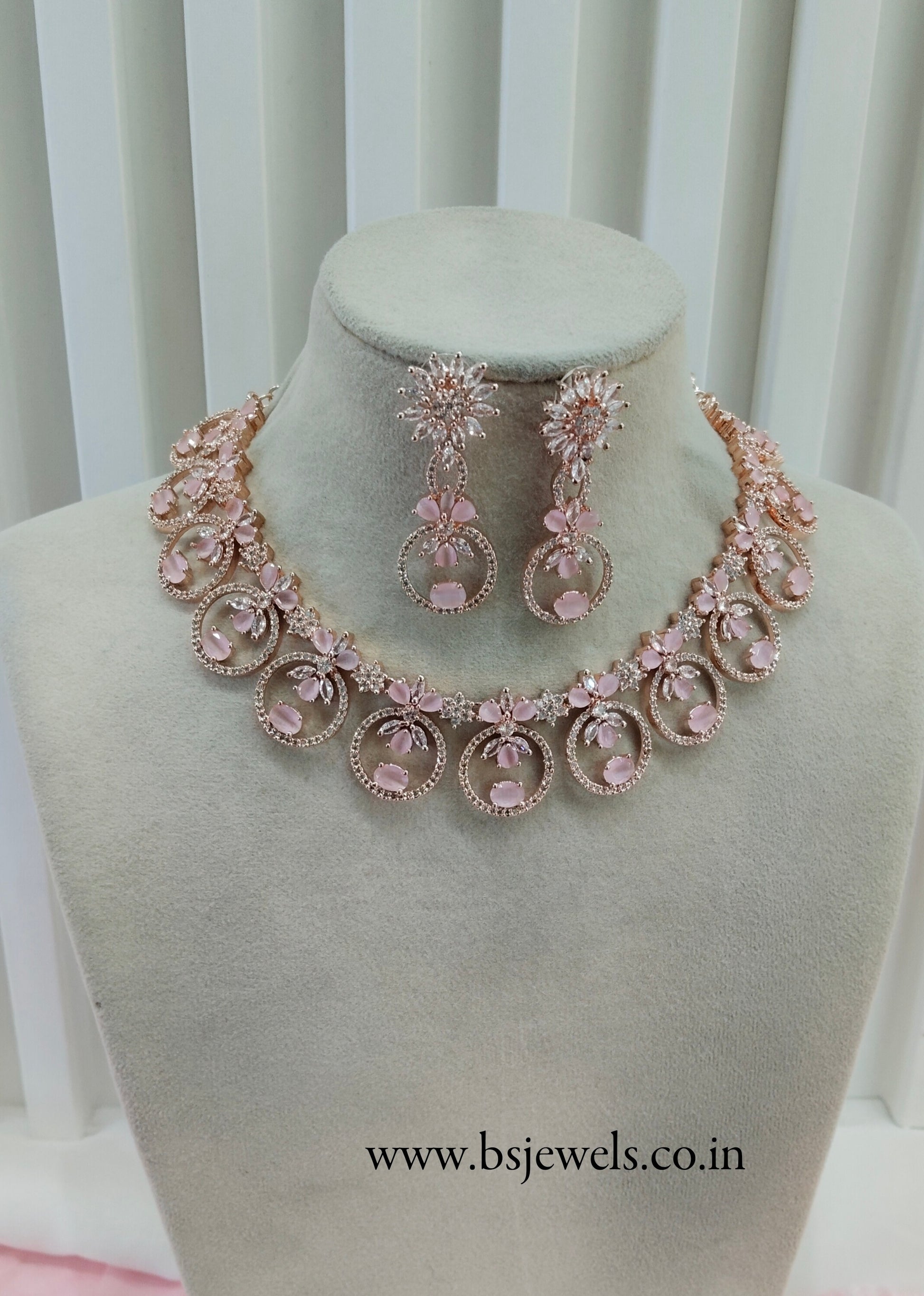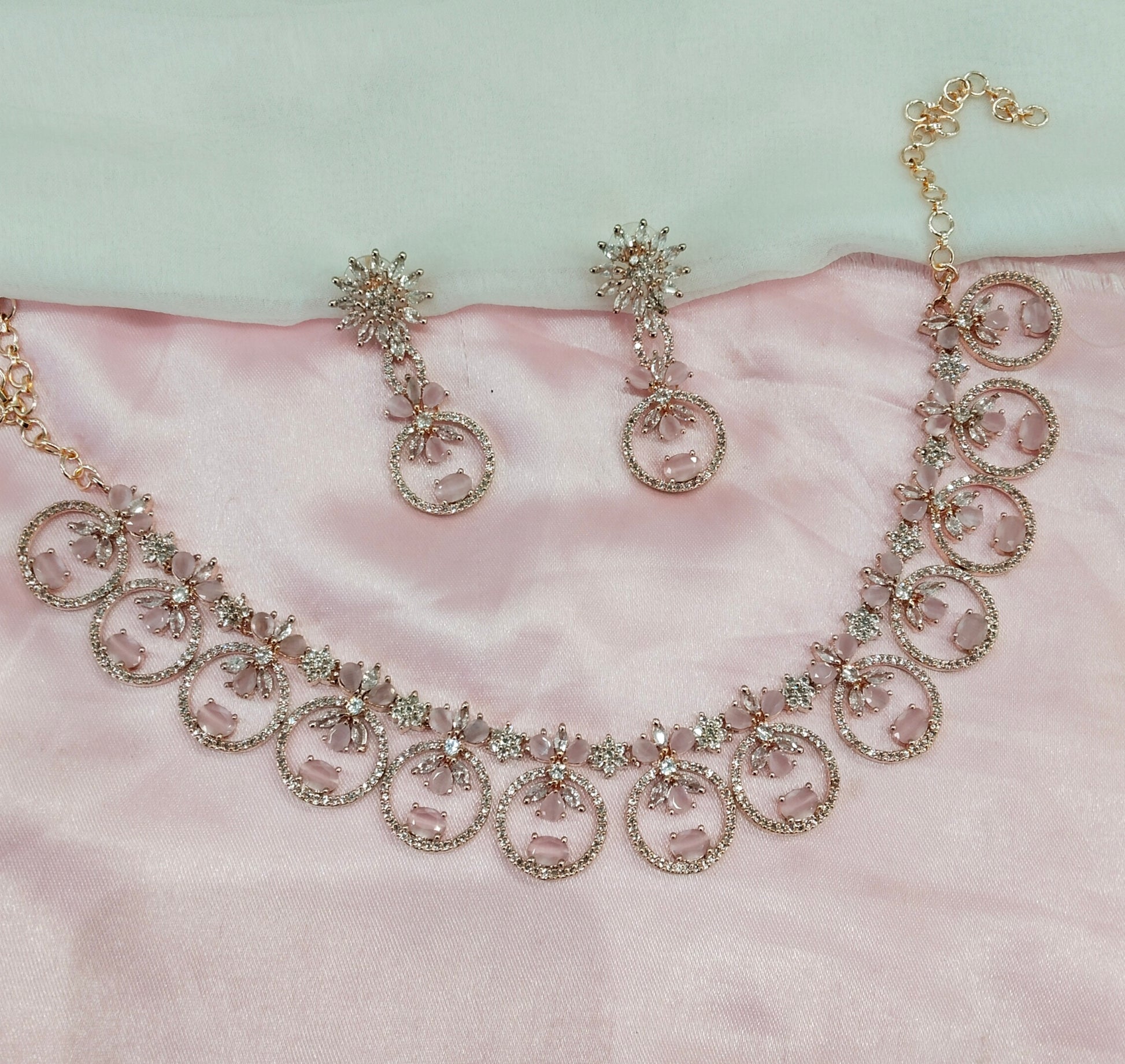 Pink Rose CZ Necklace Jewellery Sanam Set