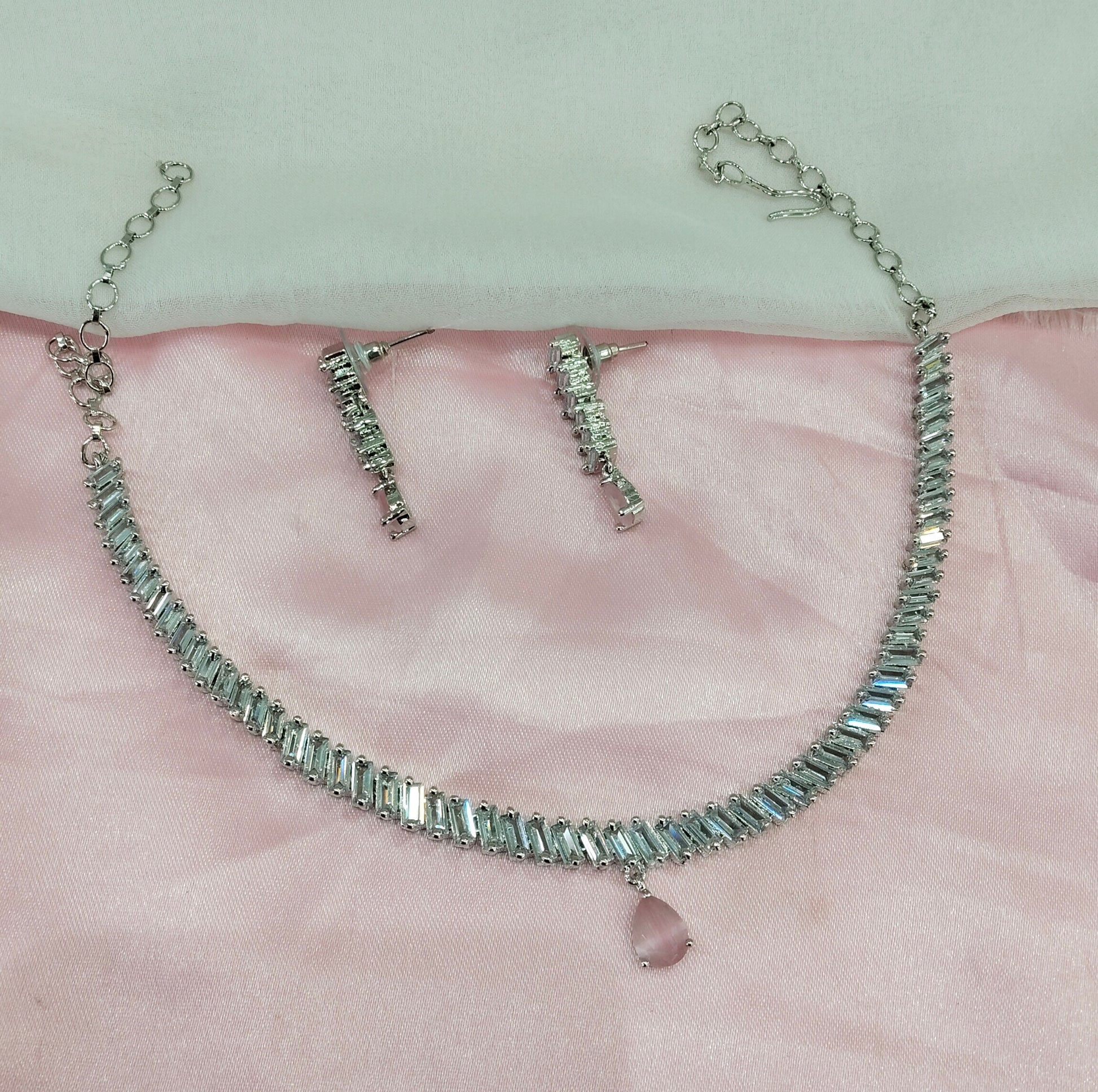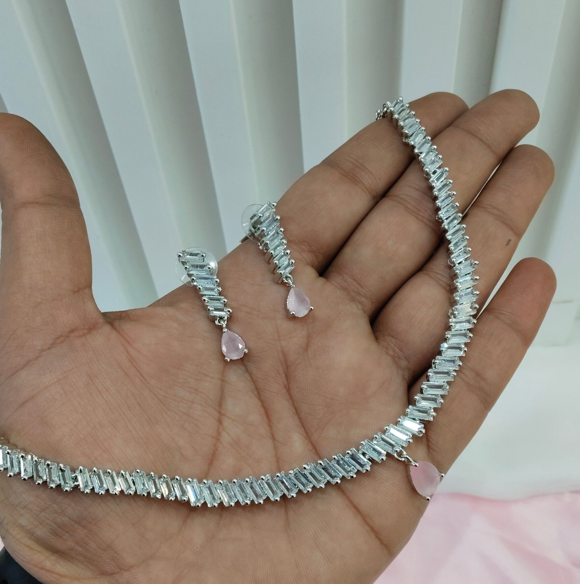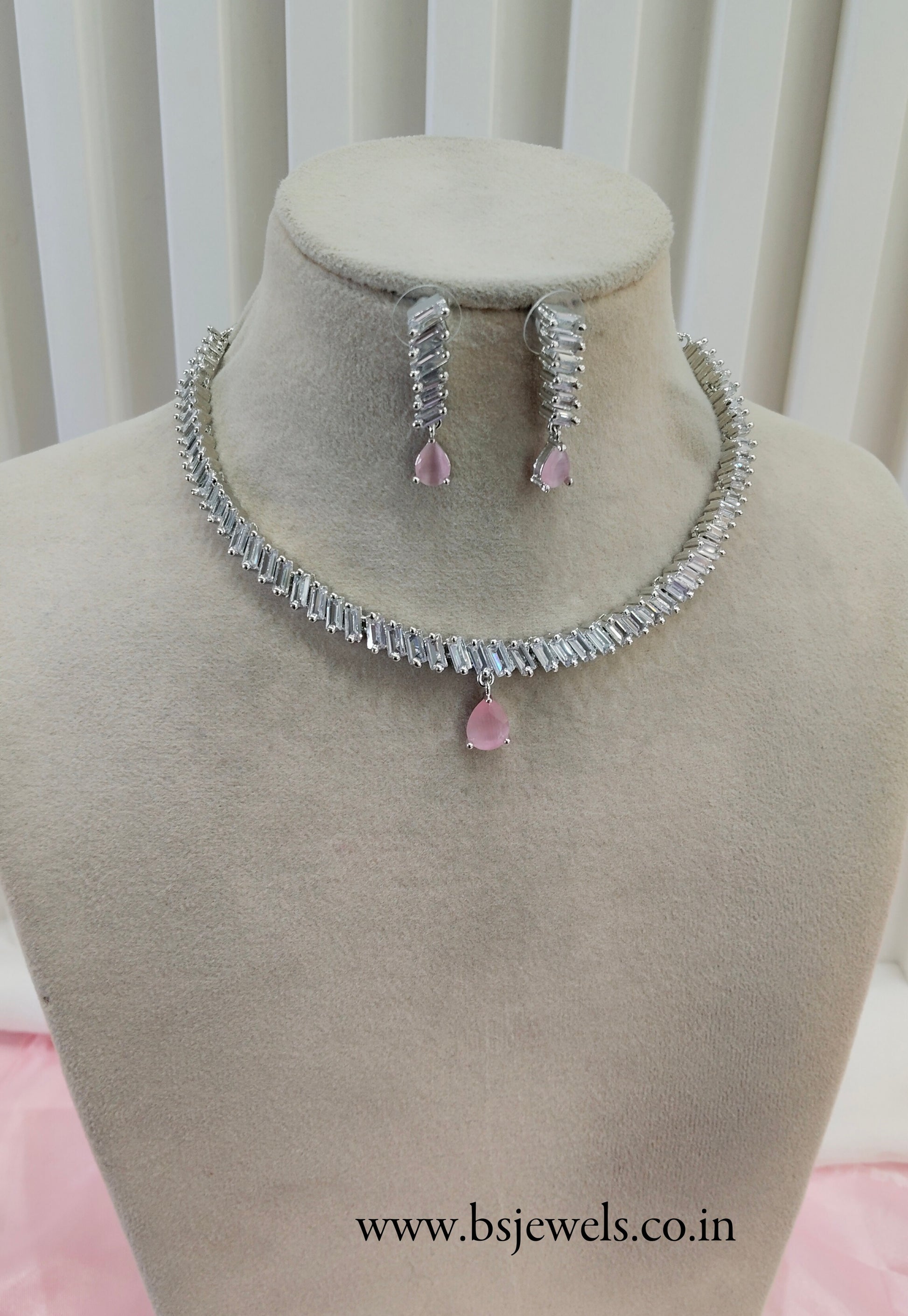 Pink Silver CZ Necklace Jewellery Ajay Set