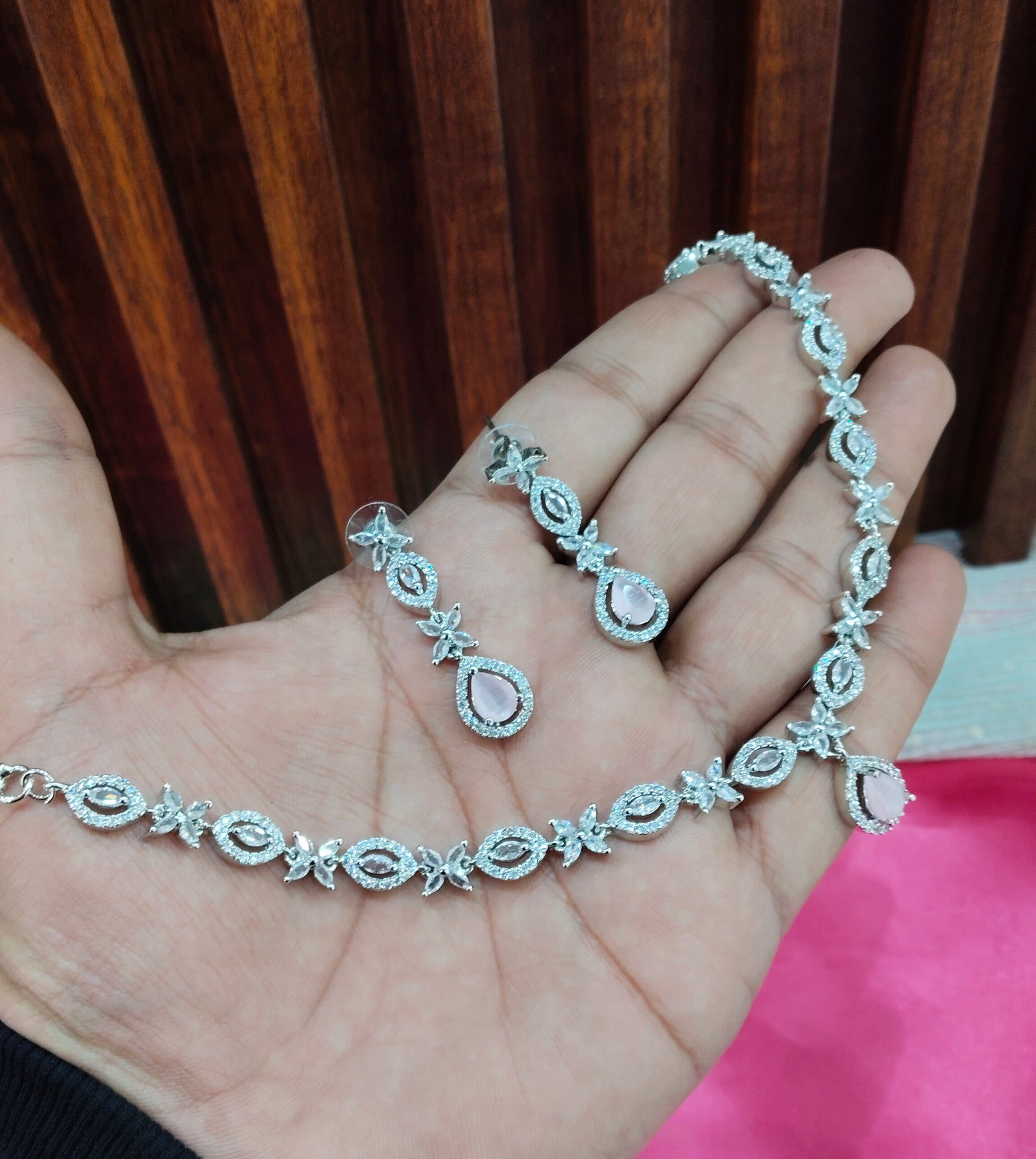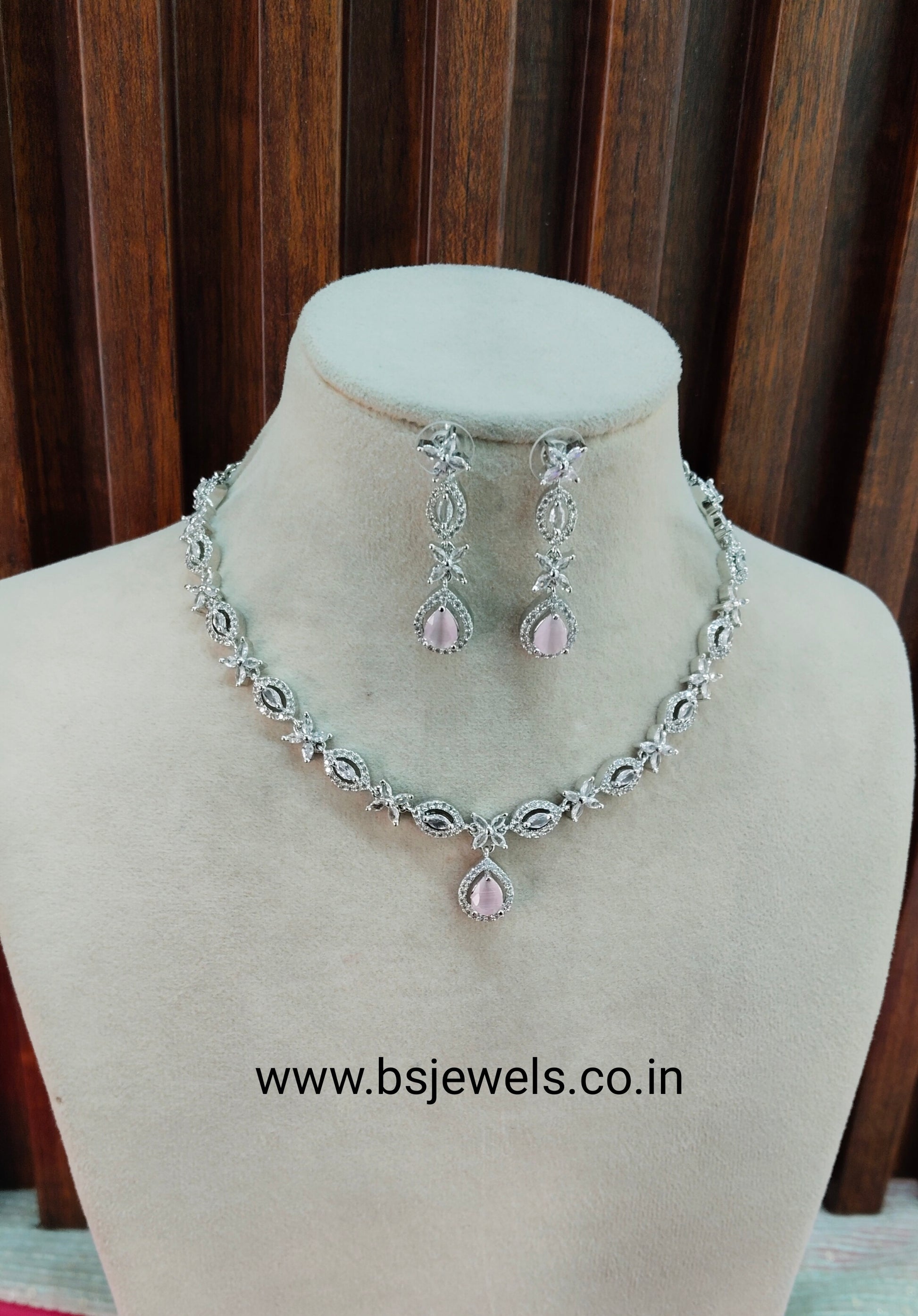 Pink Silver CZ Necklace Jewellery Berlin Set