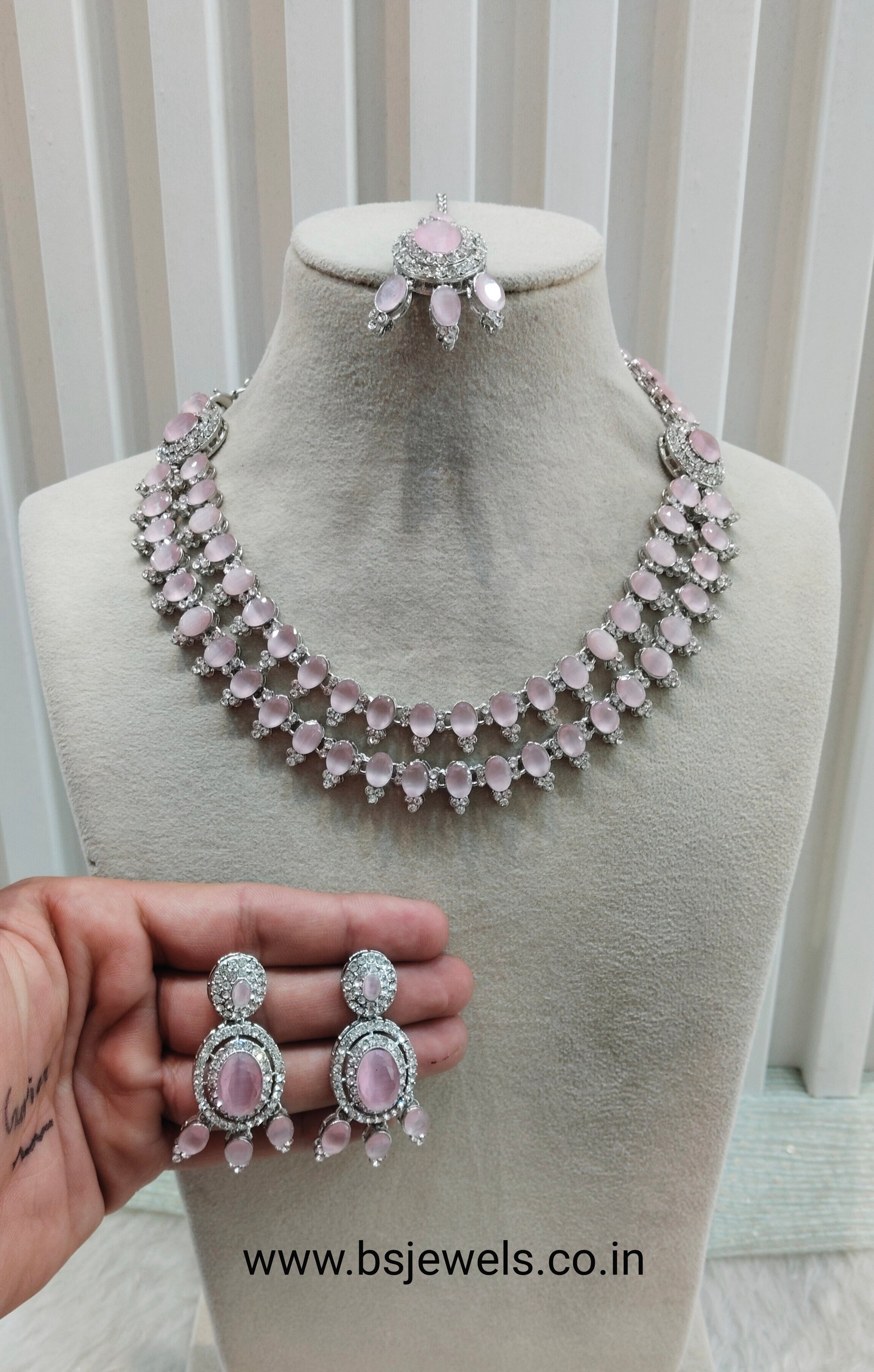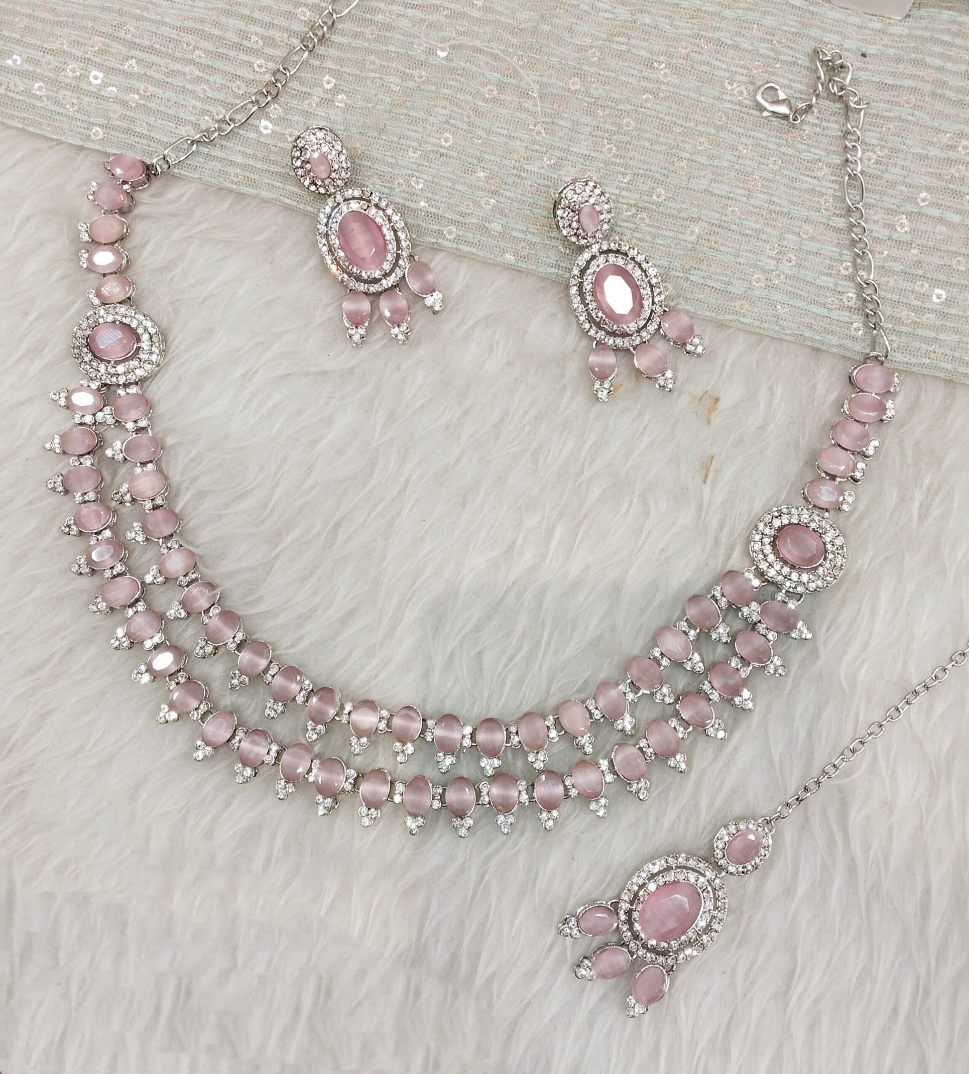Pink Silver CZ Necklace Jewellery Gajrup Set