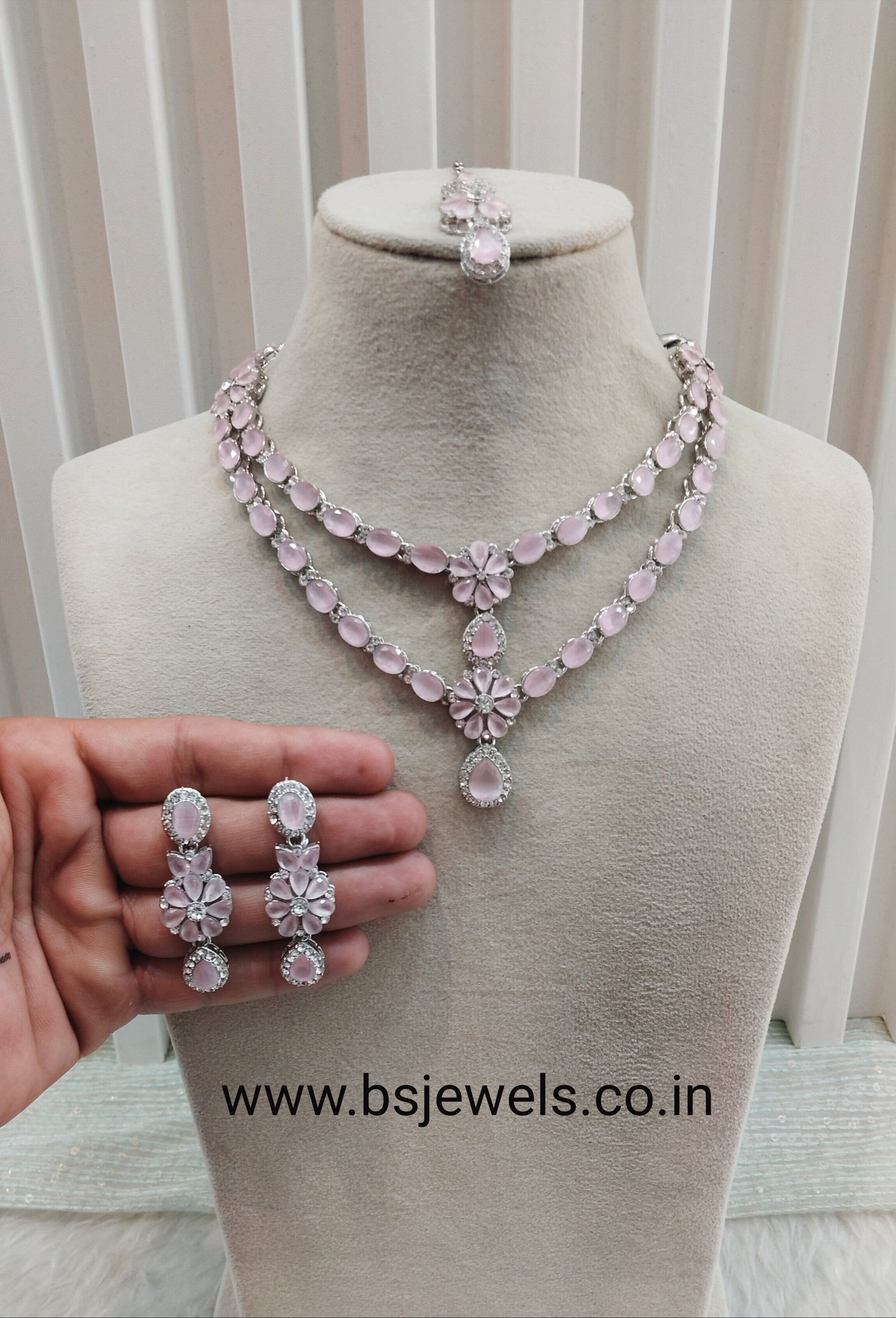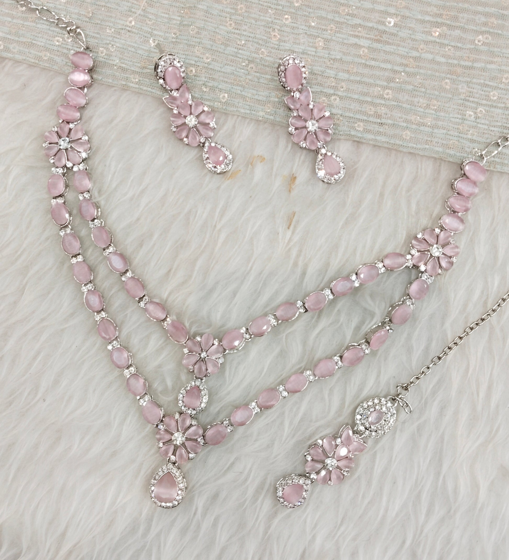 Pink Silver CZ Necklace Jewellery Harteij Set