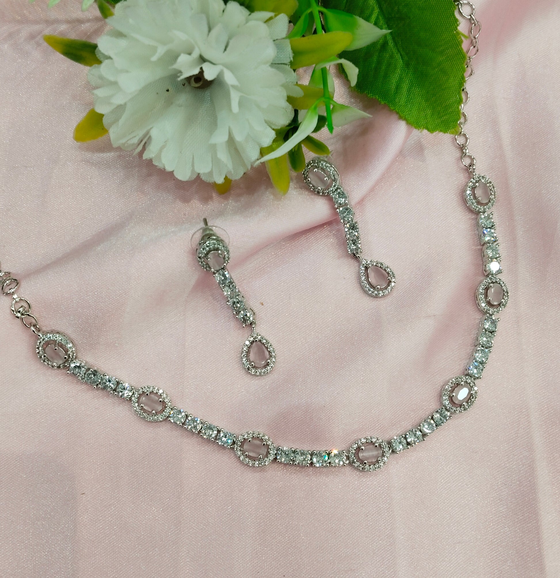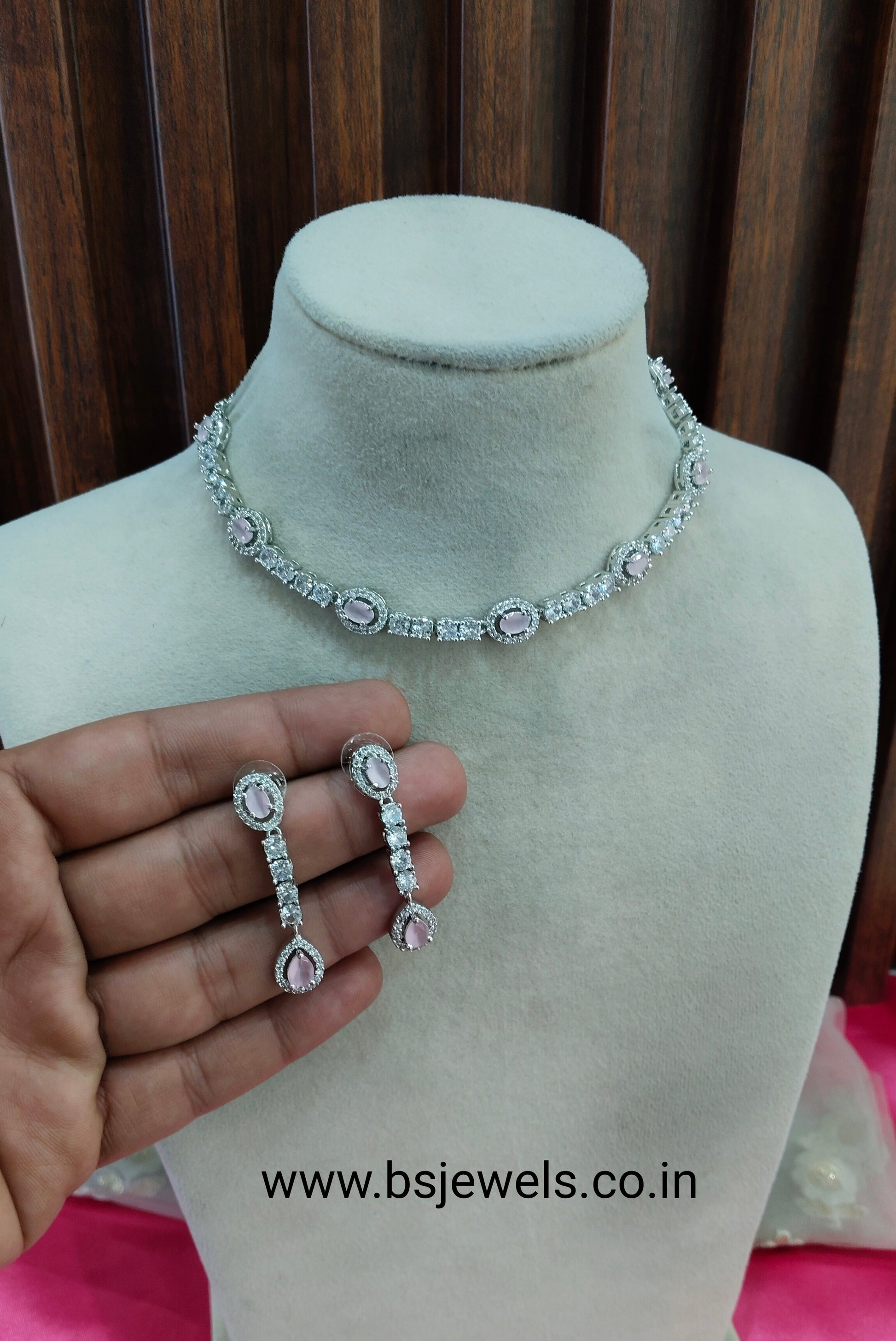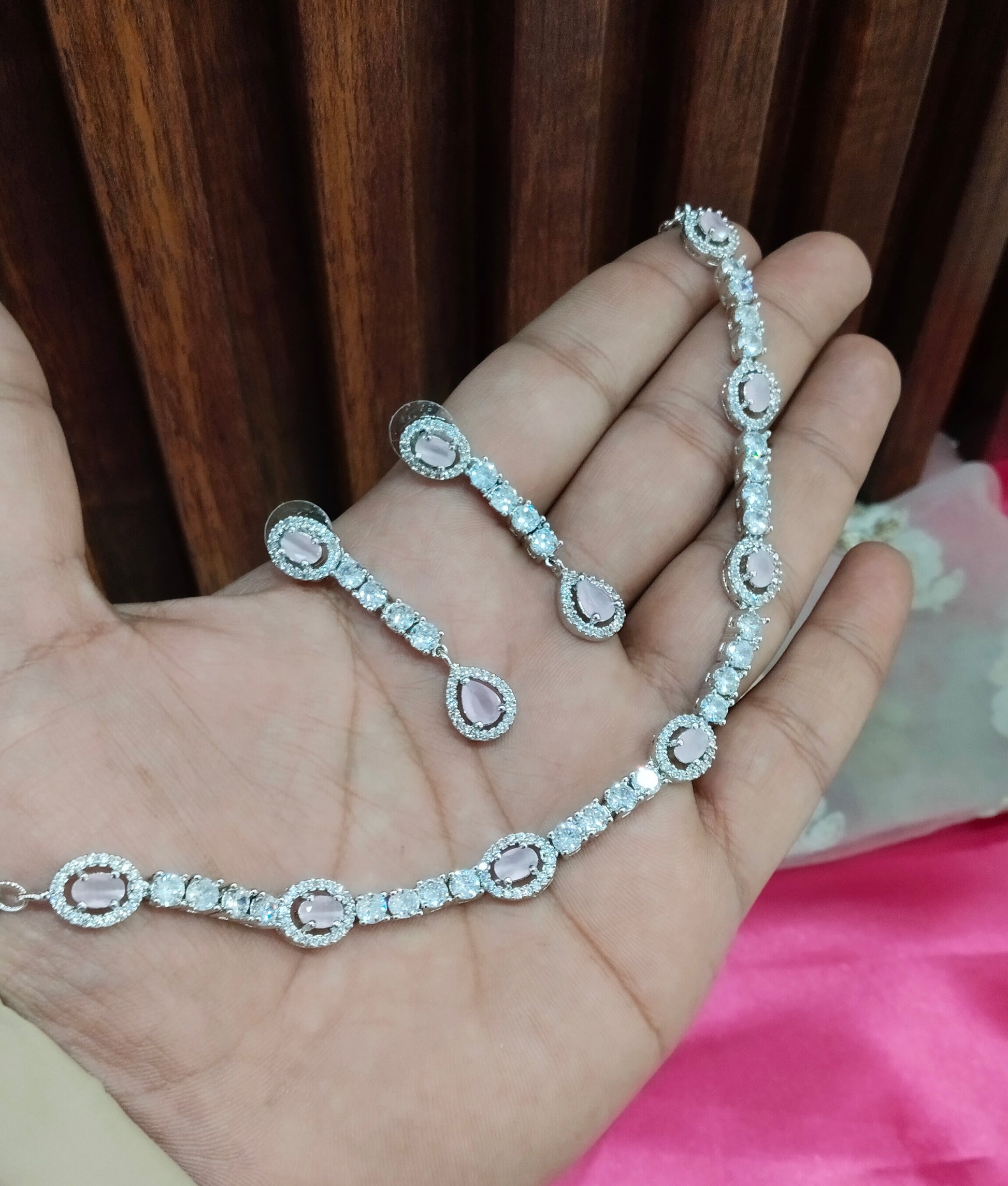 Pink Silver CZ Necklace Jewellery Holmdel Set