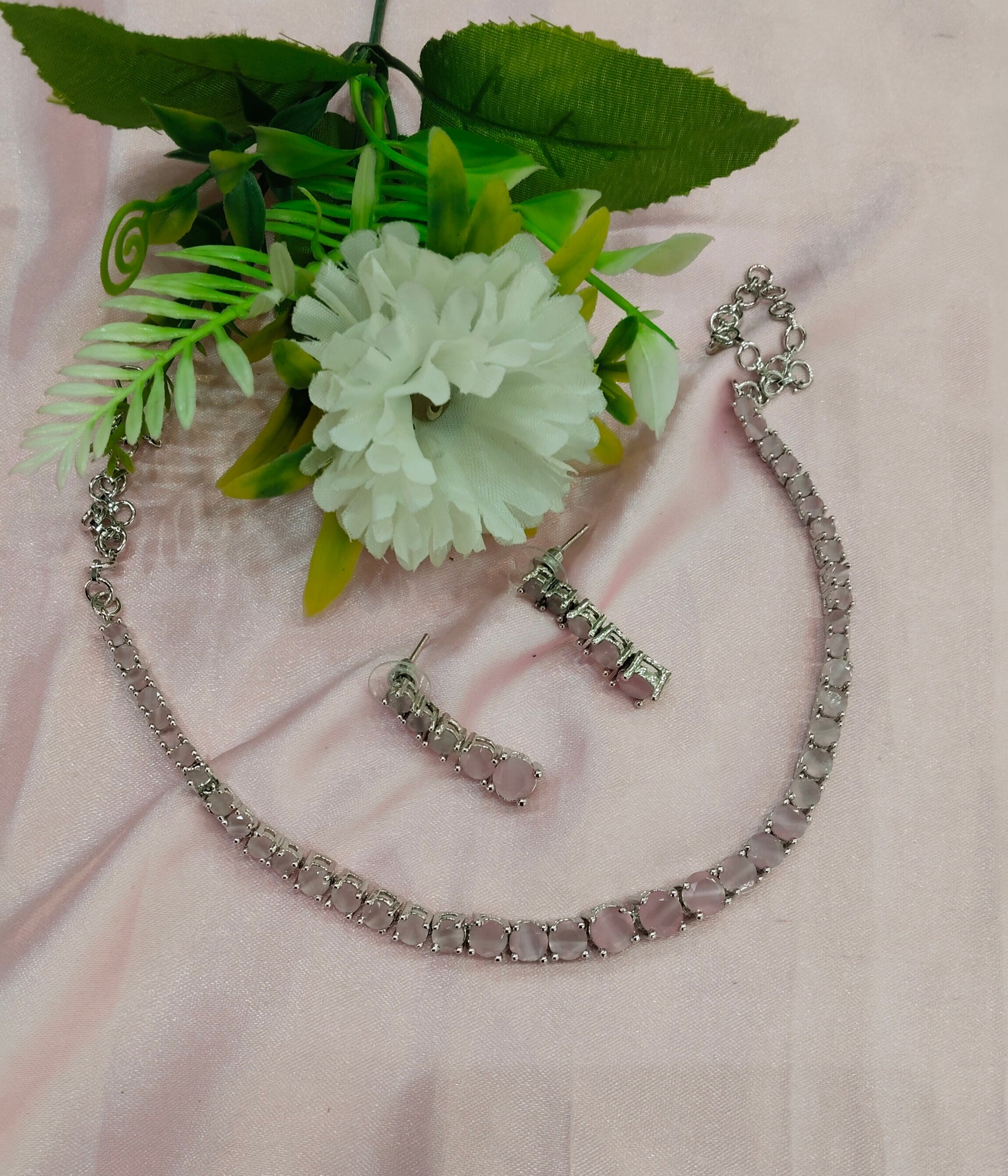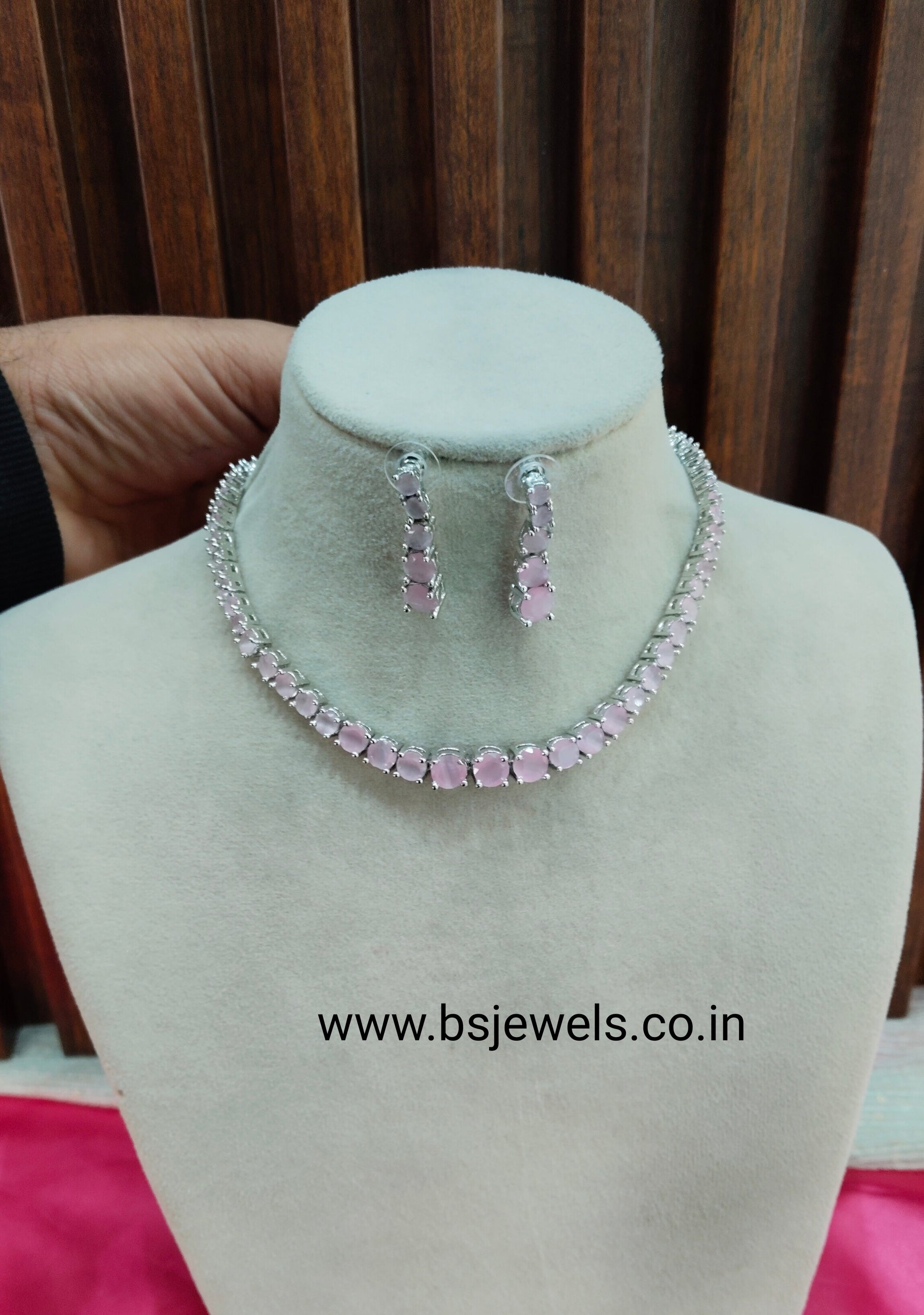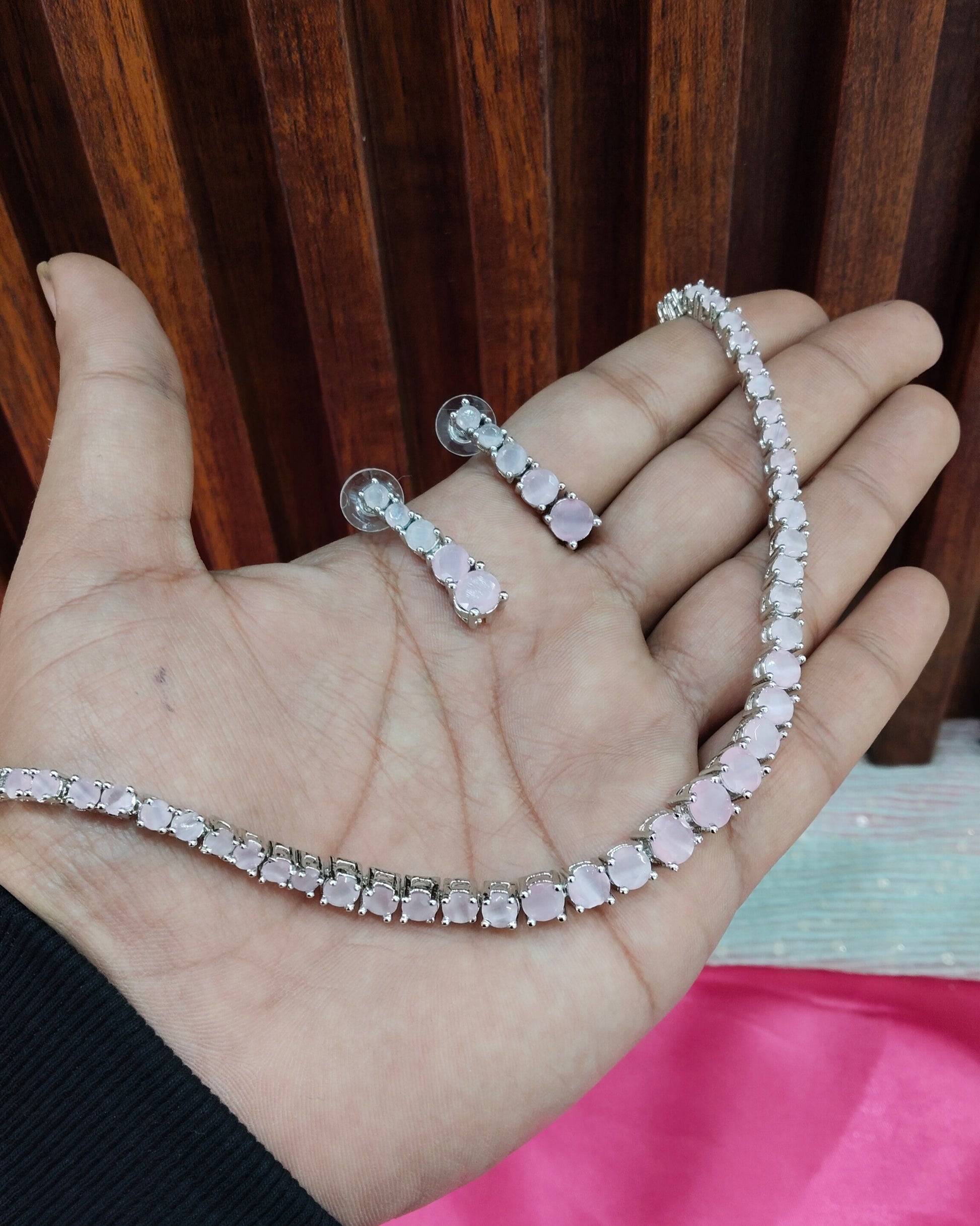 Pink Silver CZ Necklace Jewellery Lisbon Set