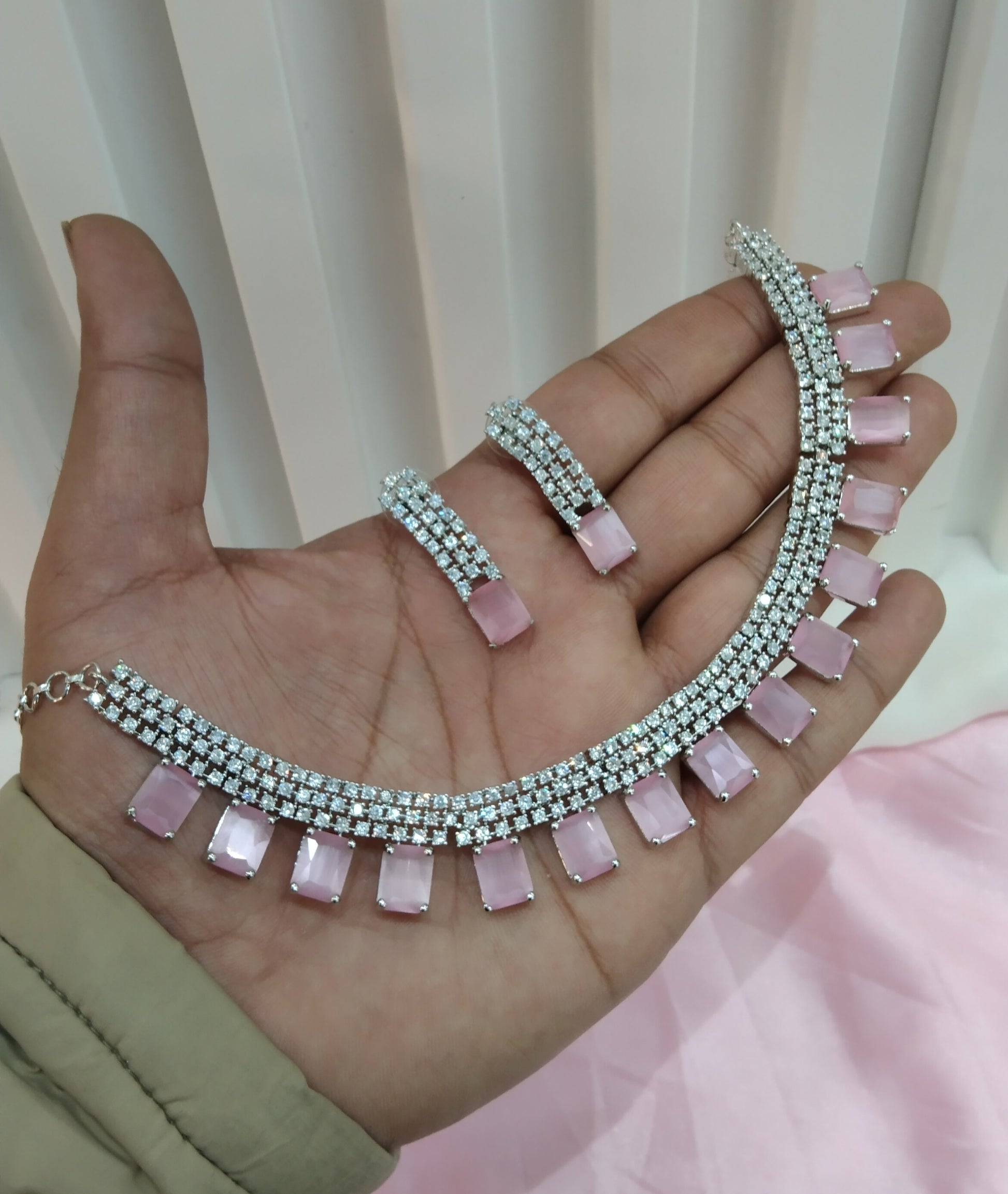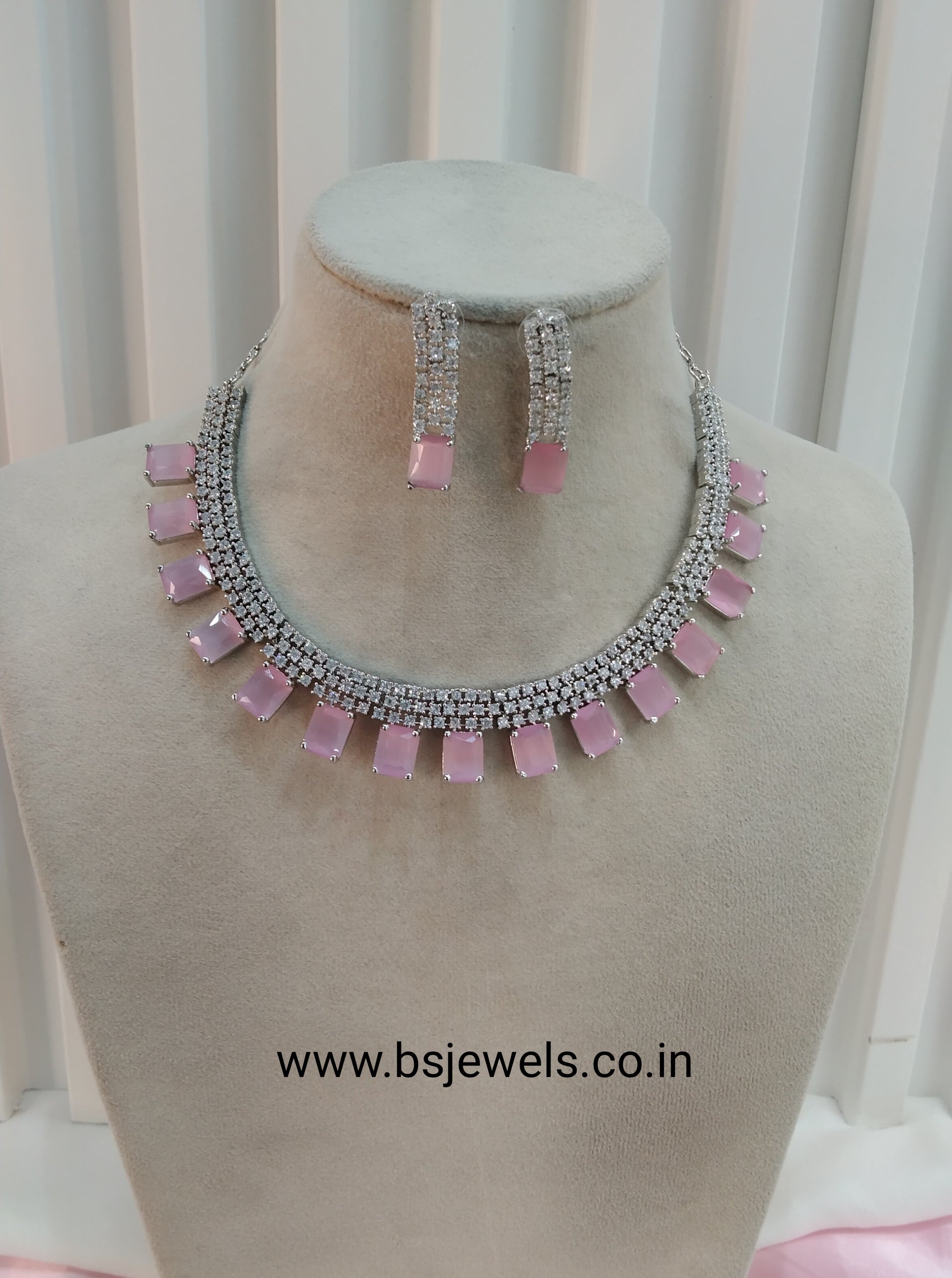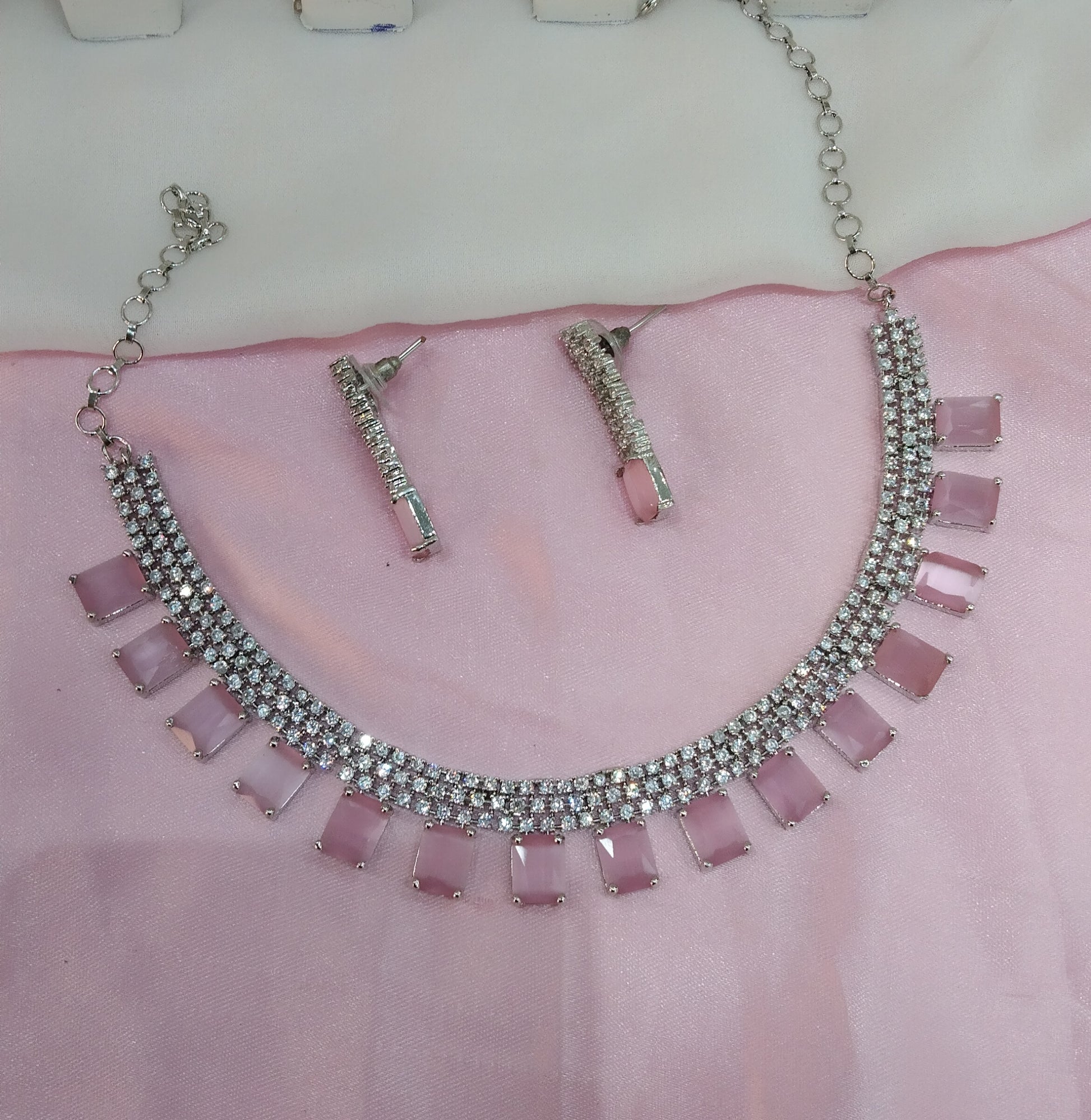 Pink Silver CZ Necklace Jewellery Scarsdale Set