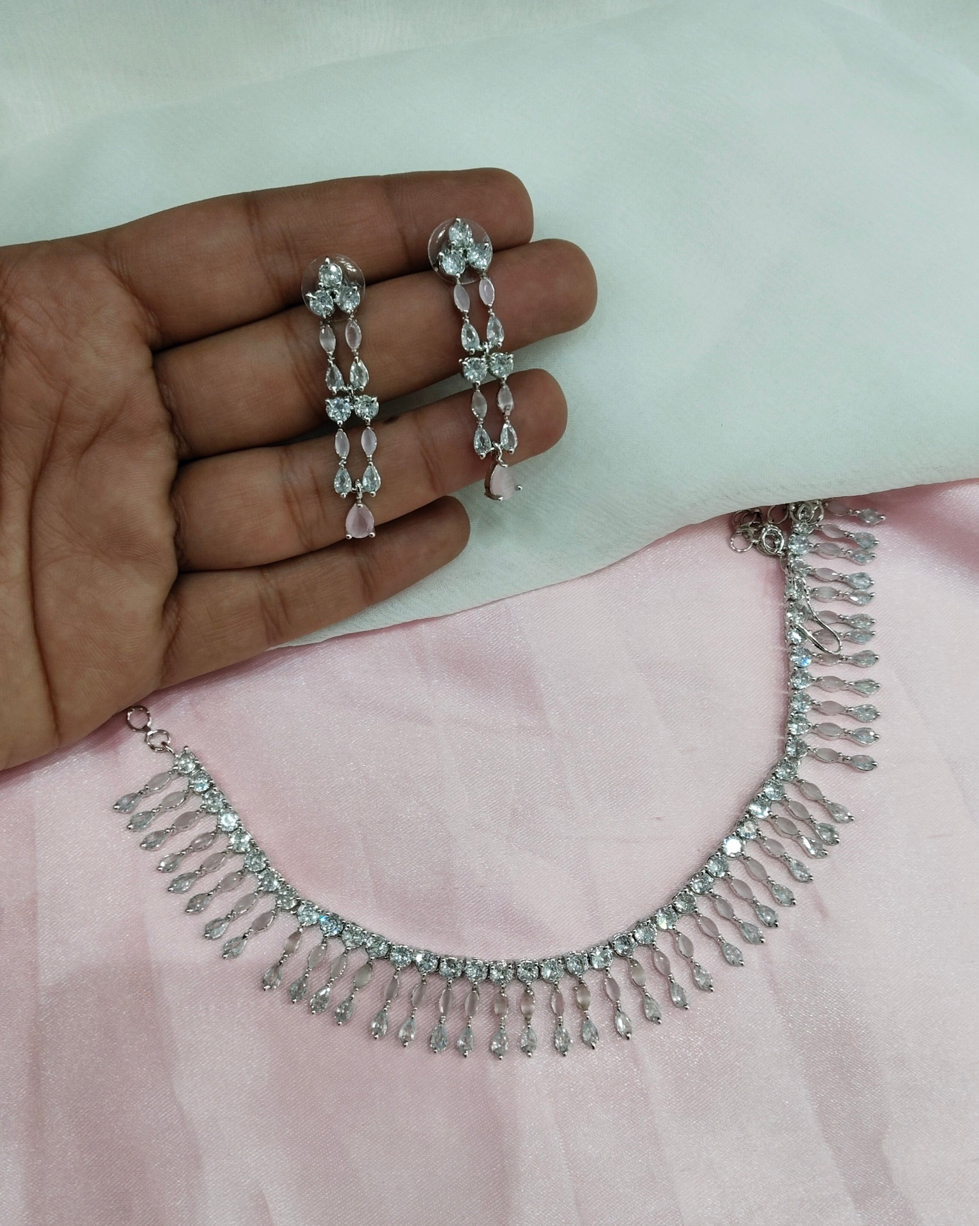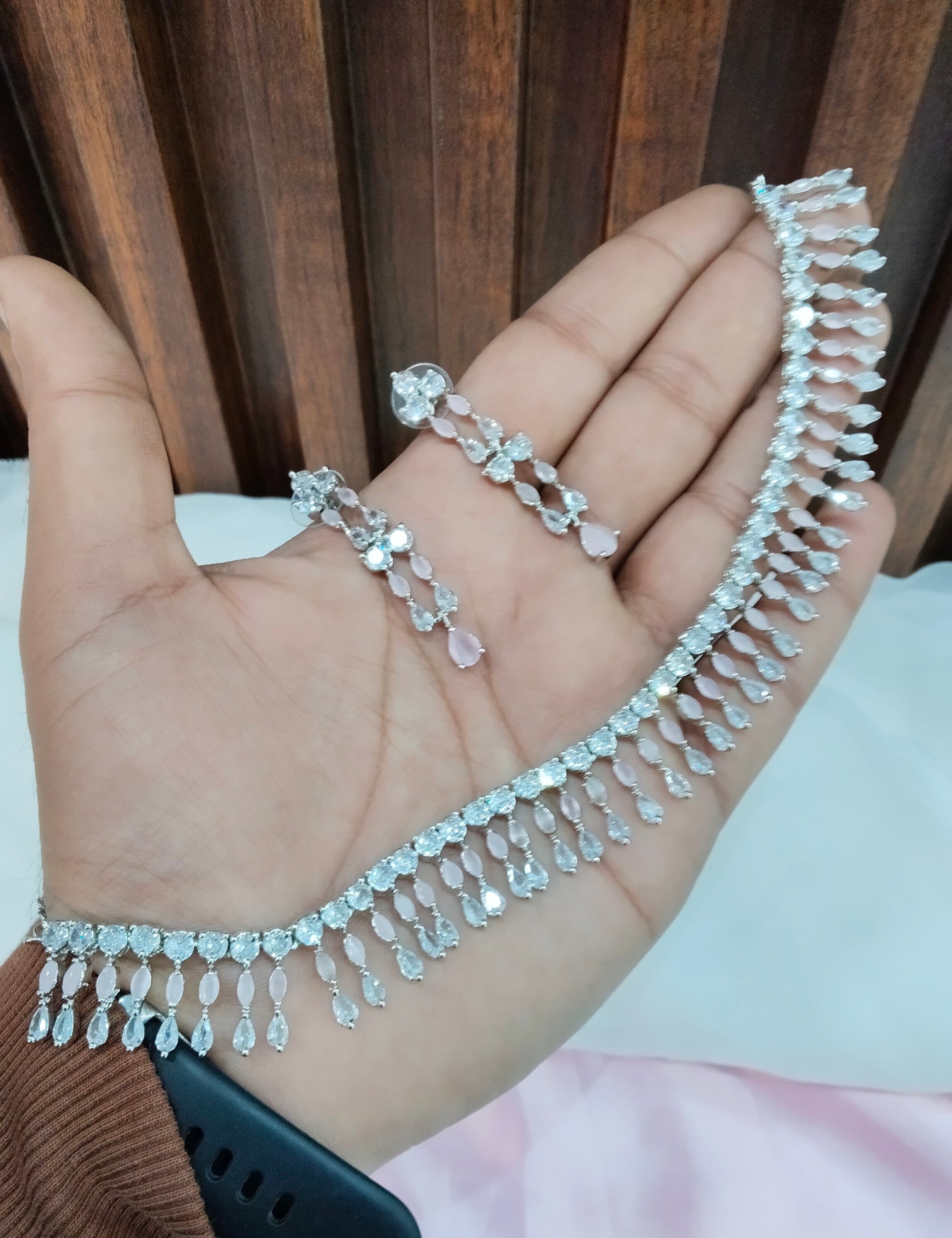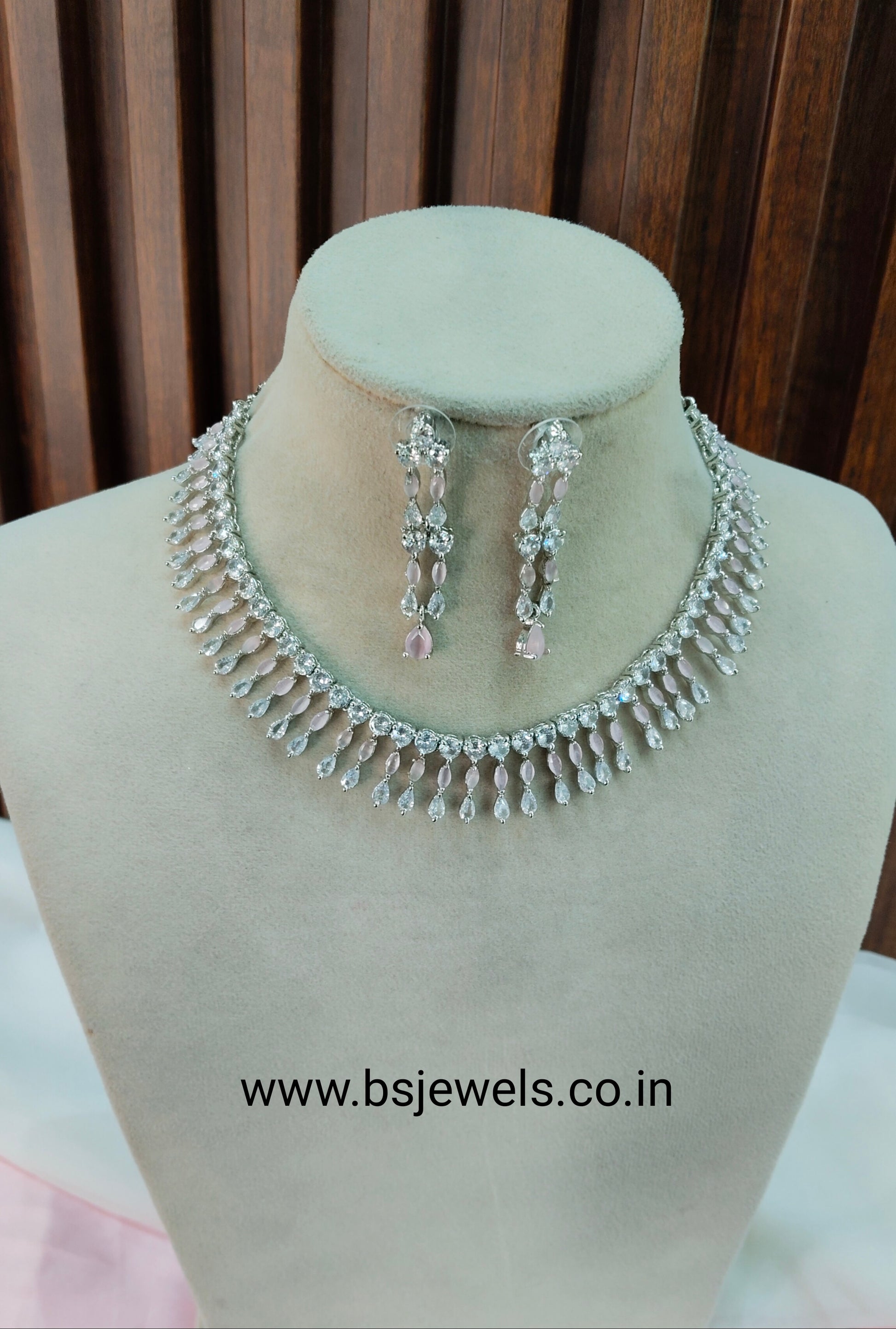 Pink Silver CZ Necklace Jewellery Seattle Set