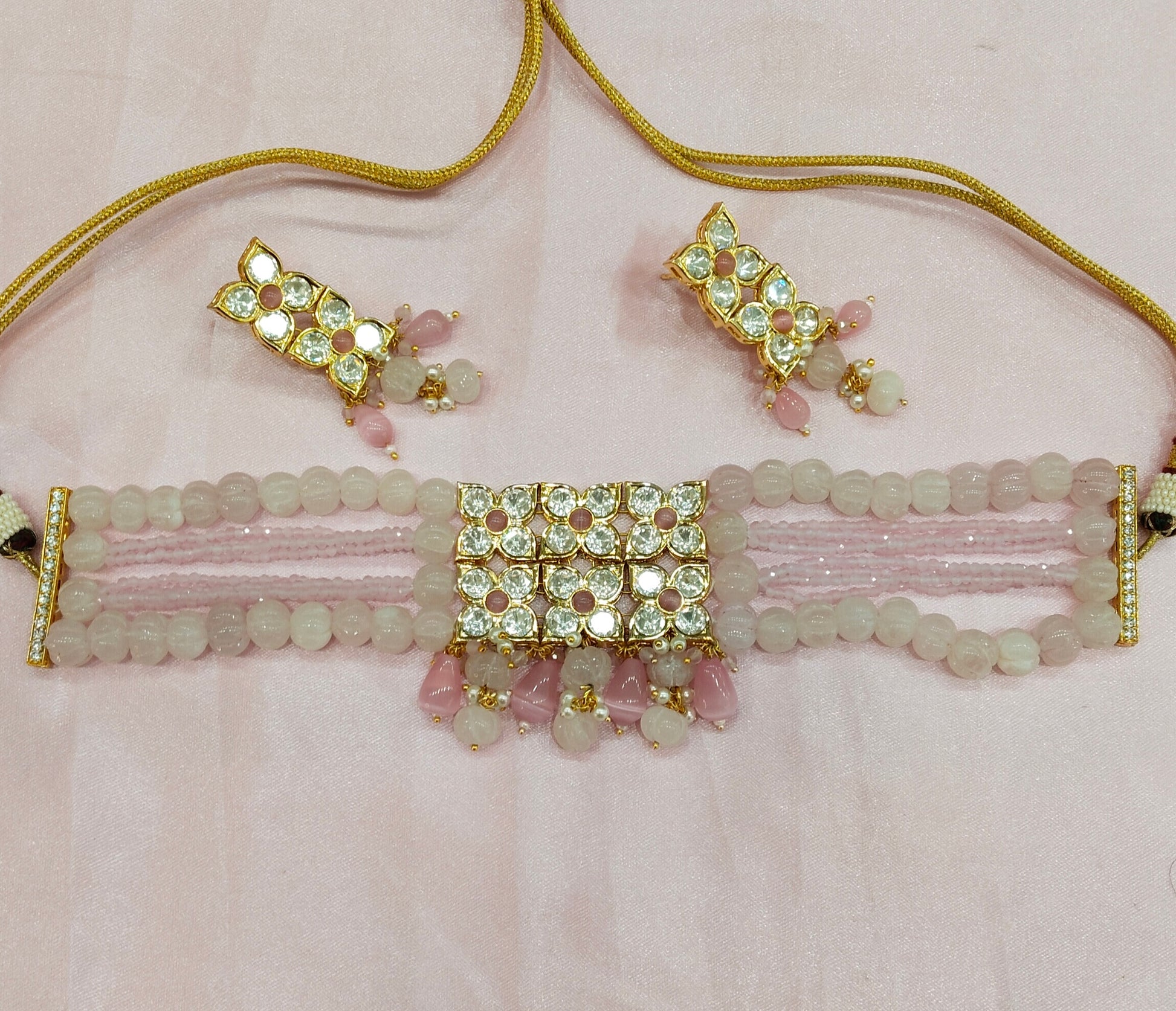 Pink Uncut Kundan Choker Jewellery Poonam Set