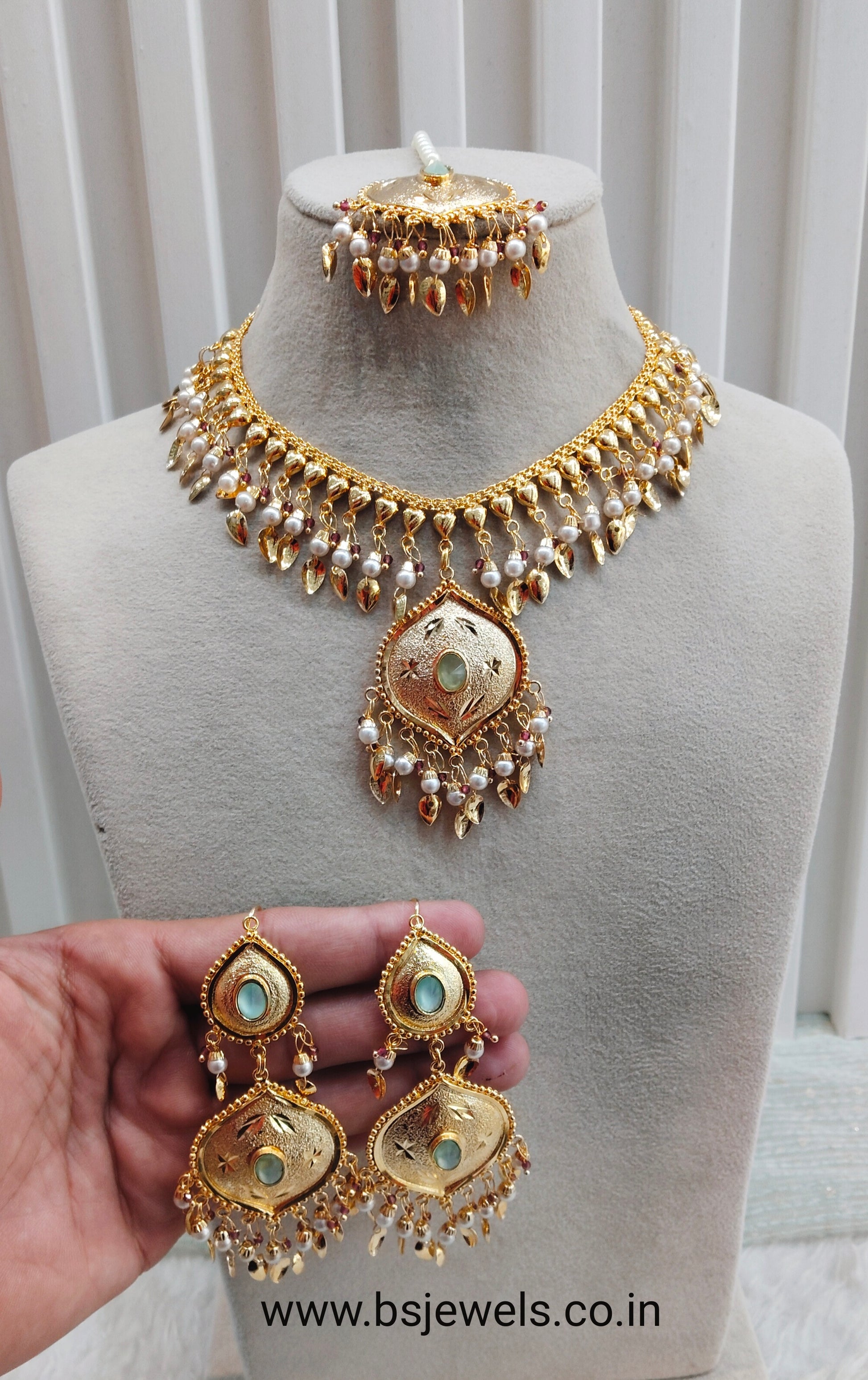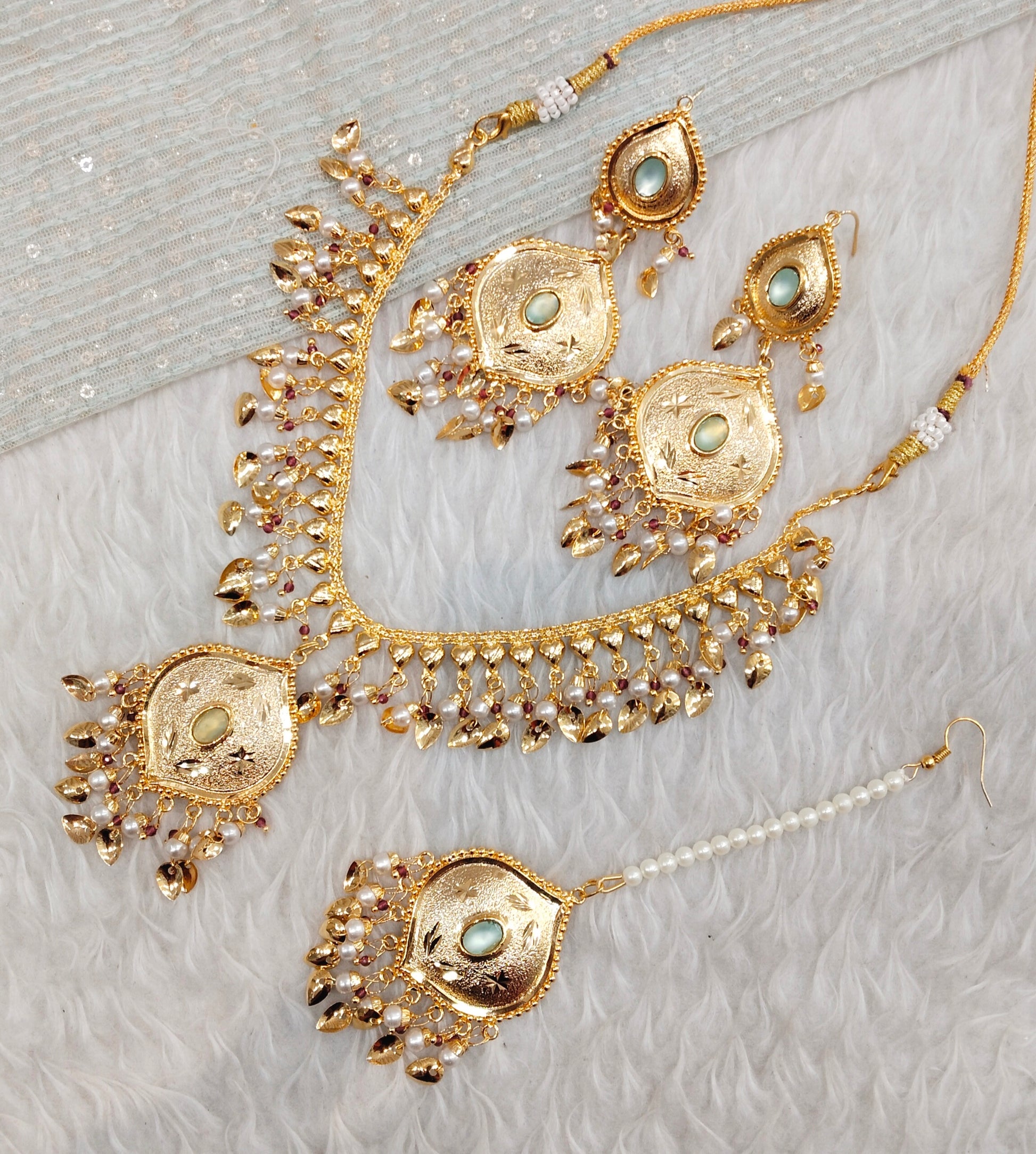 Pista Gold Jadau Punjabi Style Necklace Jewellery Smith Set