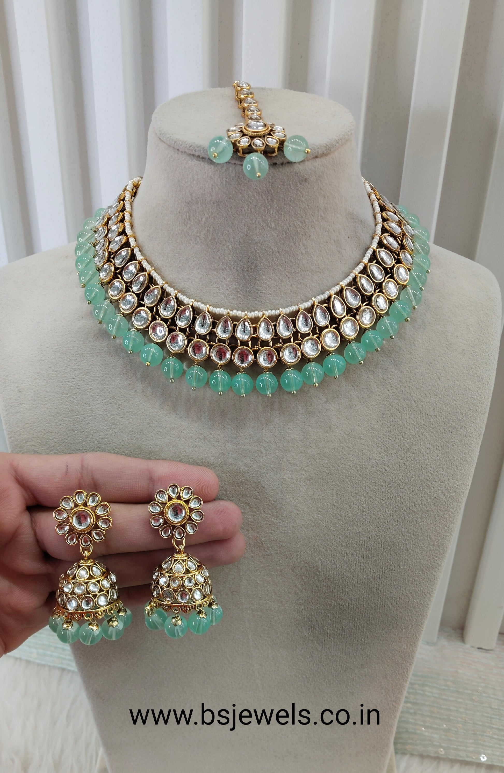 *Kundan necklace set with earrings and tikka.