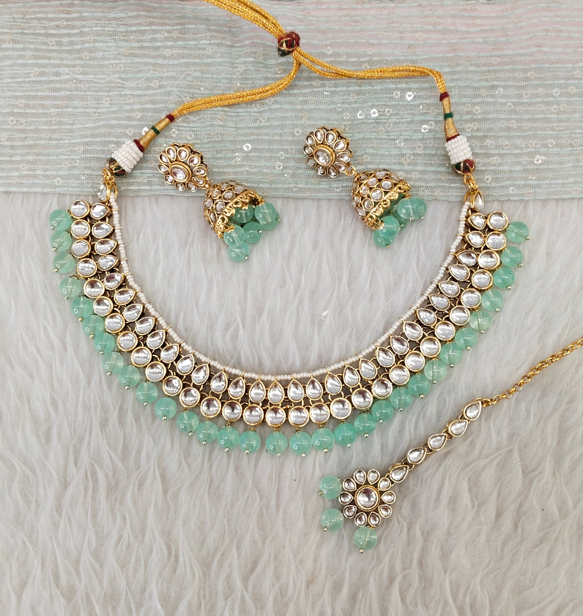 Pista Gold Kundan Necklace Jewellery Roshan Set