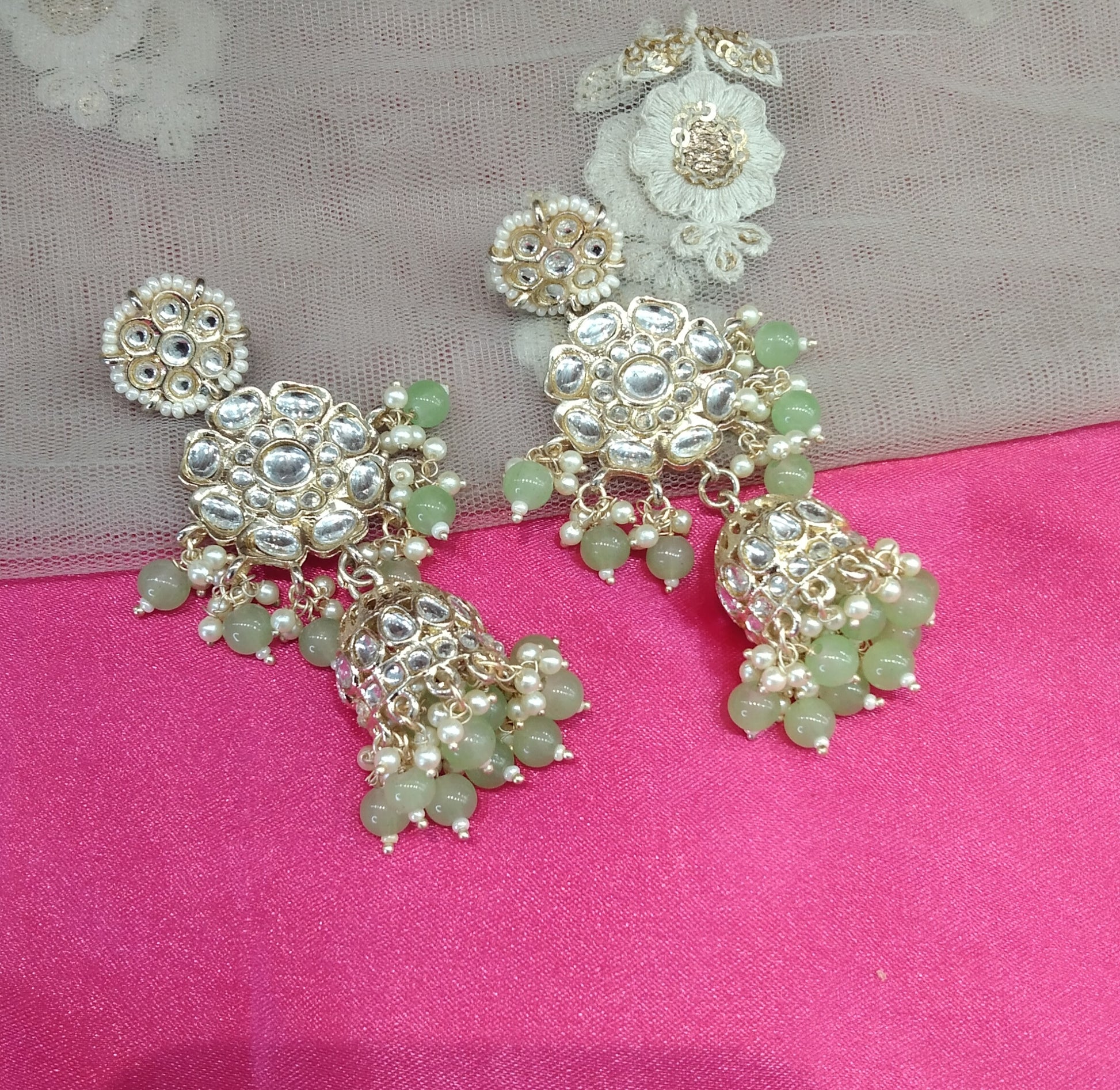 Pista Kundan Jhumka About Bollywood Earrings