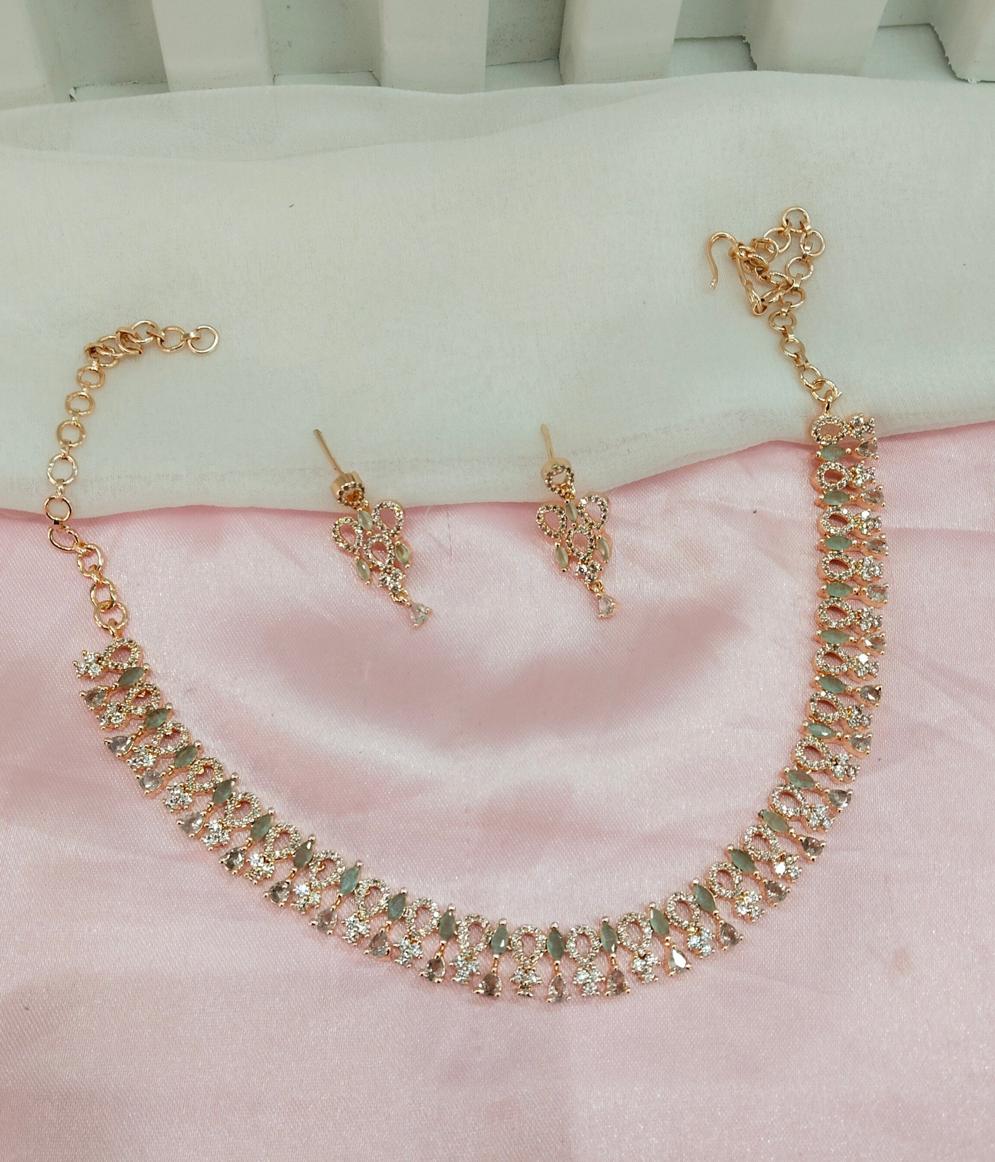 Pista Rose CZ Necklace Jewellery Laredo Set