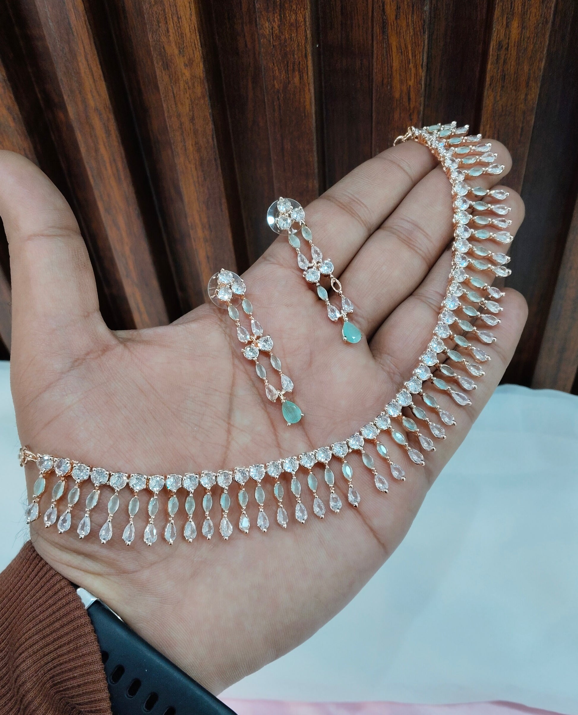 Pista Rose CZ Necklace Jewellery Seattle Set