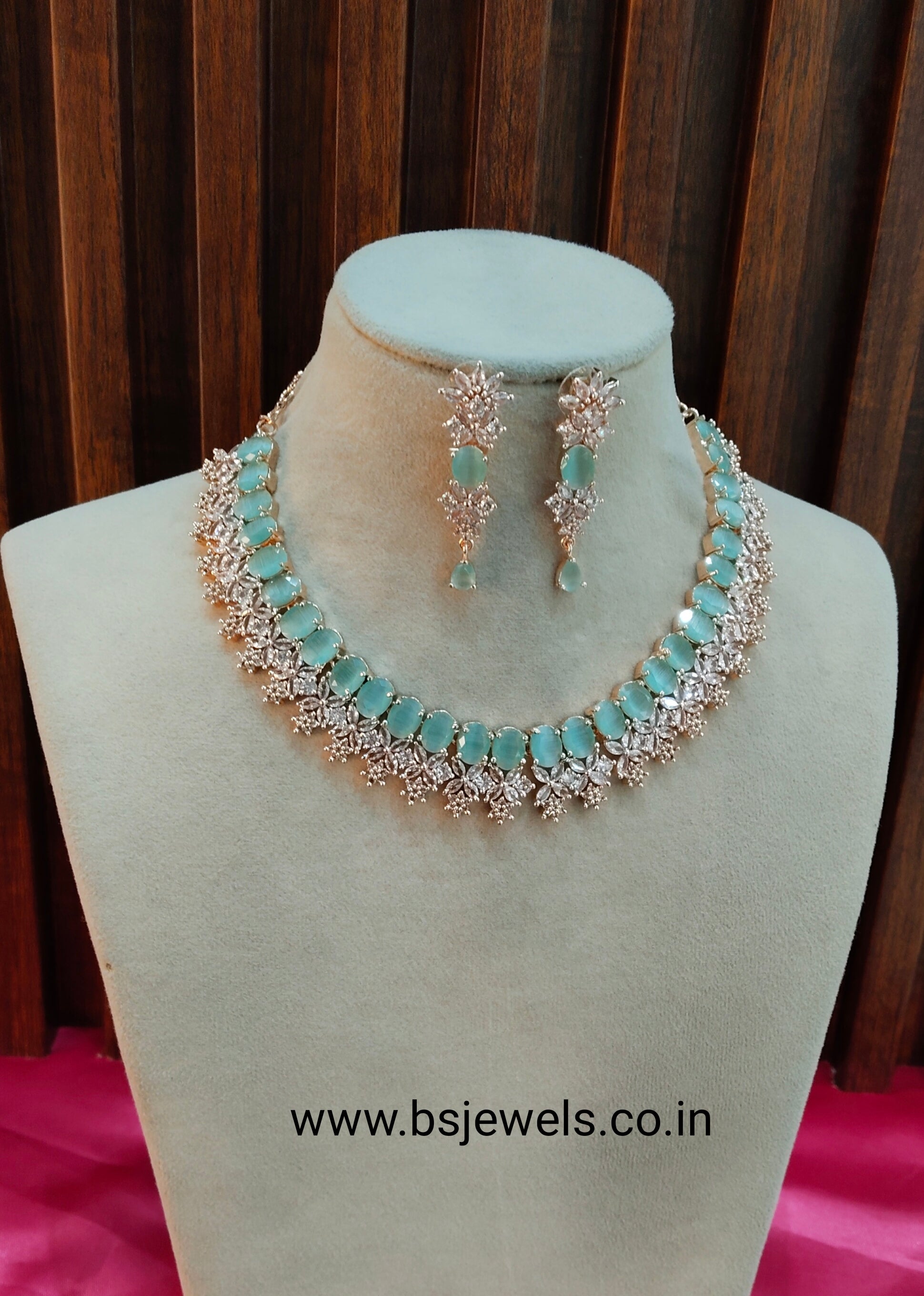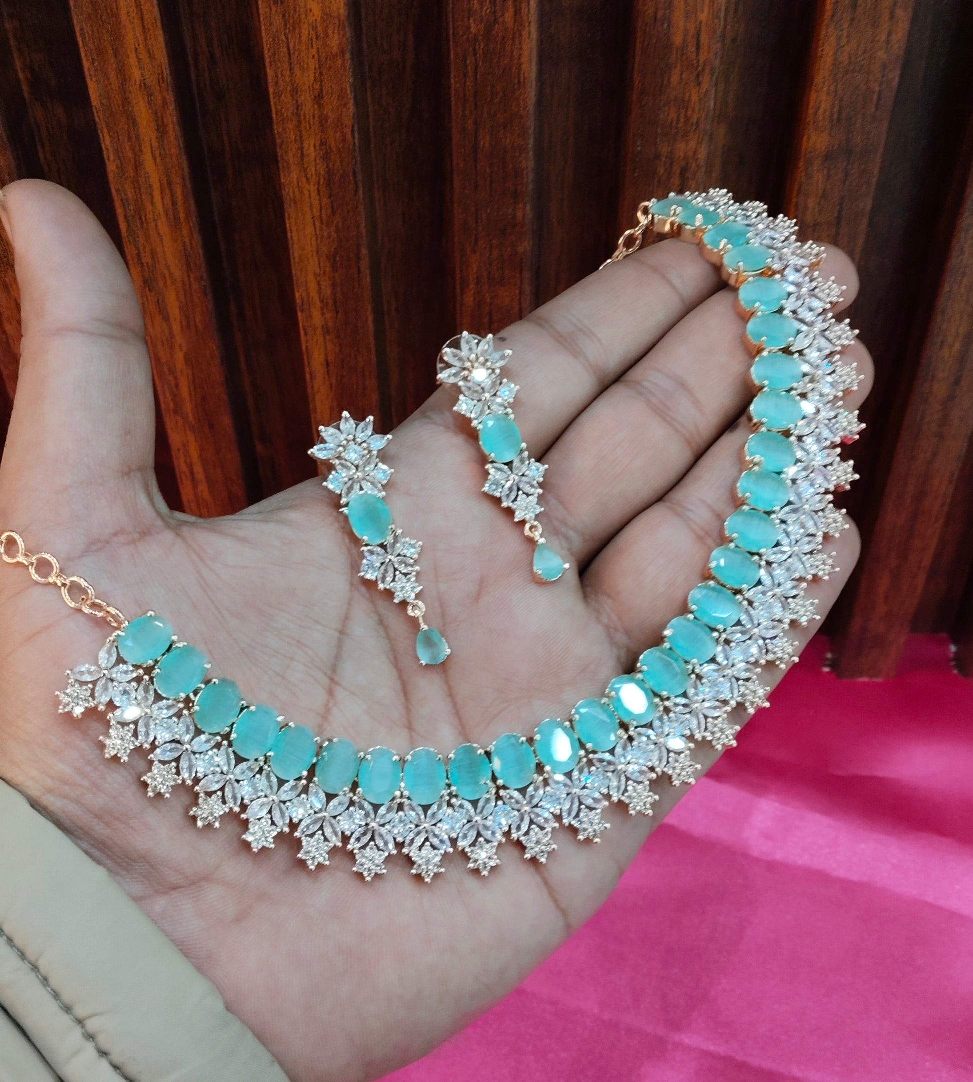 Pista Rose CZ Necklace Jewellery Vallejo Set