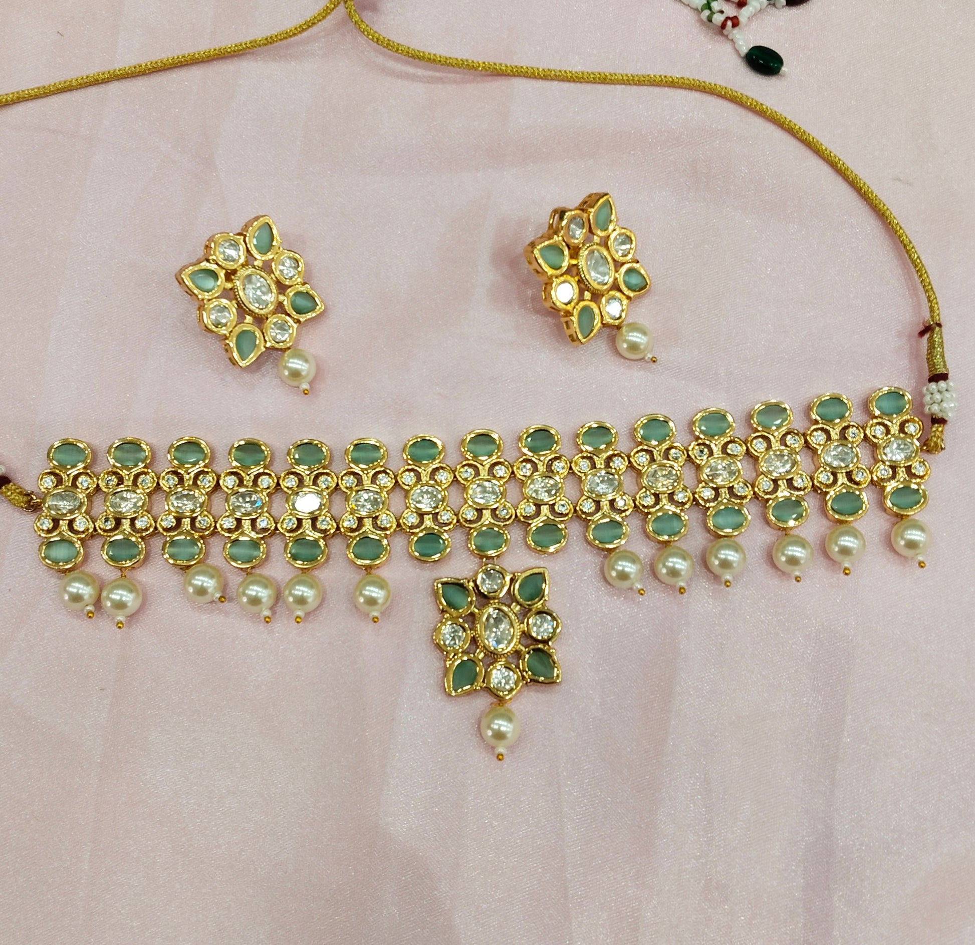 Pista Uncut Kundan Choker Jewellery Poonam Set