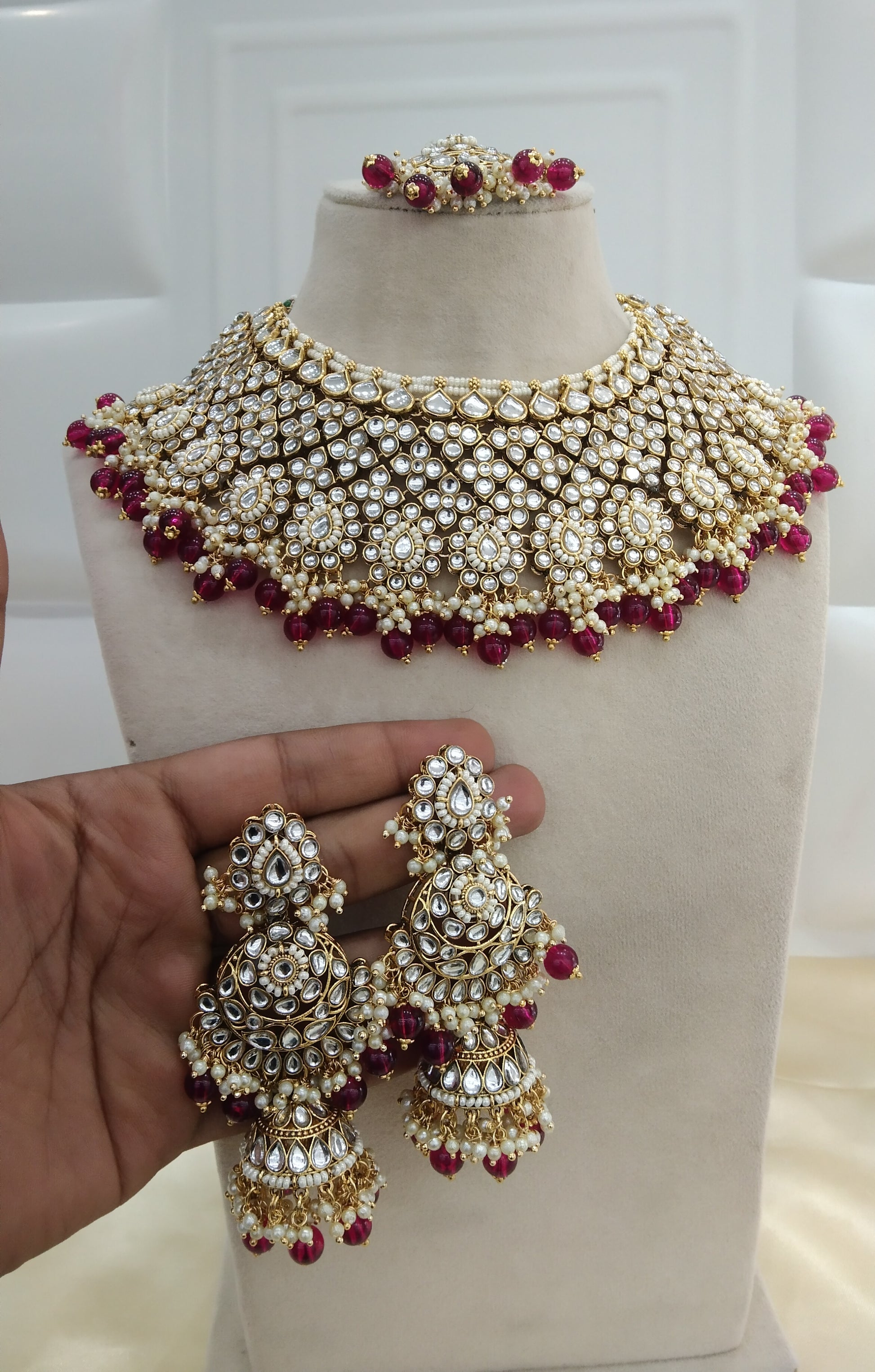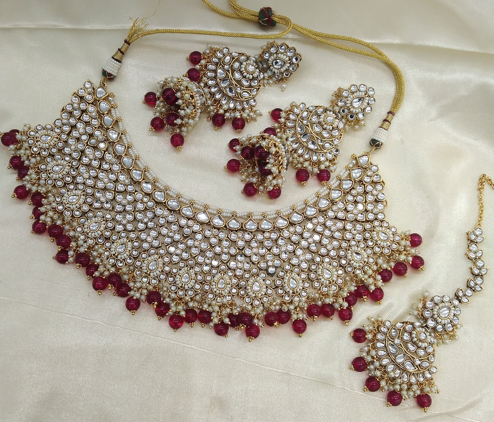 Priya Maroon kundan Indian Necklace Jewellery Set