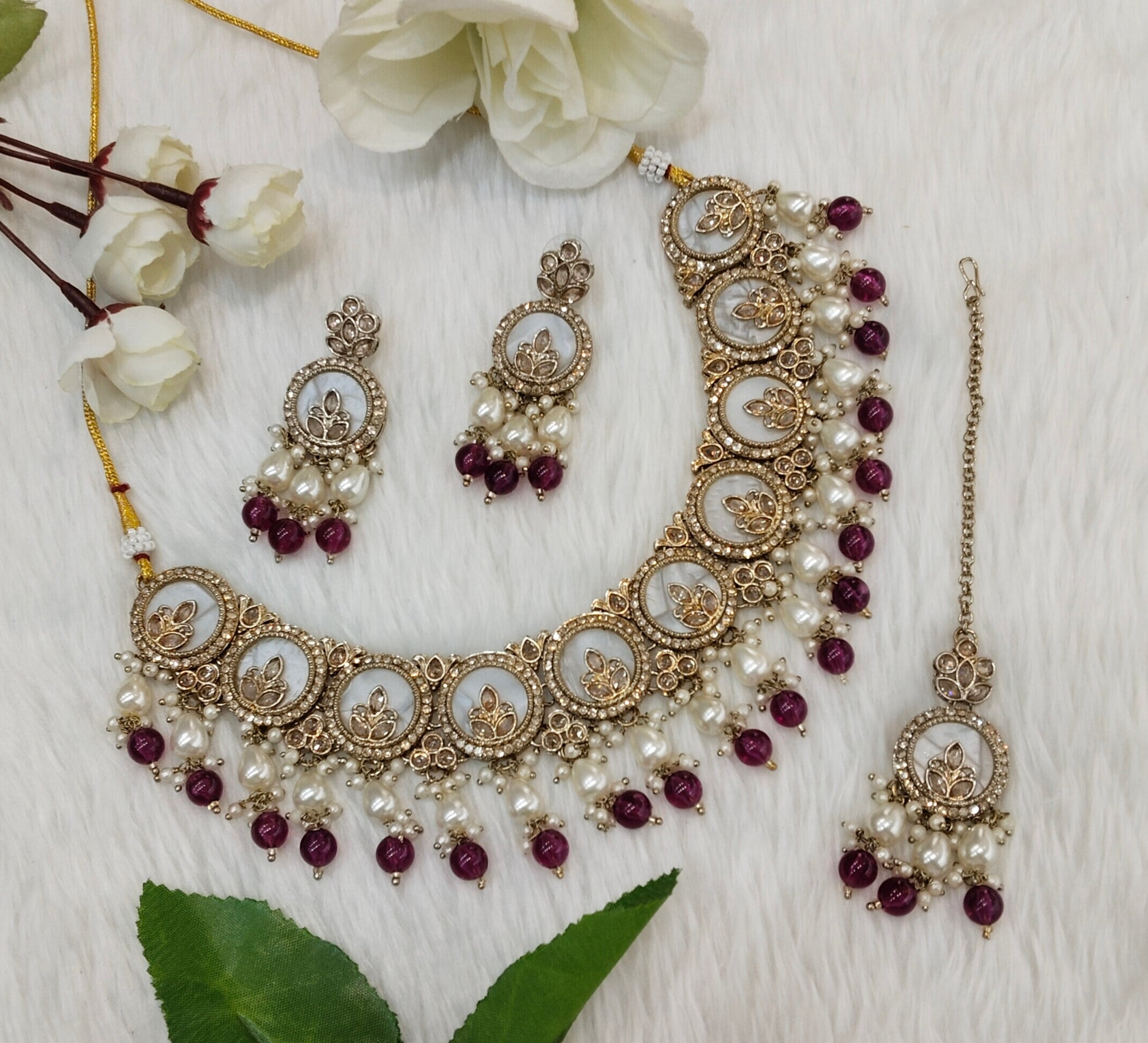 Purple Antique Gold Necklace Jewellery Daisy Set