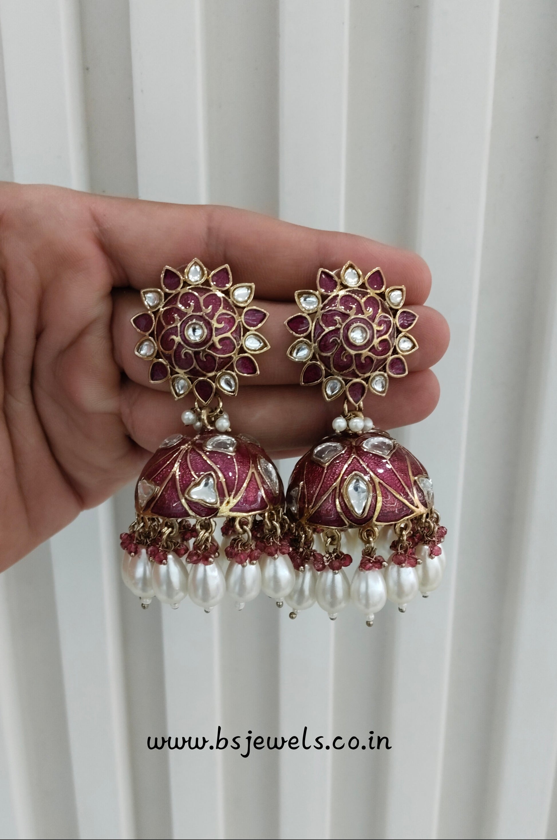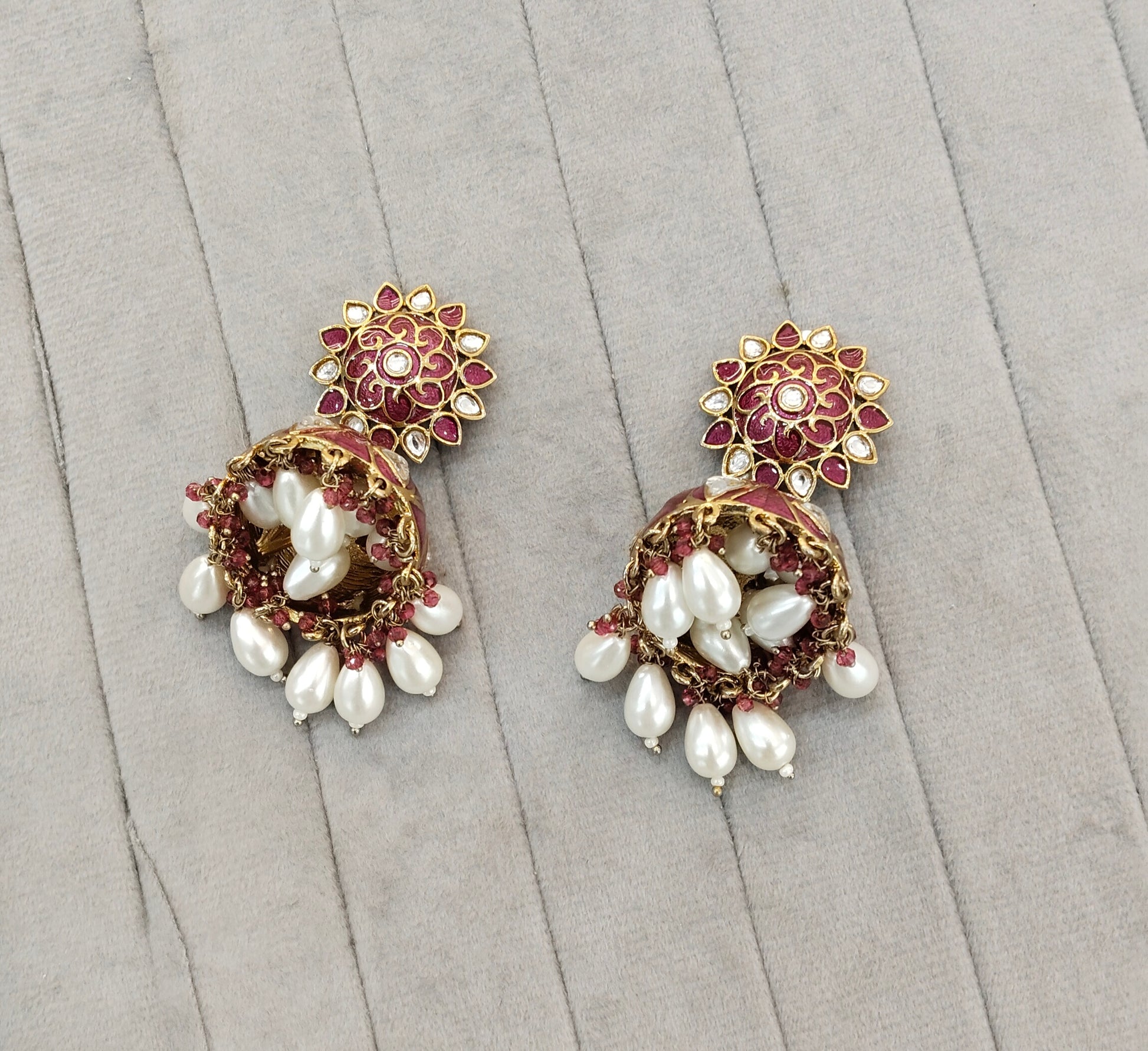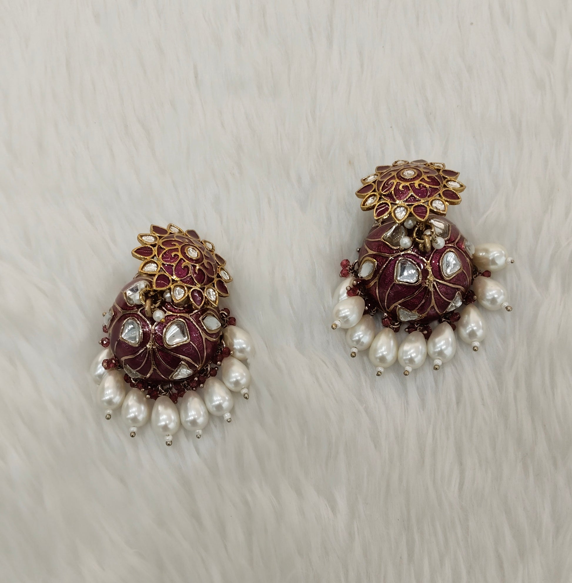 Purple Antique Gold Stud Bollywood Shota Earrings
