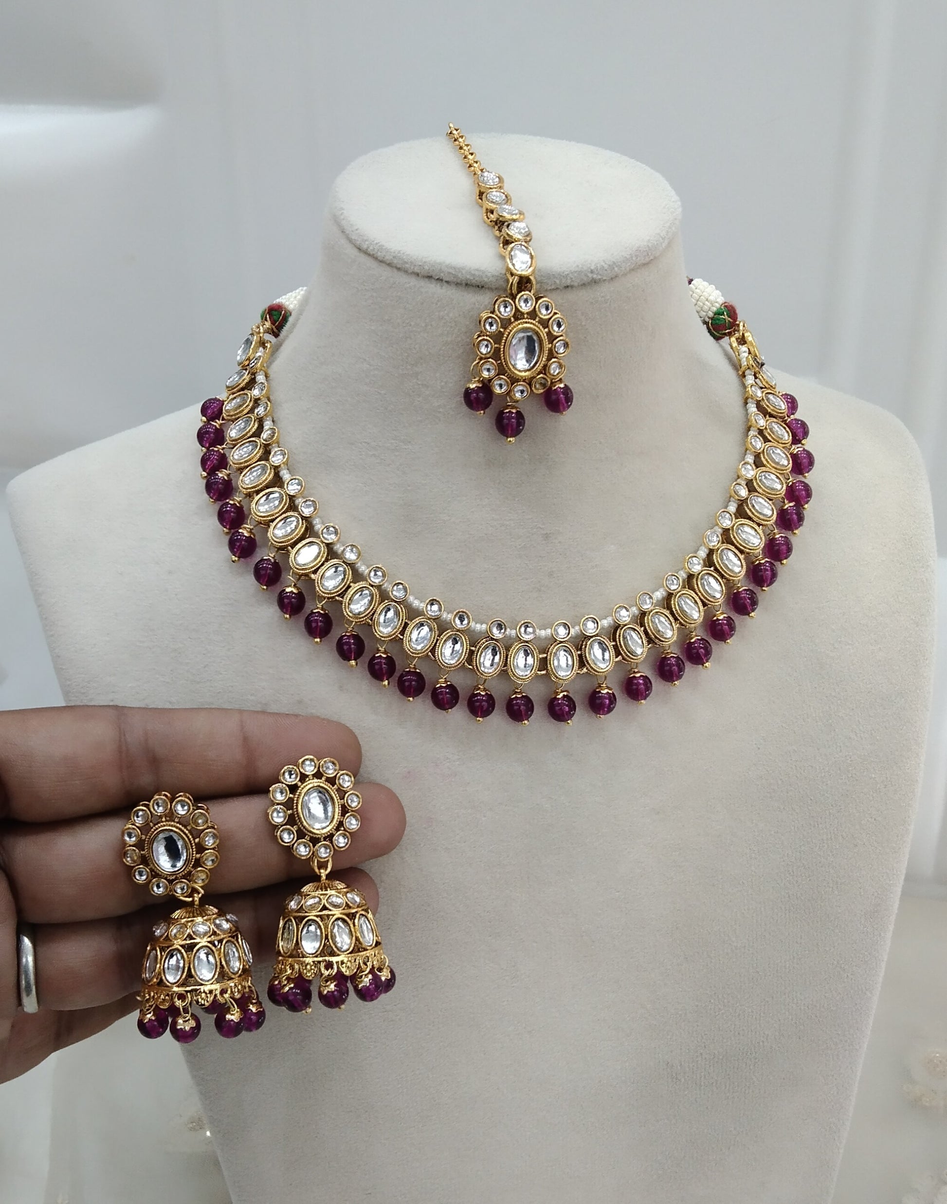 Purple Kundan Jewelry Necklace Laksha Set