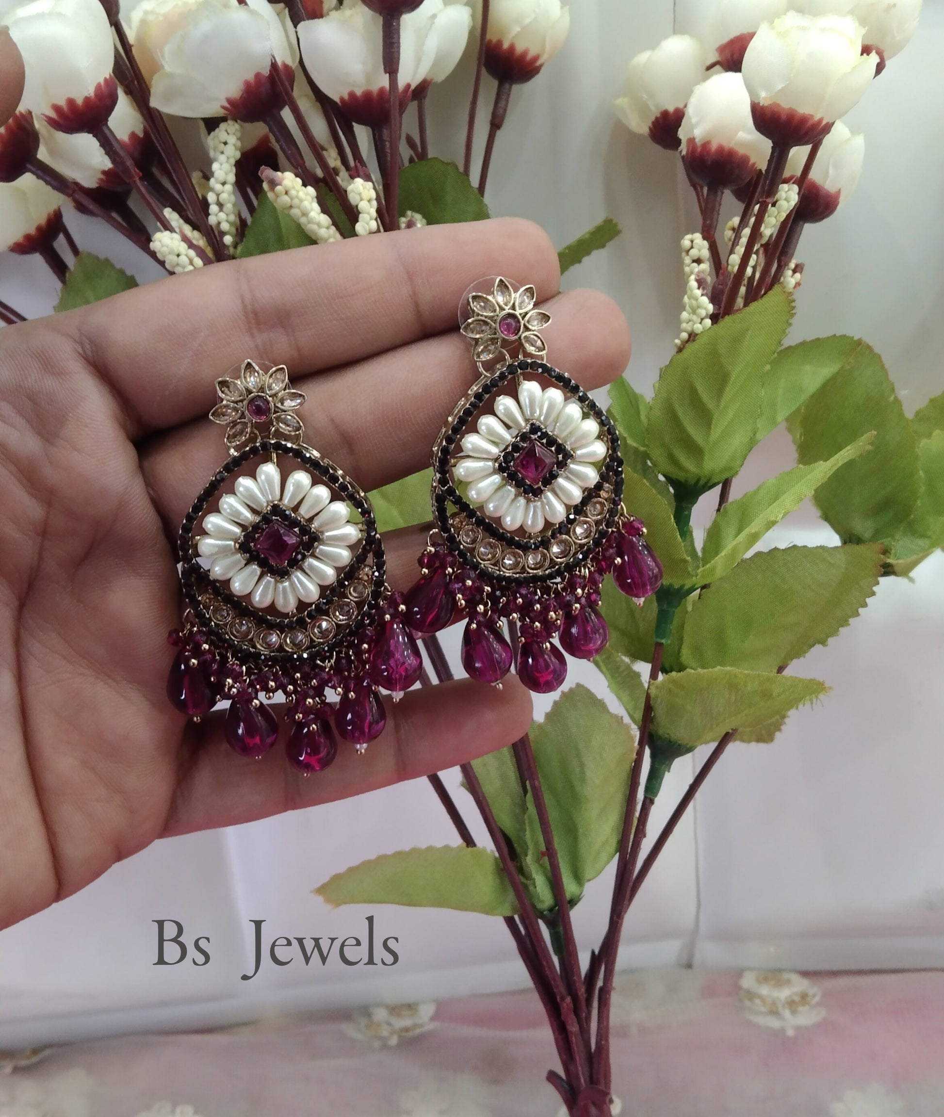 Purple Kundan Jhumka Kavya Bollywood Earrings