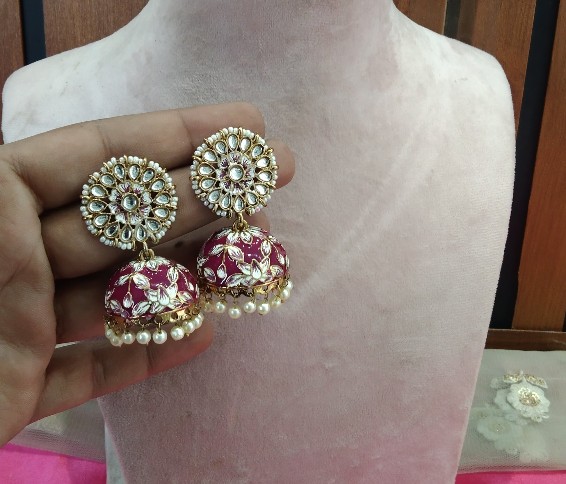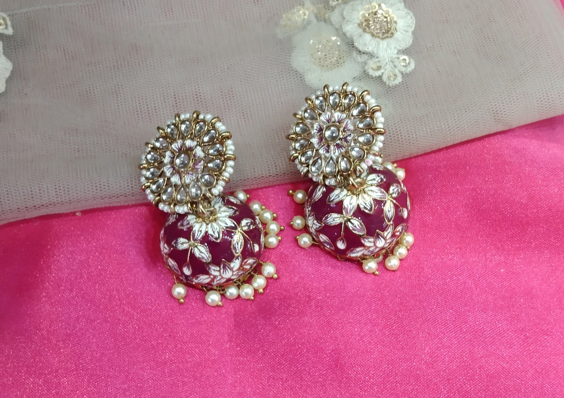 Purple Kundan Meenakari Jhumka Alone Bollywood Earrings