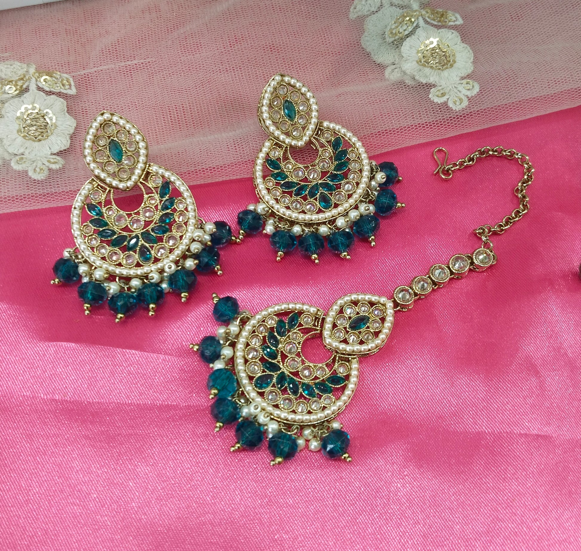 Rama green Improve Bollywood Earrings Tikka Set