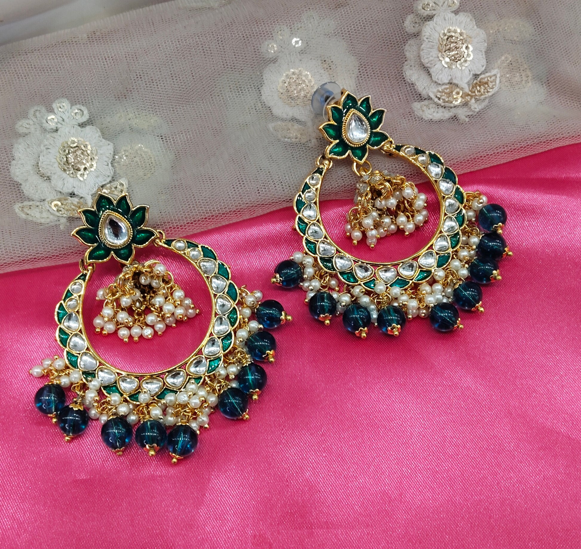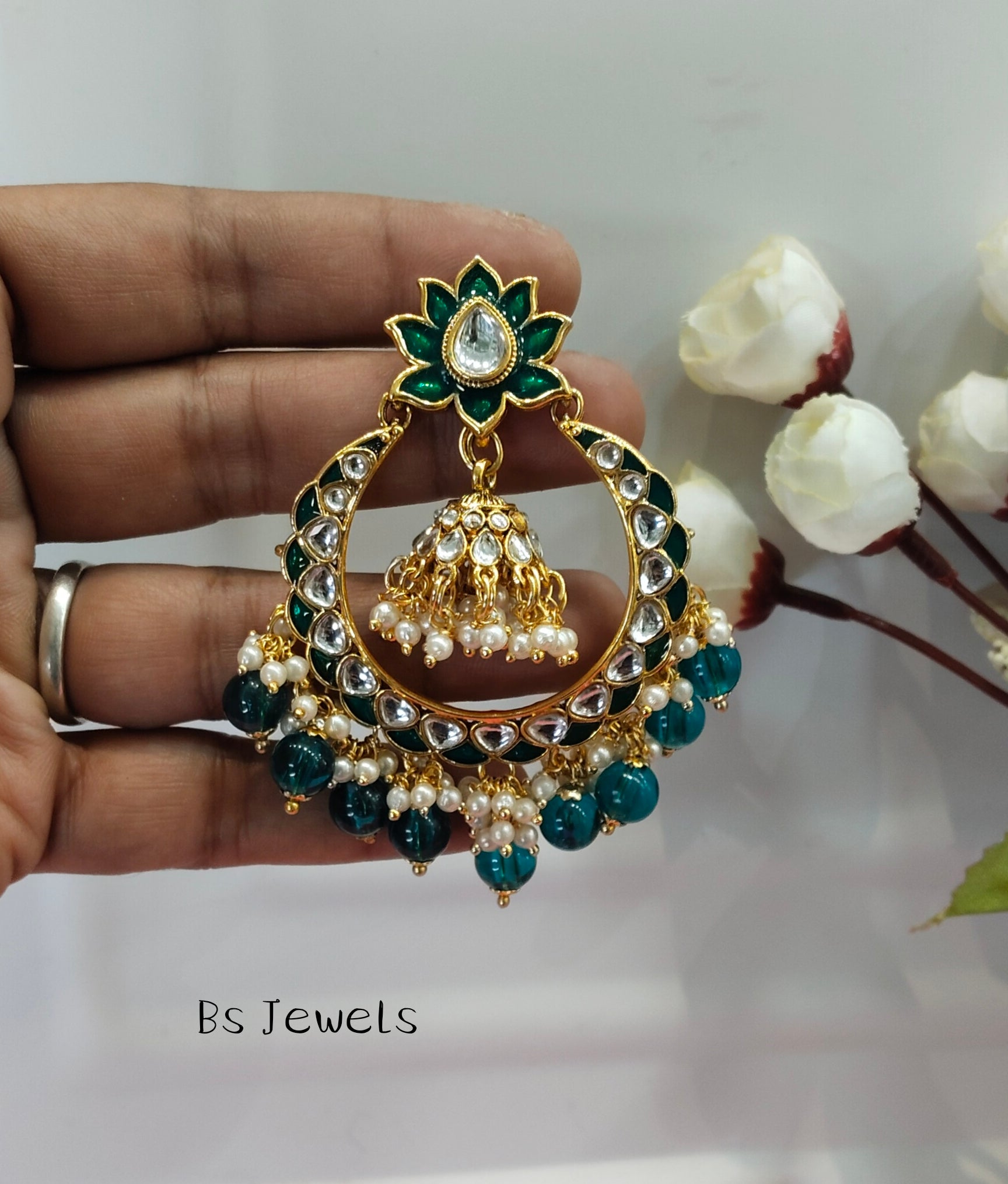Rama Green Kundan ChandBali Jhumka Explore Bollywood Earrings