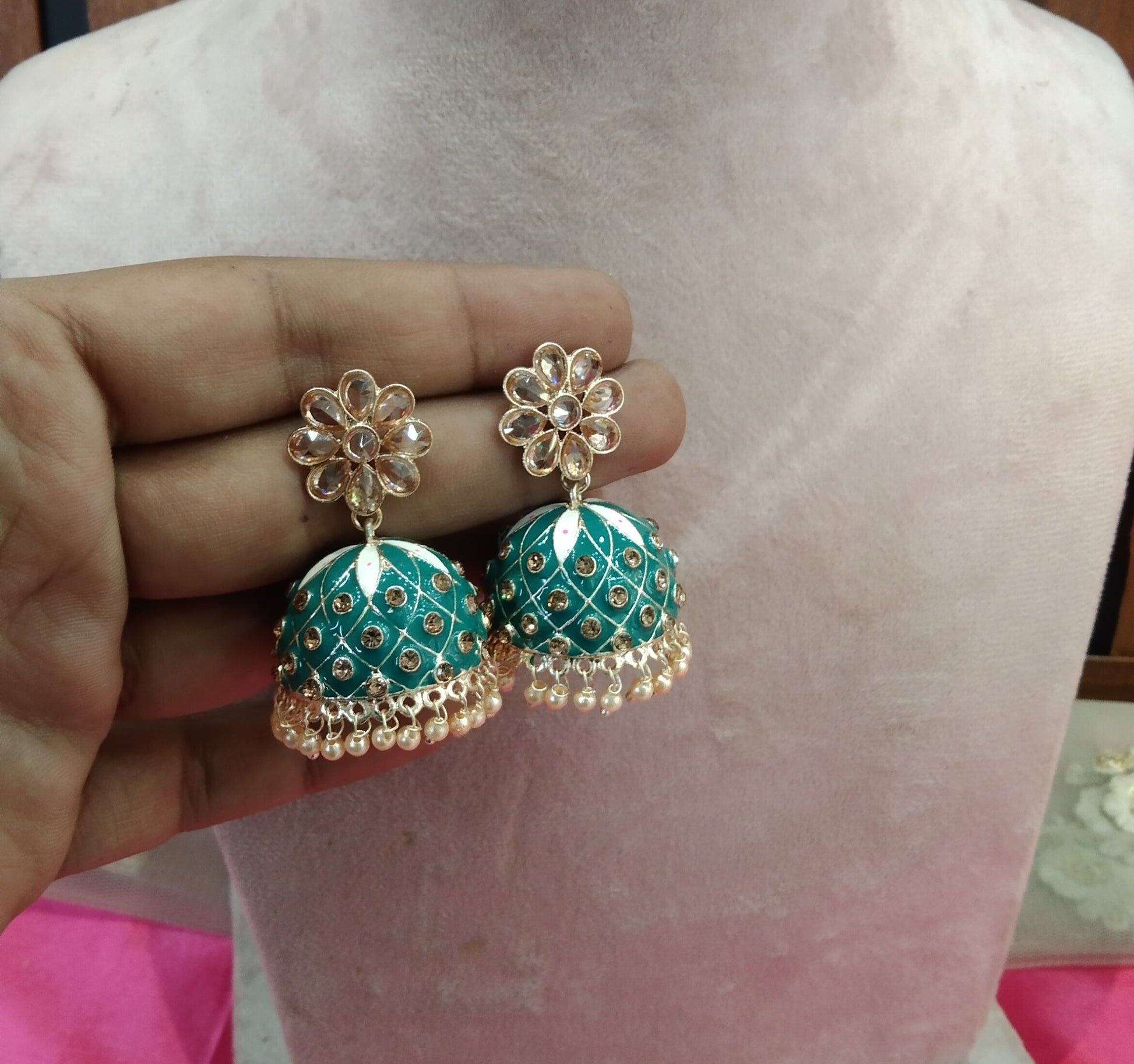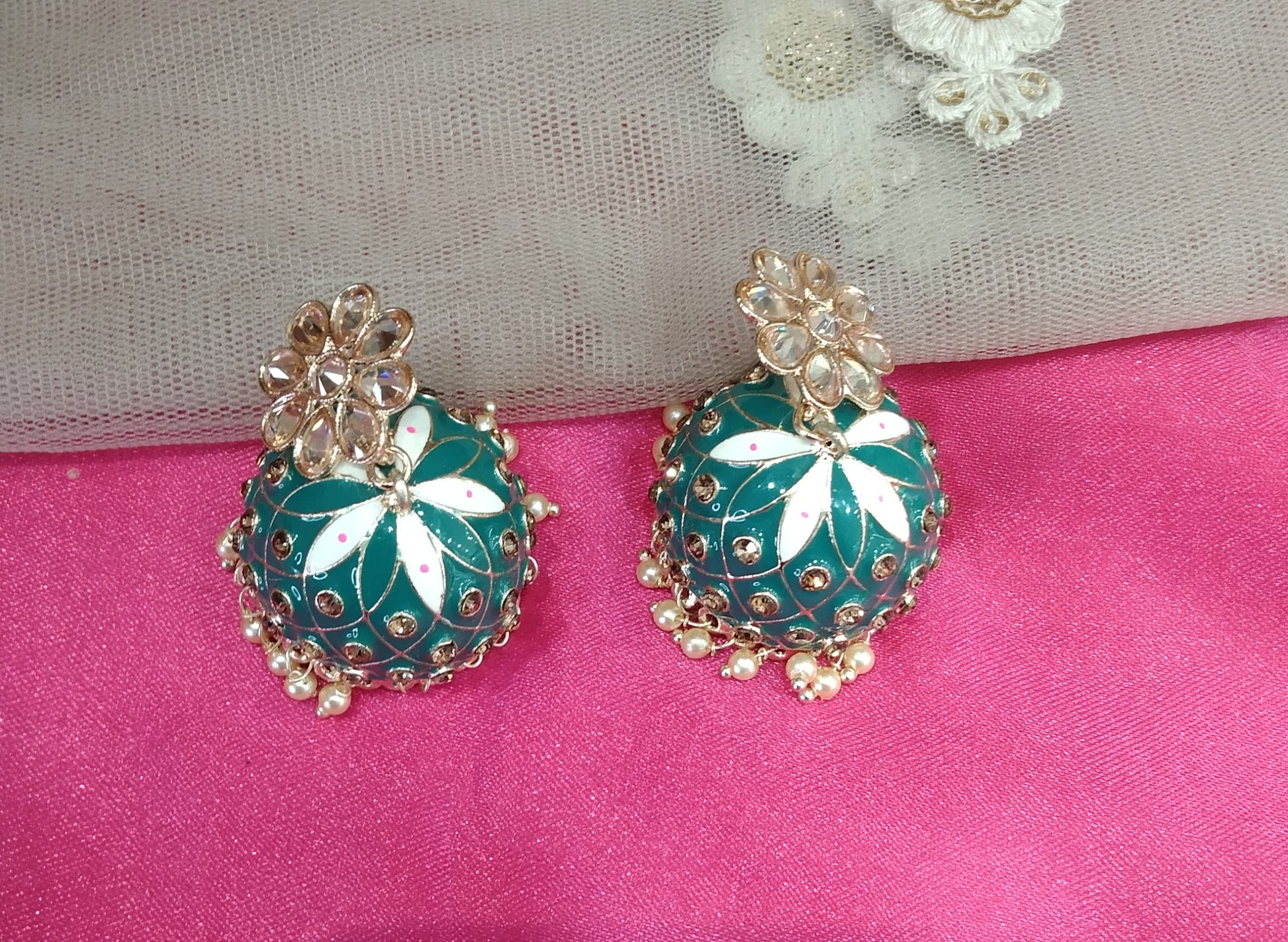 Rama Green Kundan Jhumka Honey Bollywood Earrings