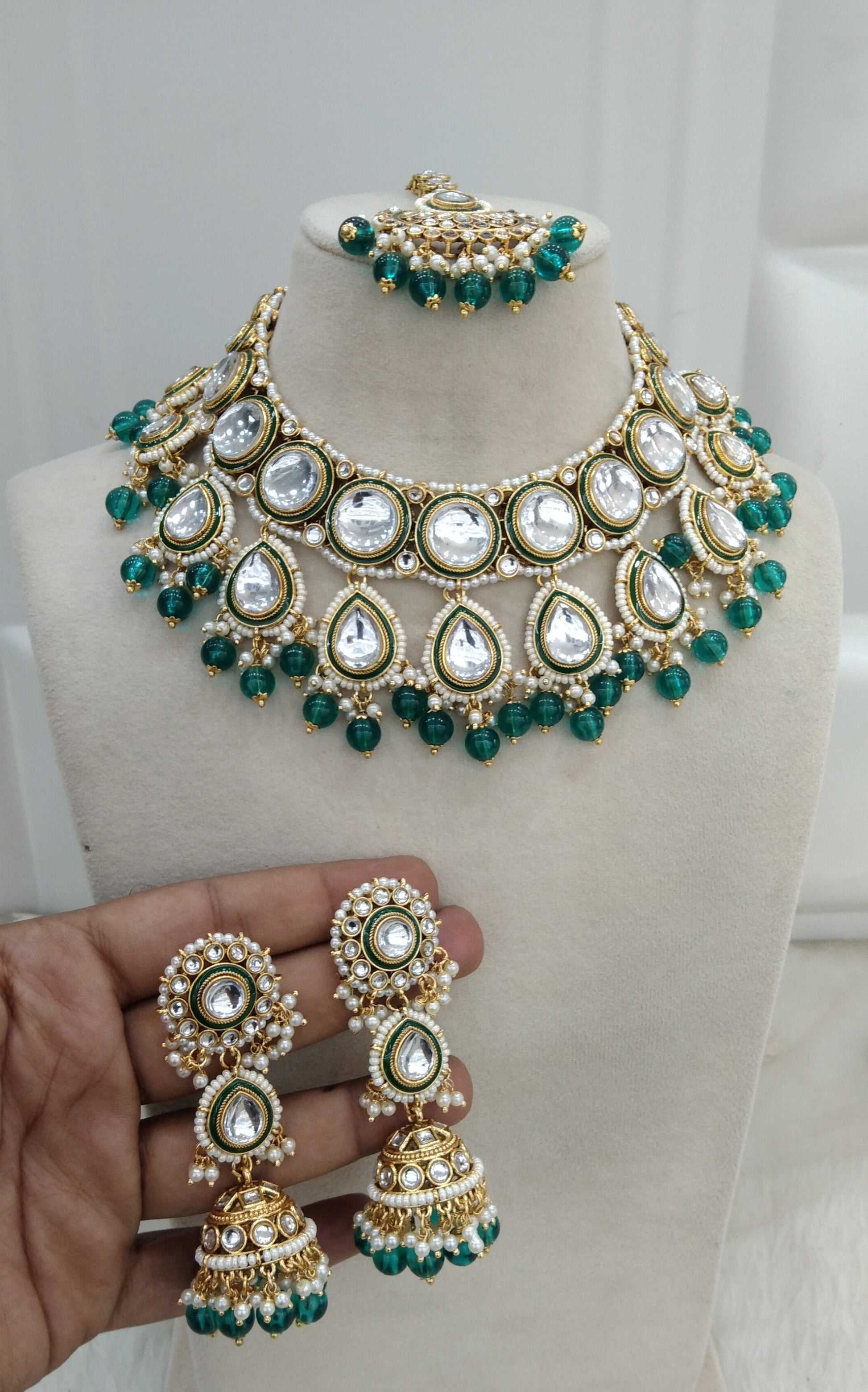 *Kundan Necklace set with earrings and tikka.