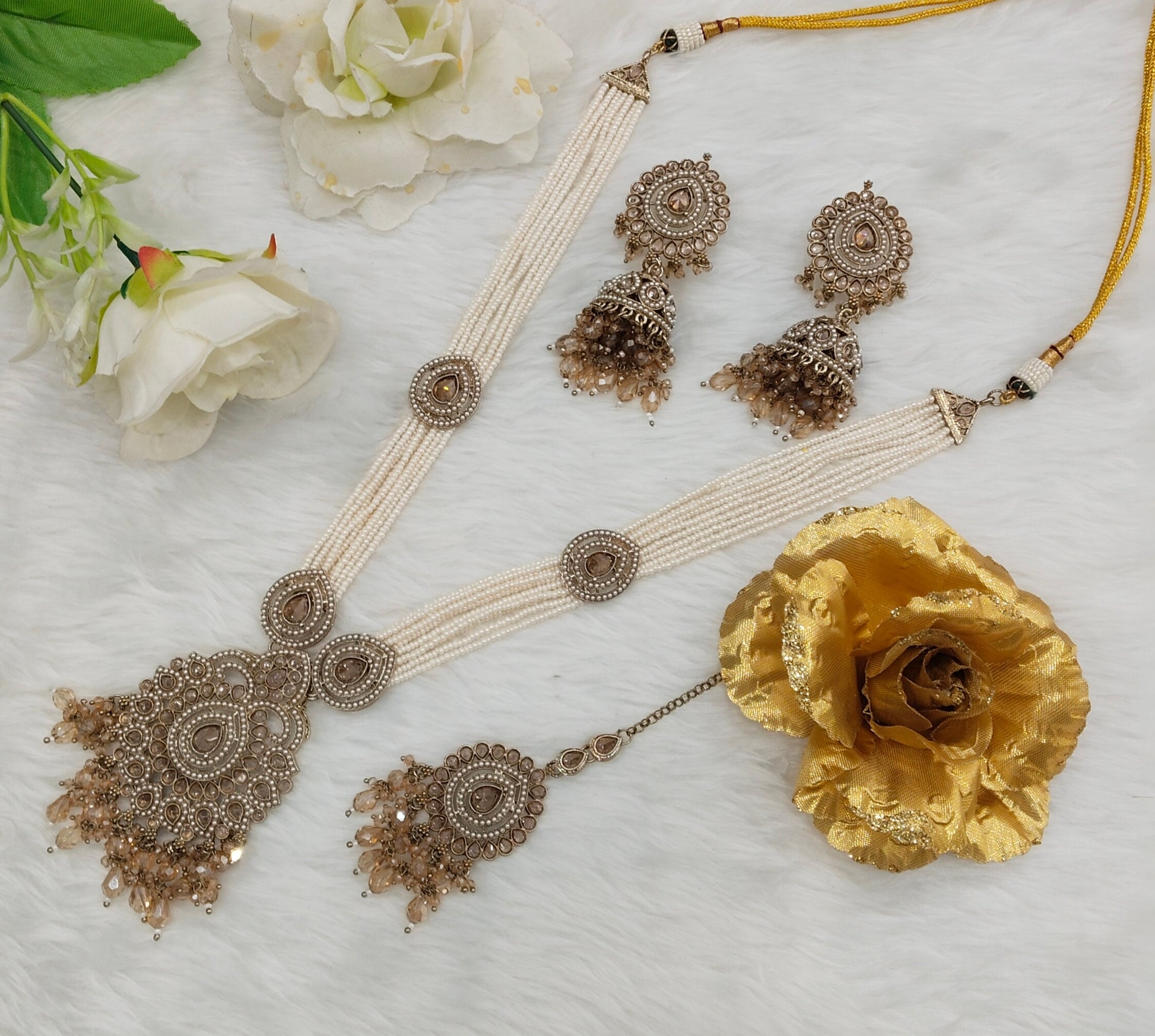 Rani Haar Antique Gold Champagne Stone Jewelry Head Set