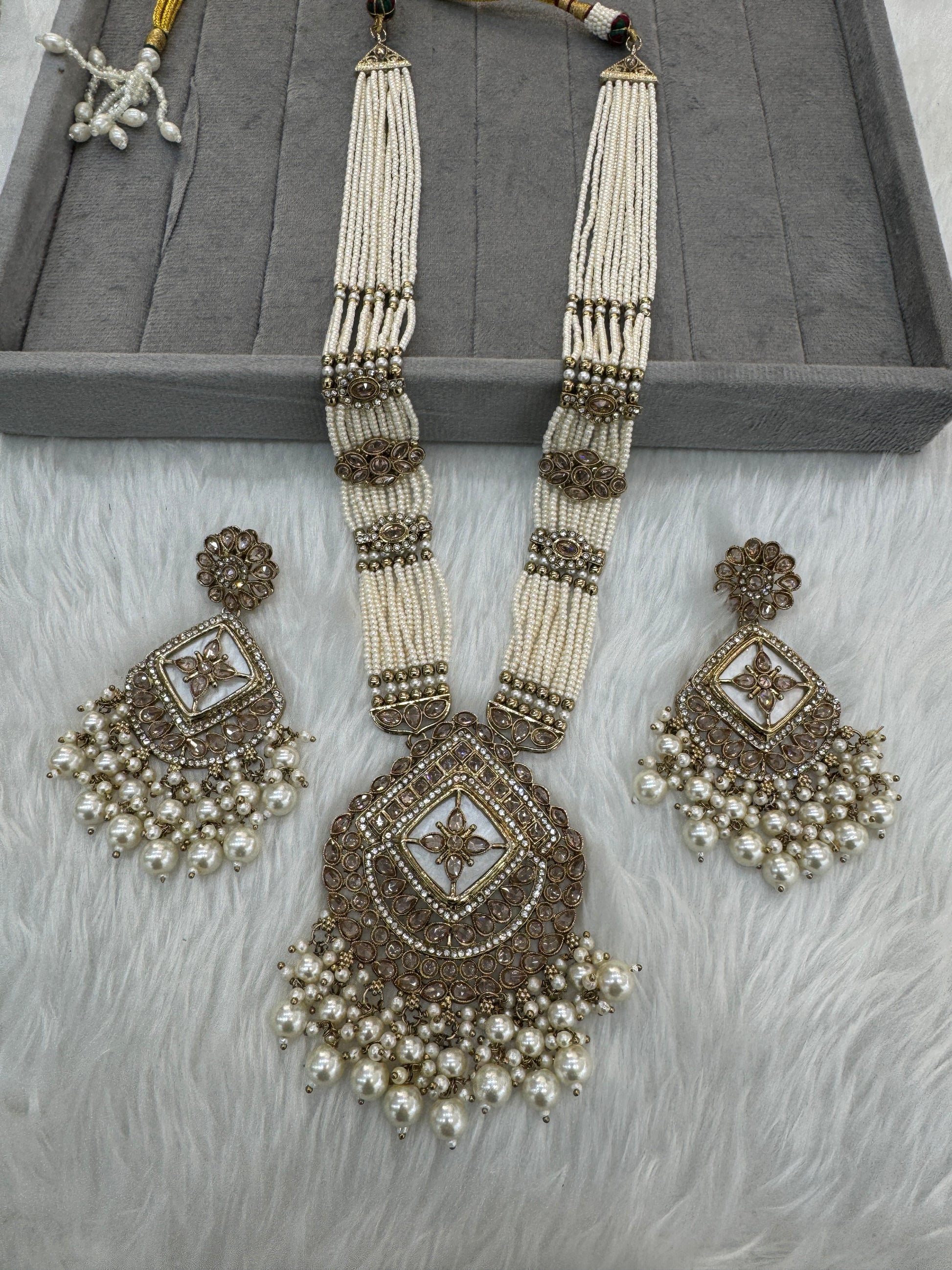 Rani Haar Antique Gold Champagne Stone Jewelry Set