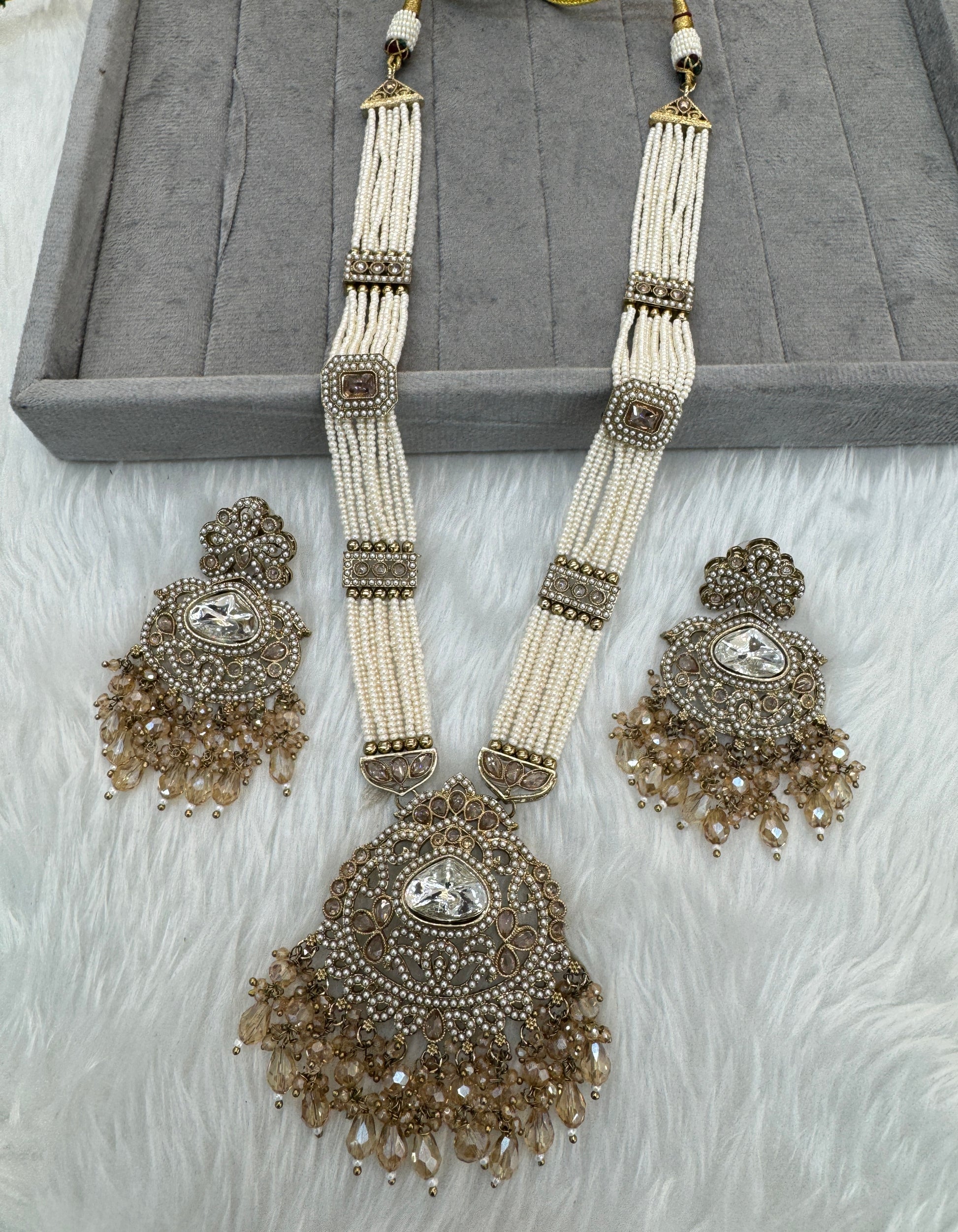 Rani Haar Antique Gold Champagne Stone Jewelry Set