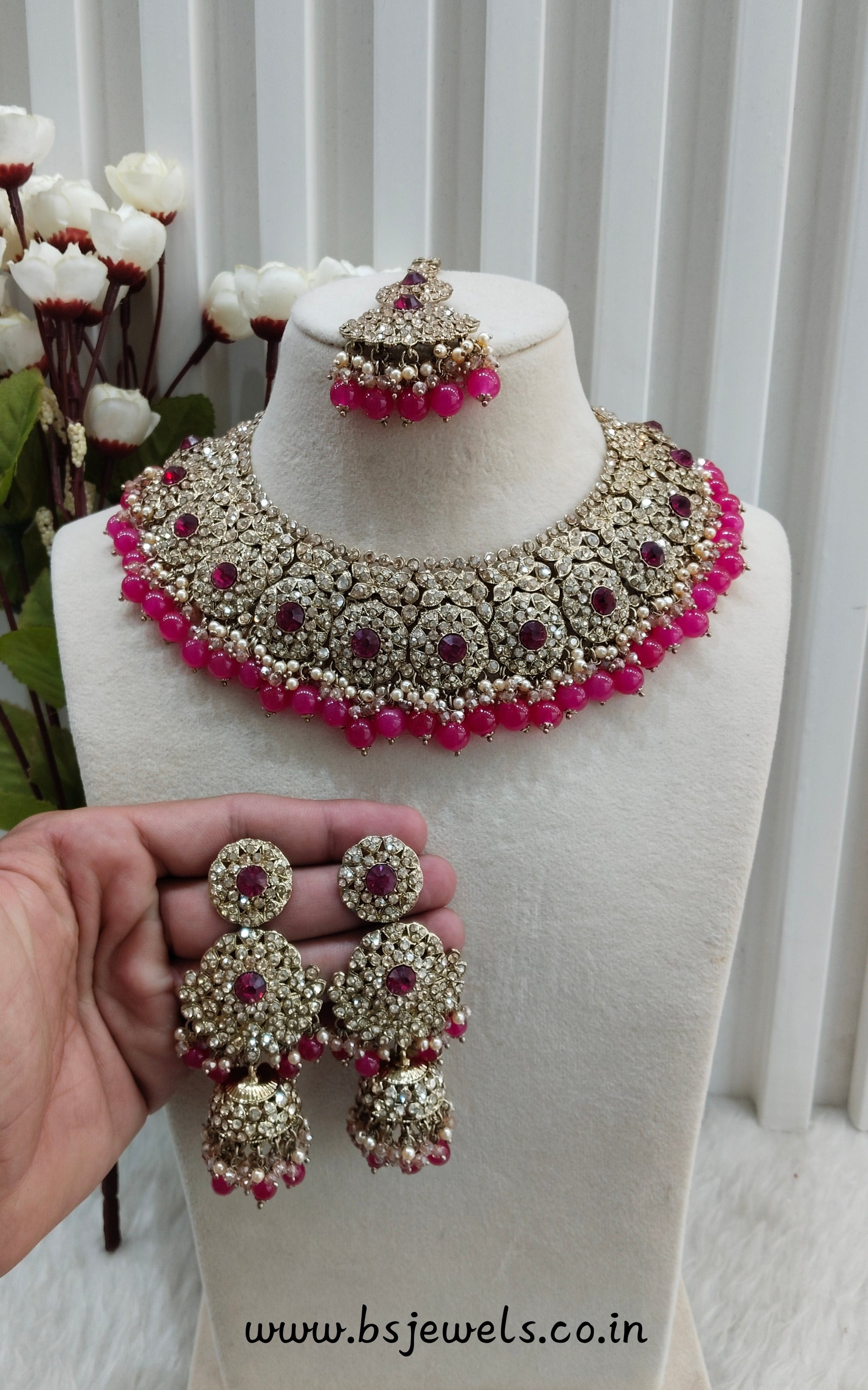 *Necklace set with earrings and tikka.