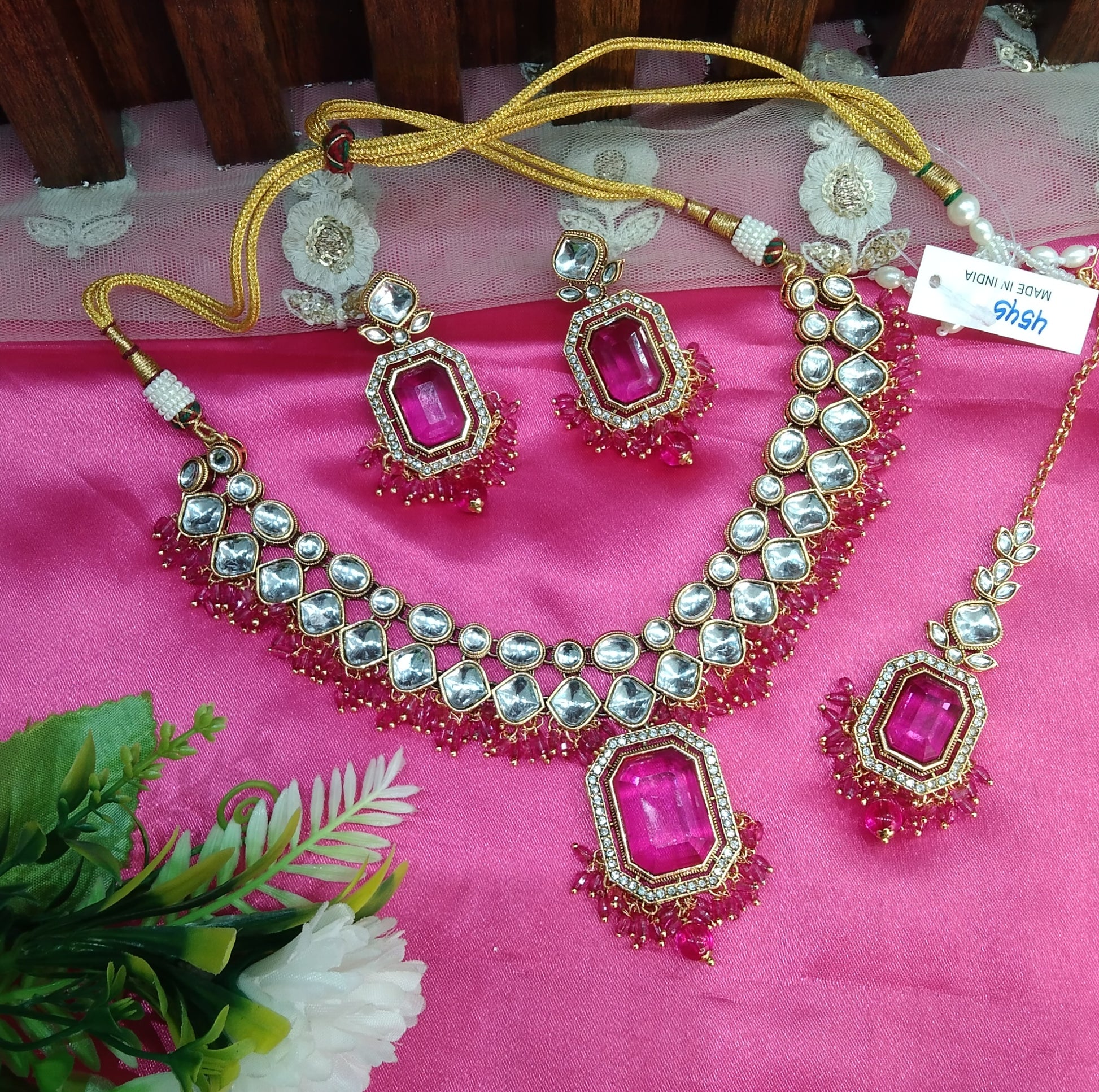 Rani Pink Kundan Necklace Jewellery Legend Set