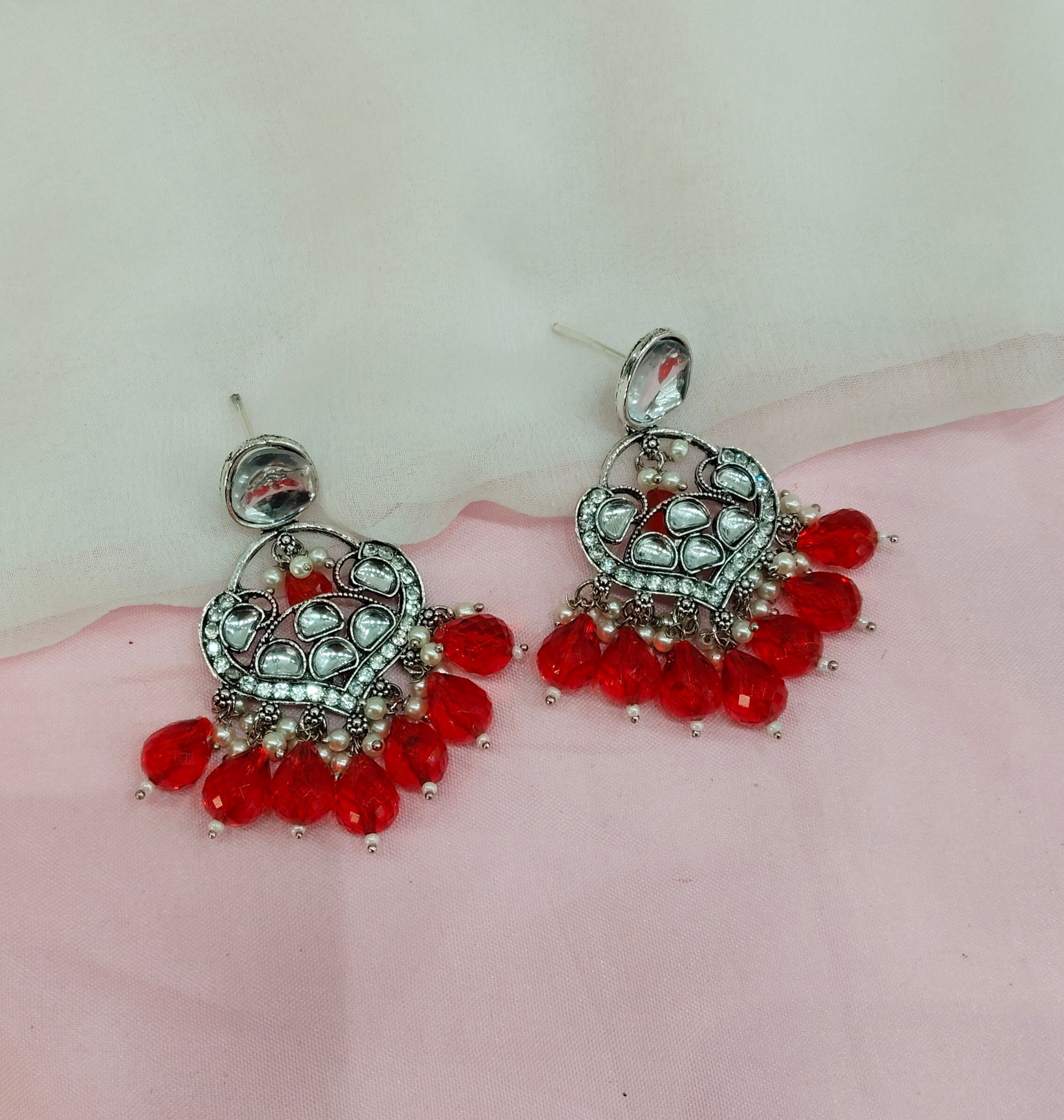 Red Oxidized Metal Pushpa Earrings Set