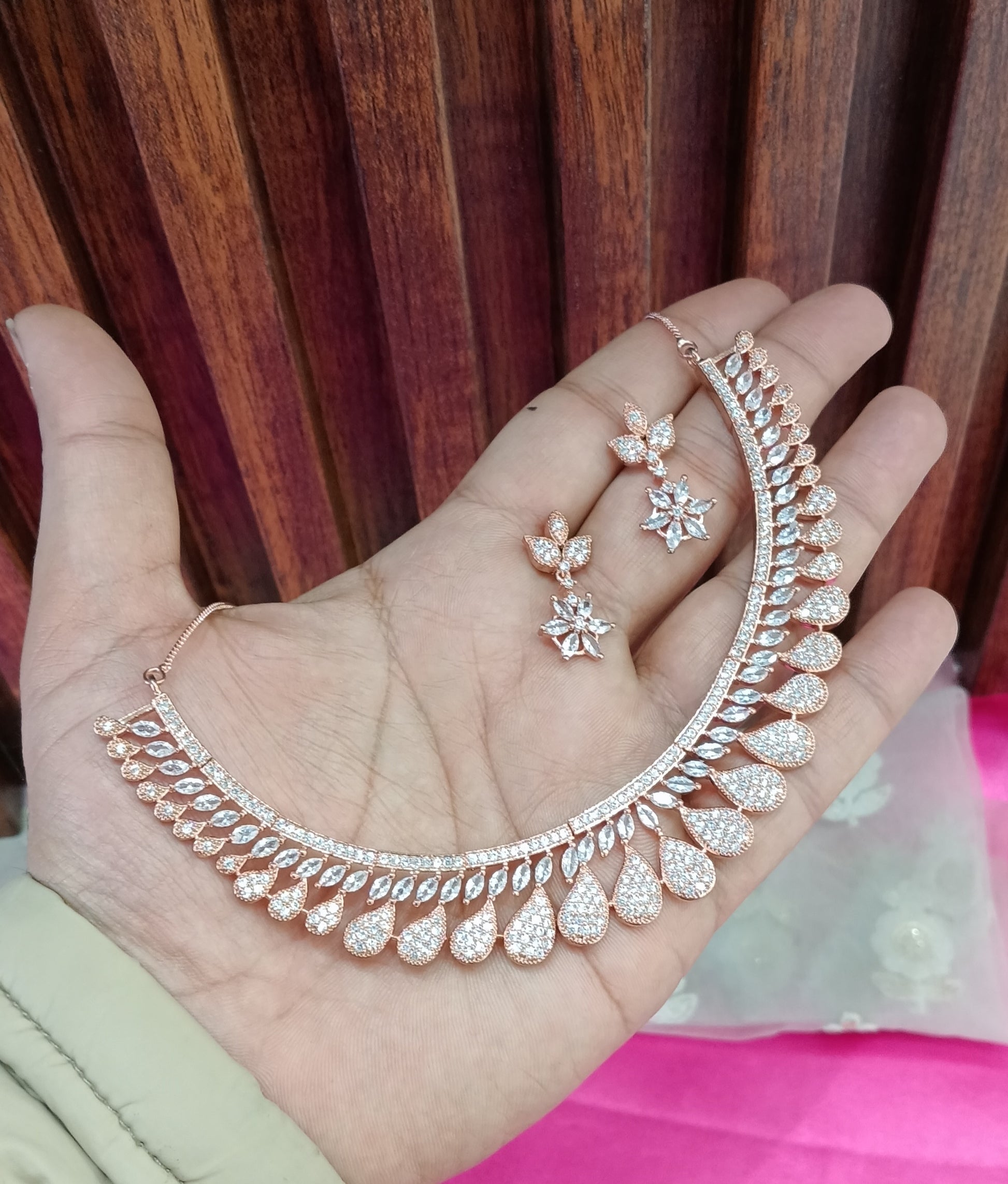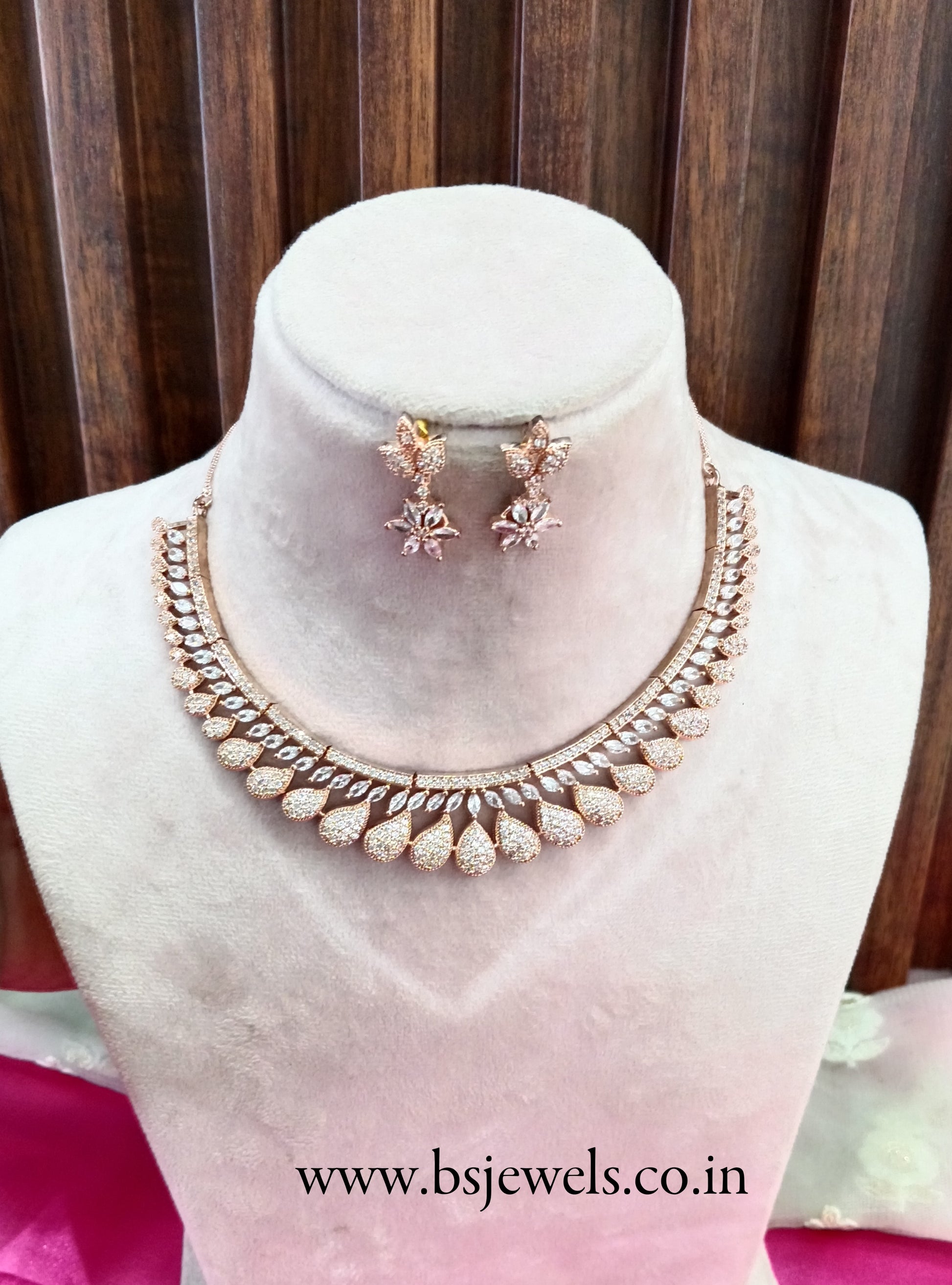 Rose American Diamond Cz Necklace Jewellery Buffalo Set