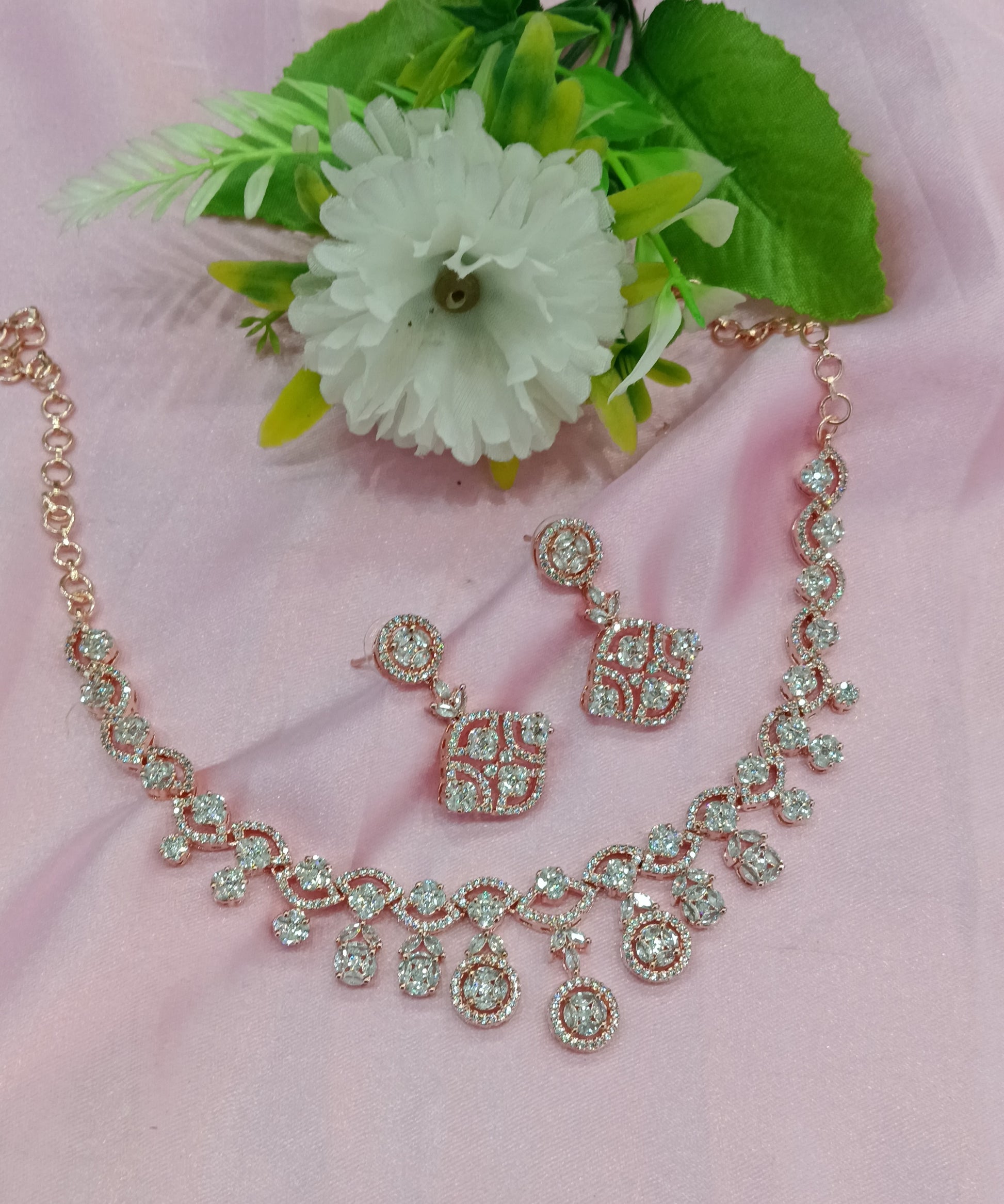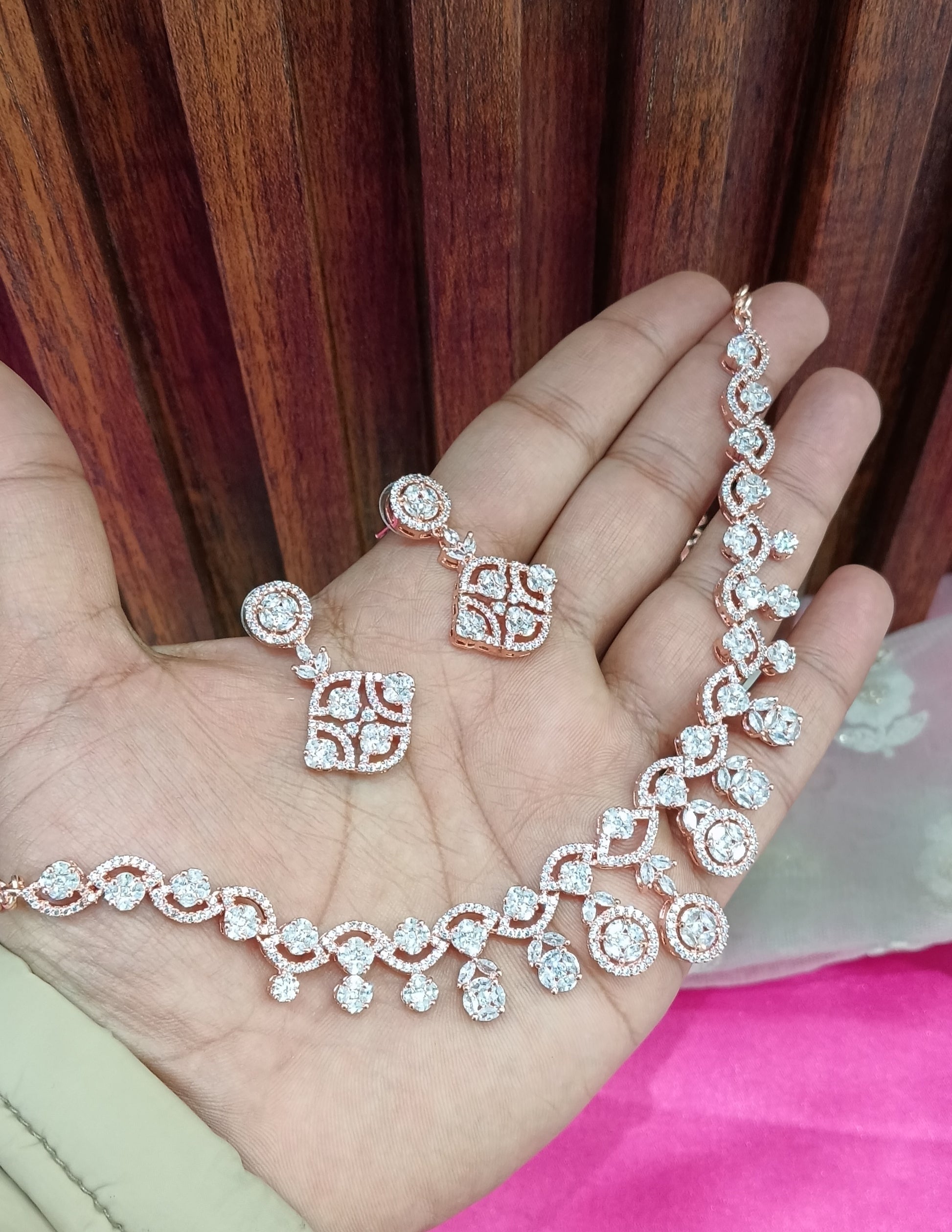 Rose Clear American Diamond Cz Necklace Jewellery Pasoori Set