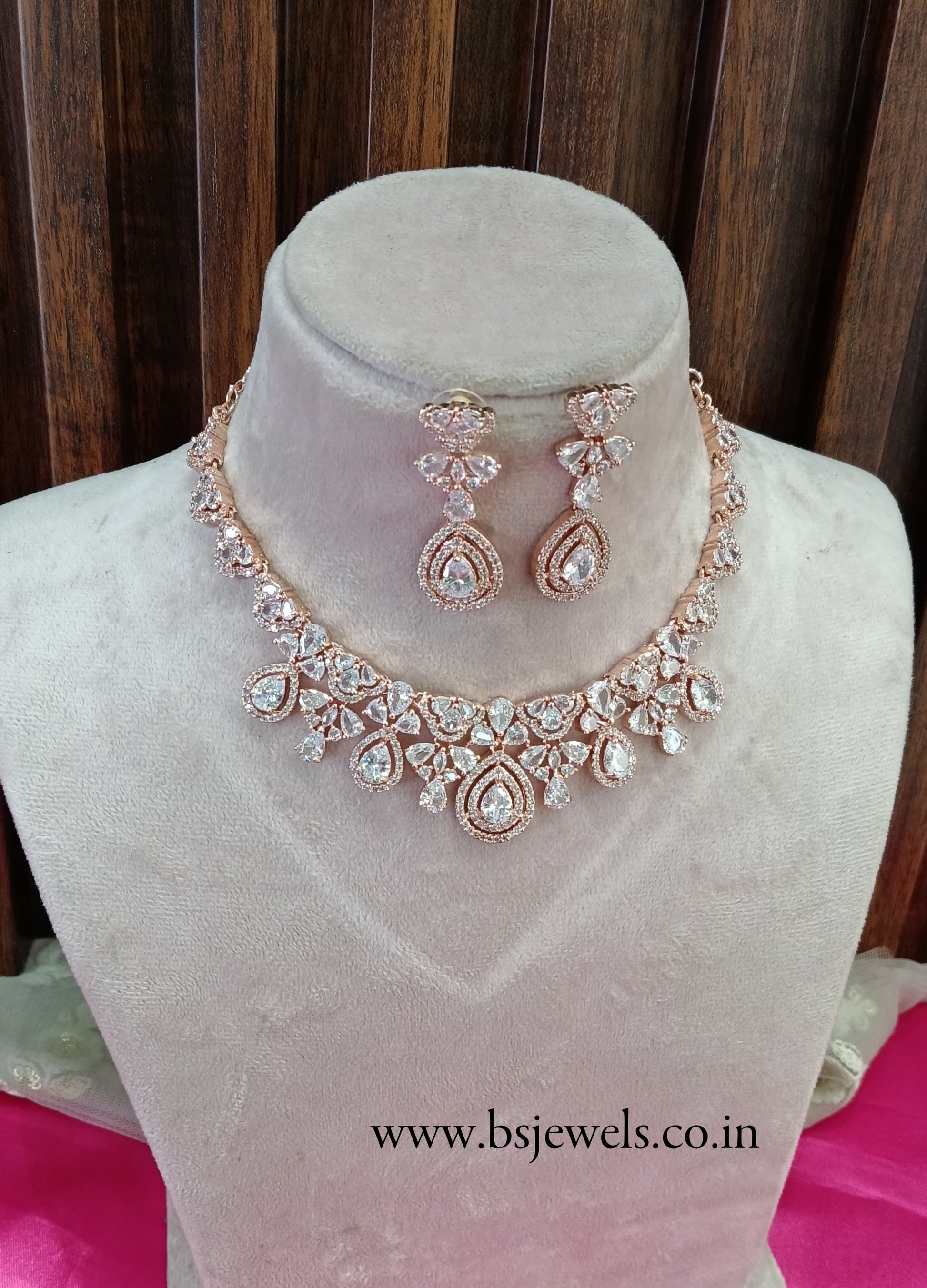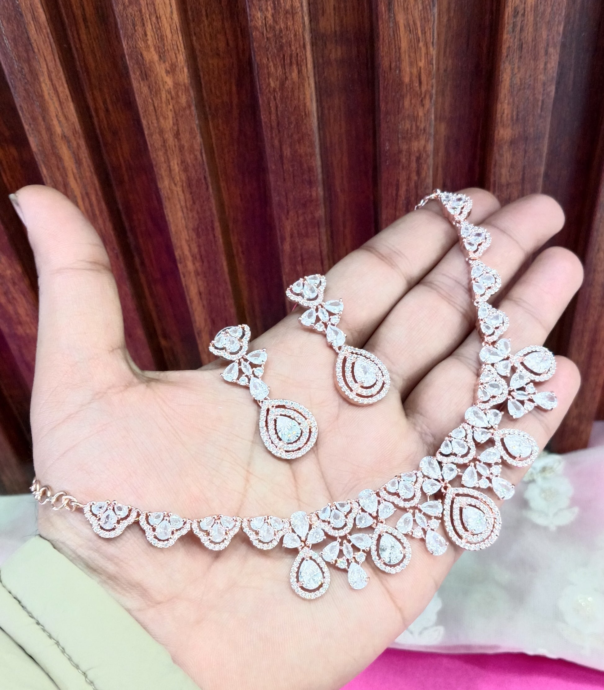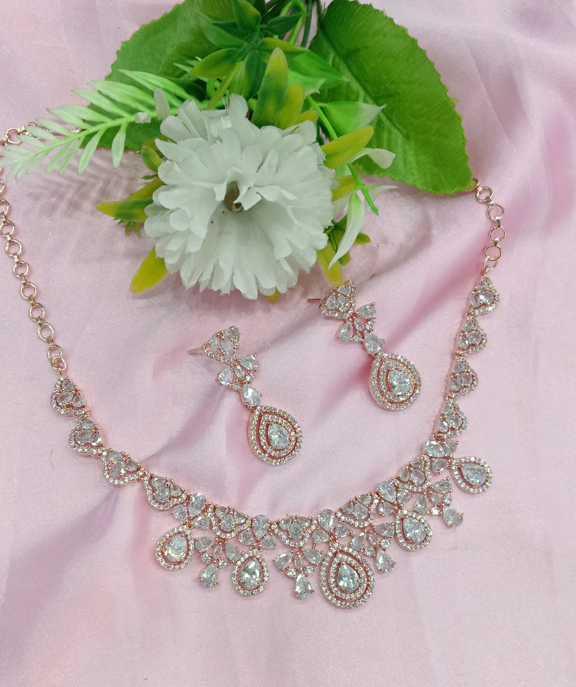 Rose Clear American Diamond Cz Necklace Jewellery Power Set
