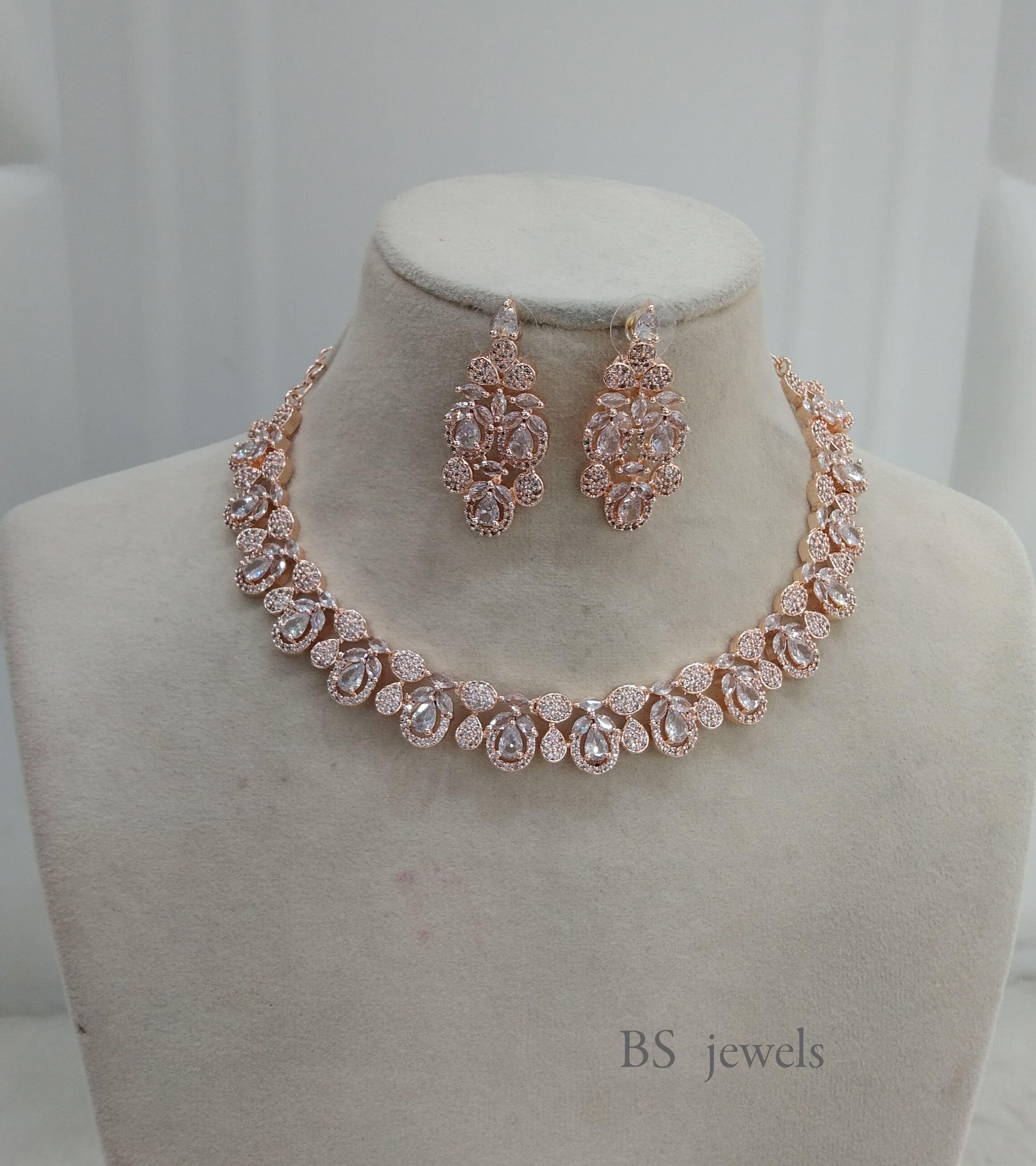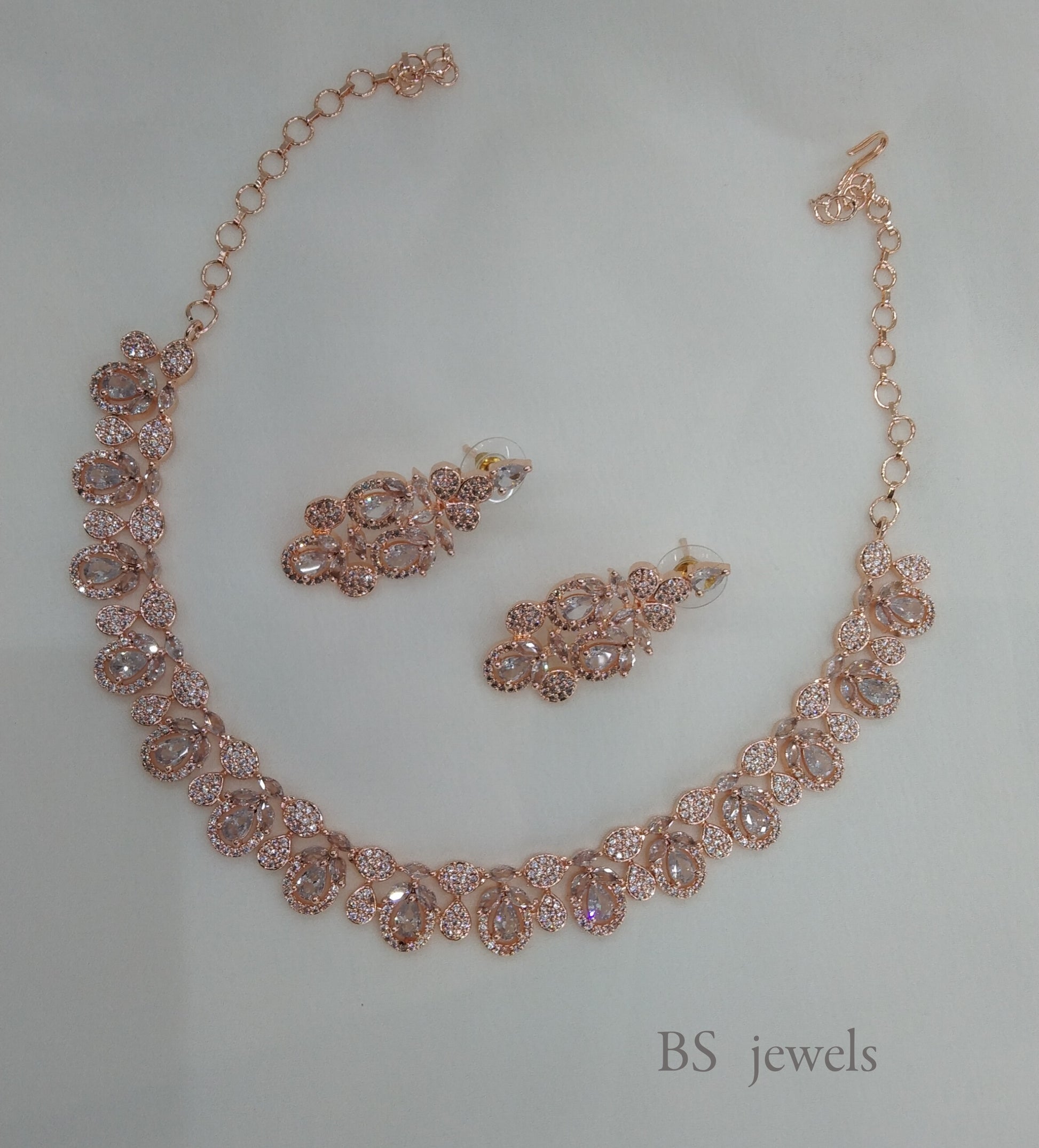 Rose Gold American Diamond Ad Riverside Necklace Set