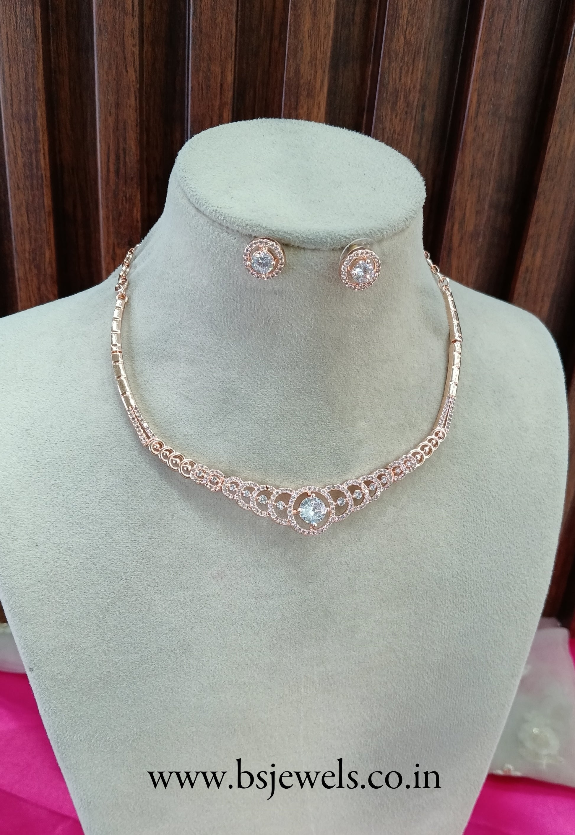 Rose Gold American Diamond Cz Necklace Jewellery Corpus Set