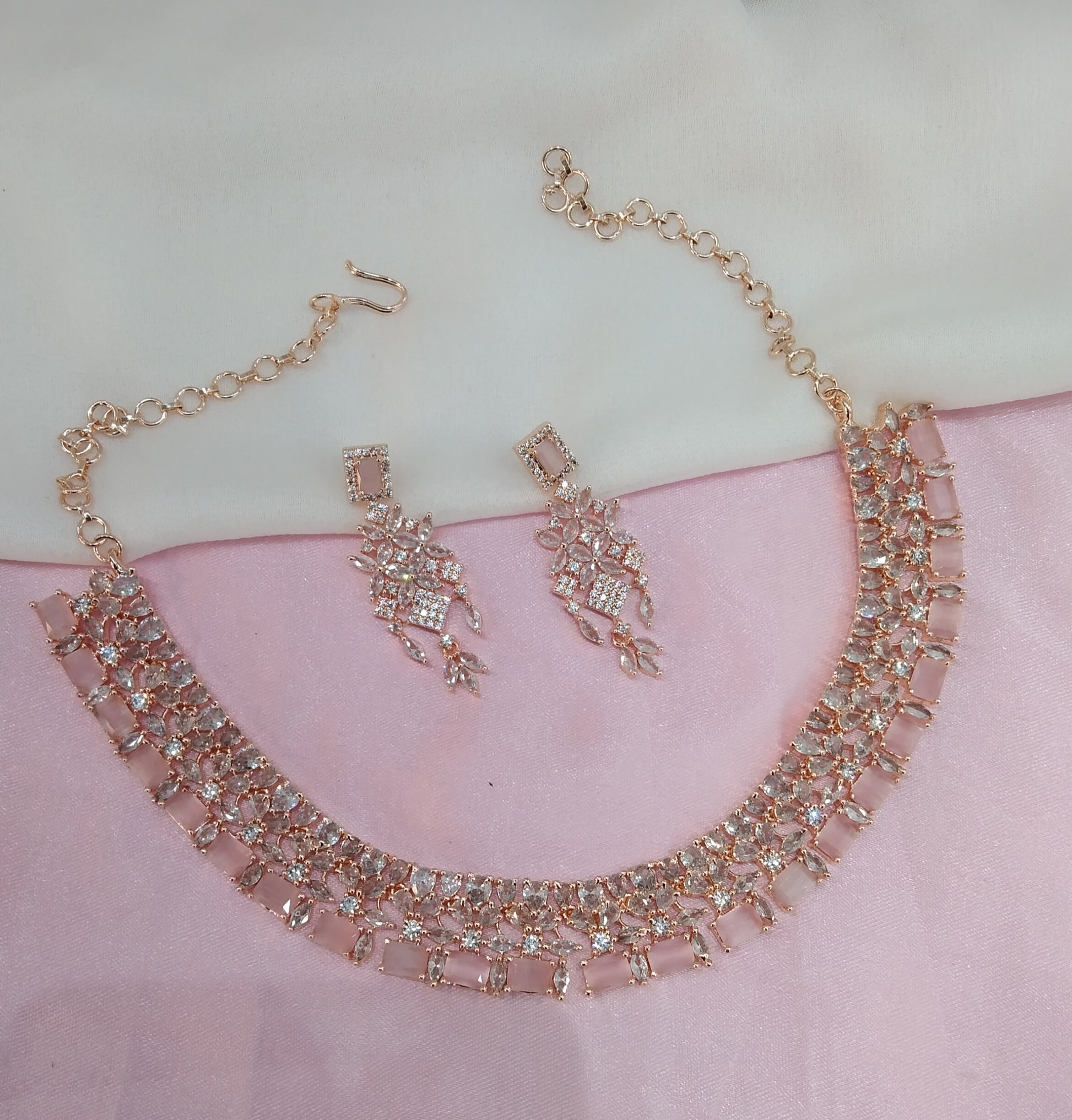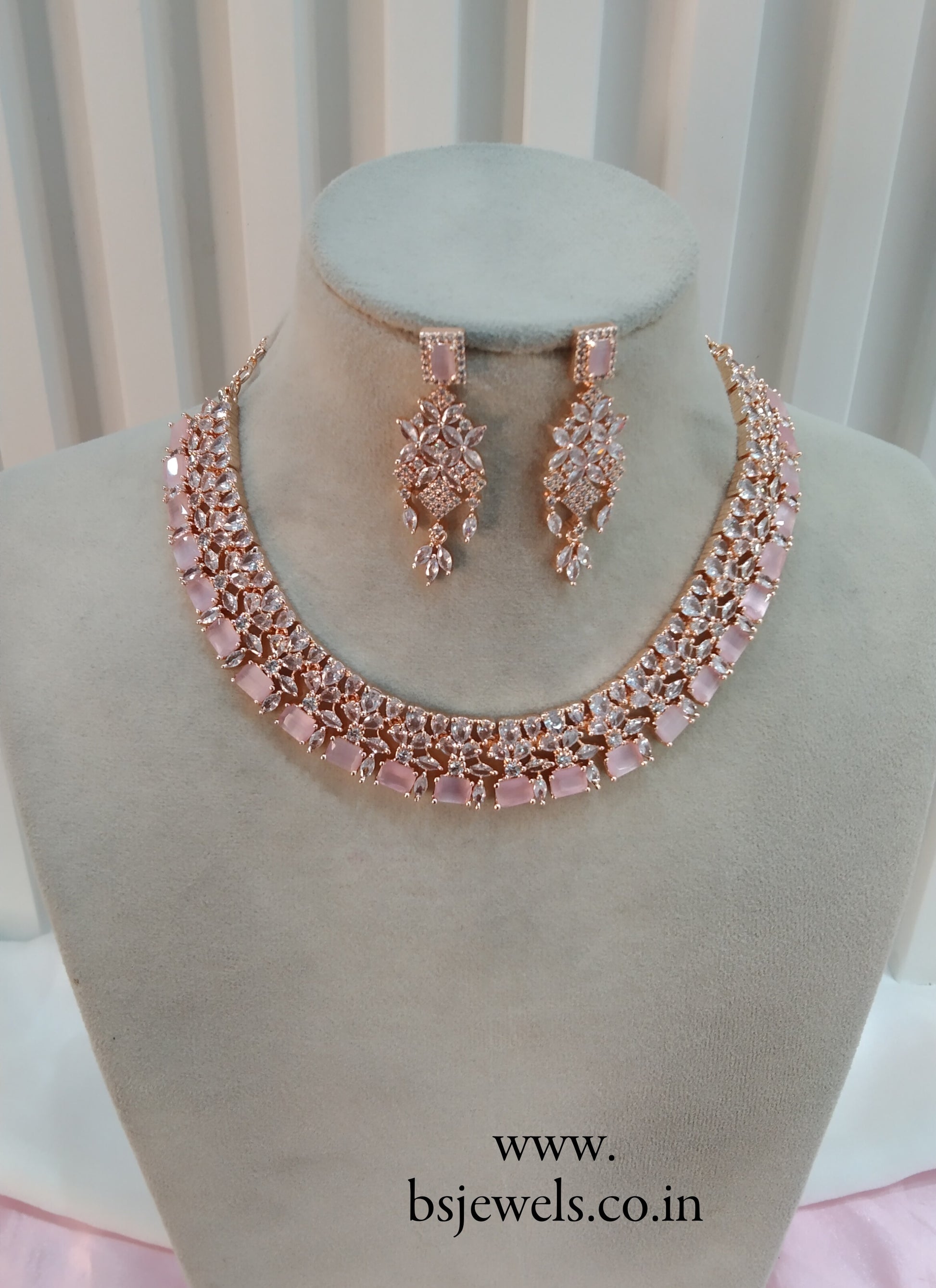 Rose Pink CZ Necklace Jewellery Chicago Set