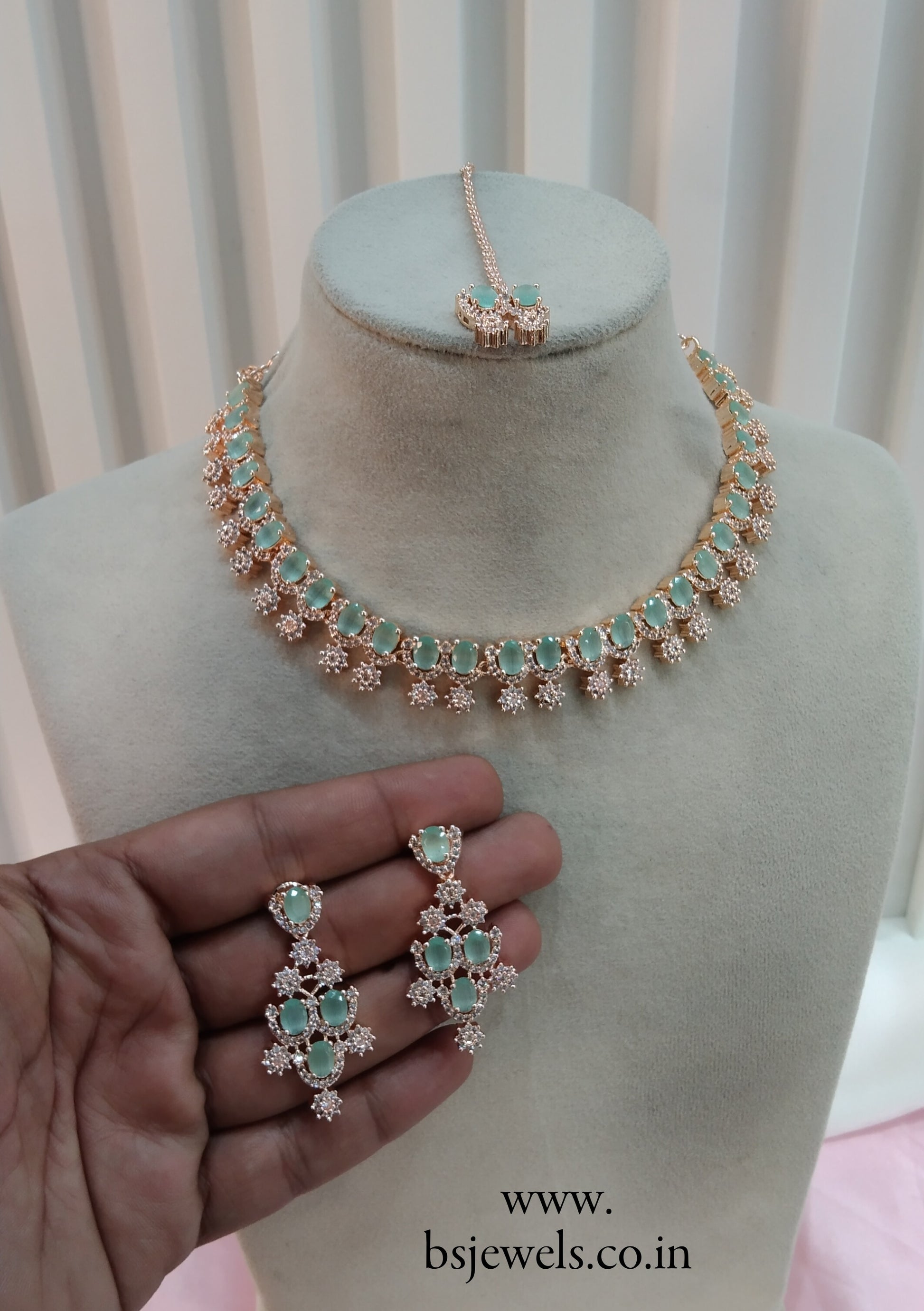 Rose Pista CZ Necklace Jewellery Coloumbia Set
