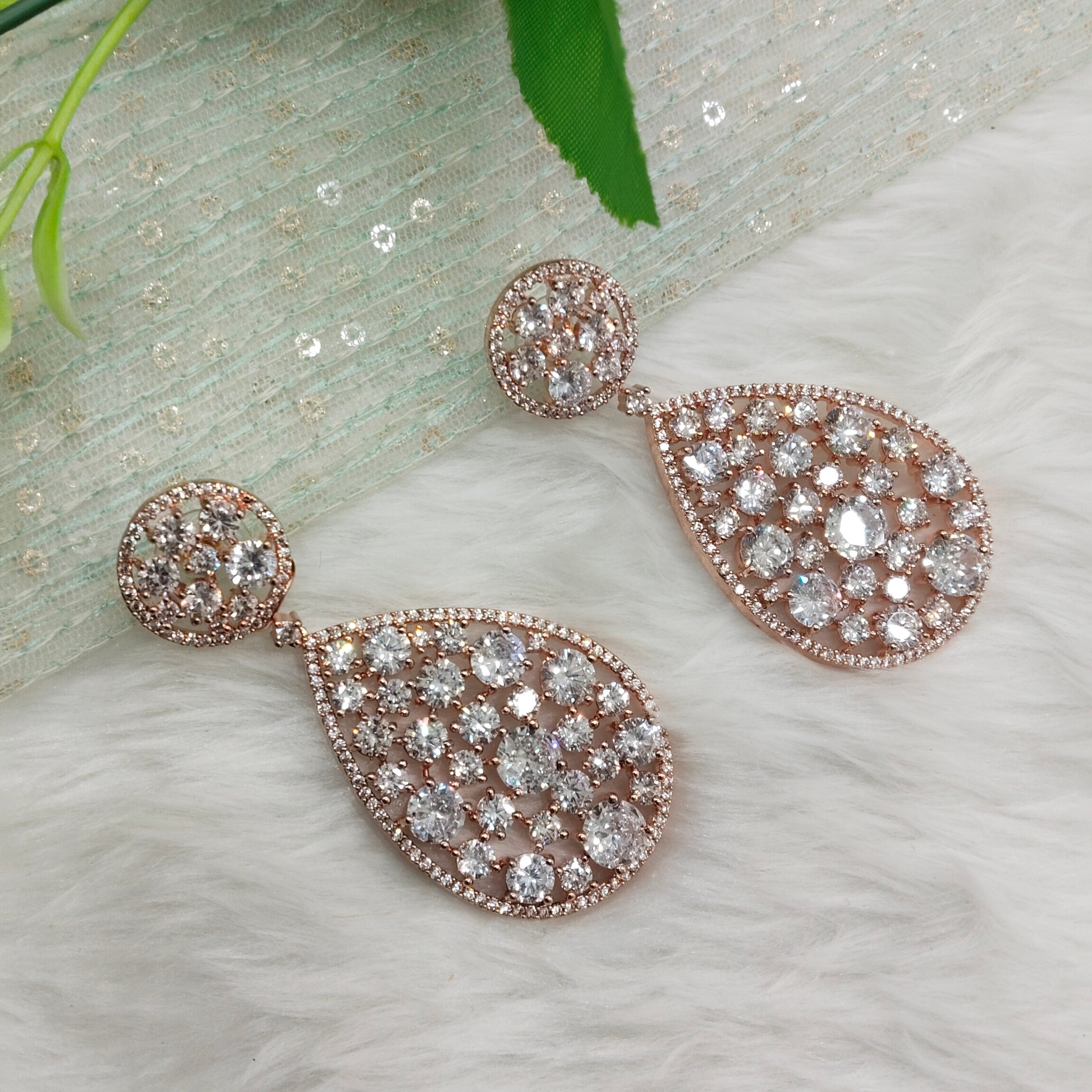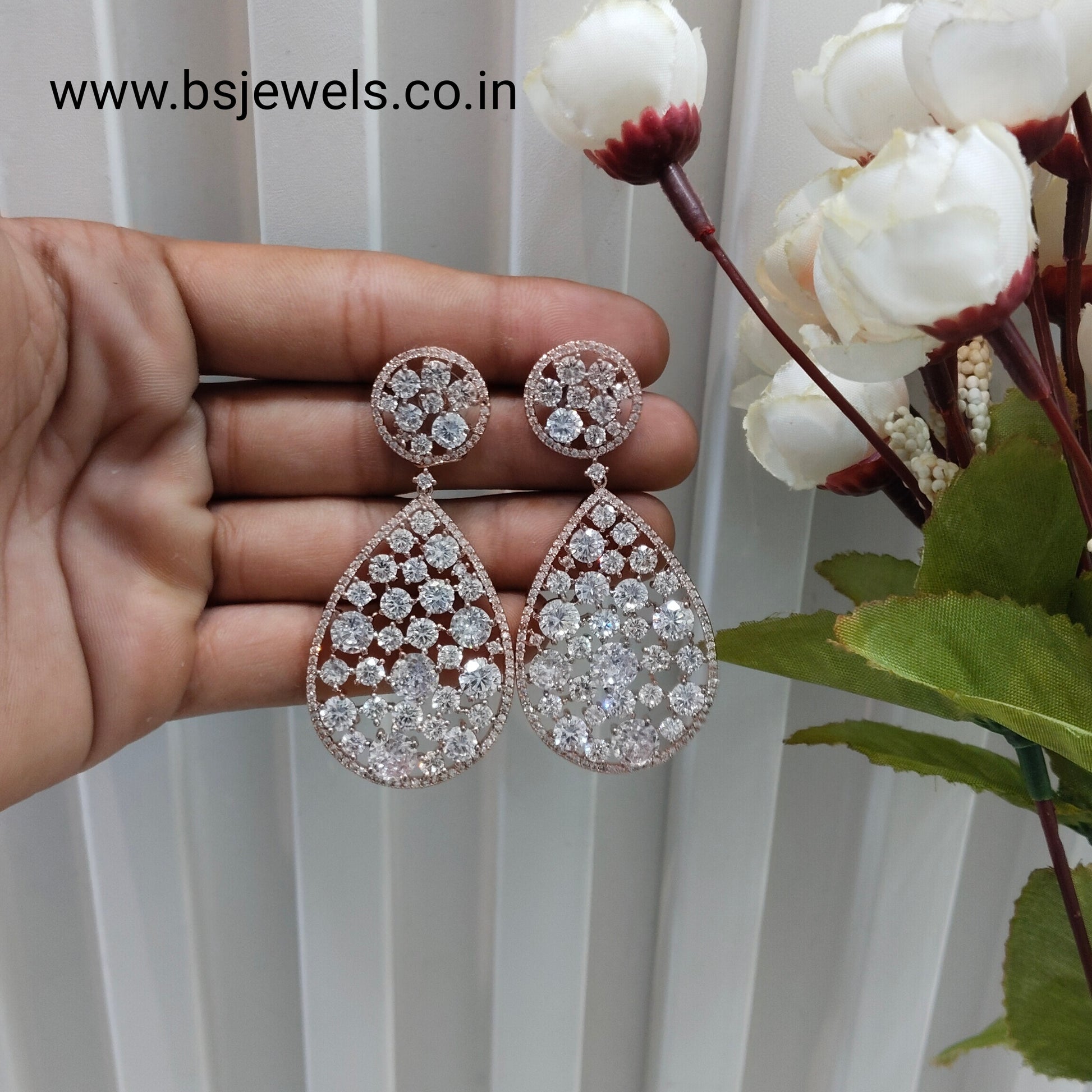 Rose White Cz American Diamond Earrings Anushka Jewellery
