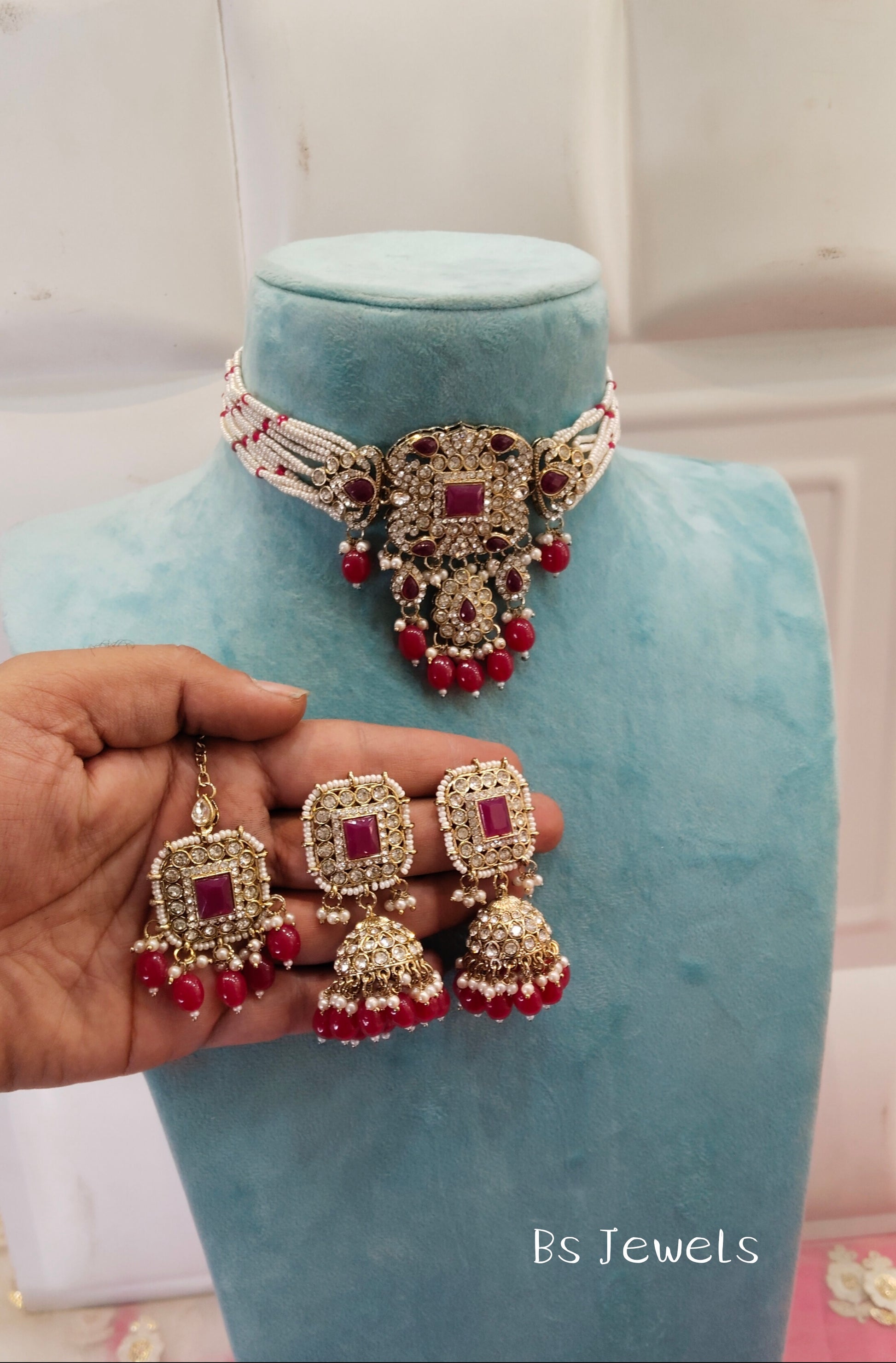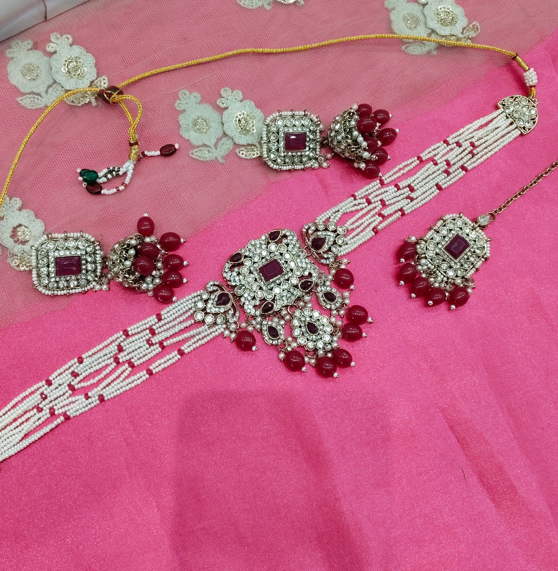 Ruby Choker Jhumka Jewellery Simi Set