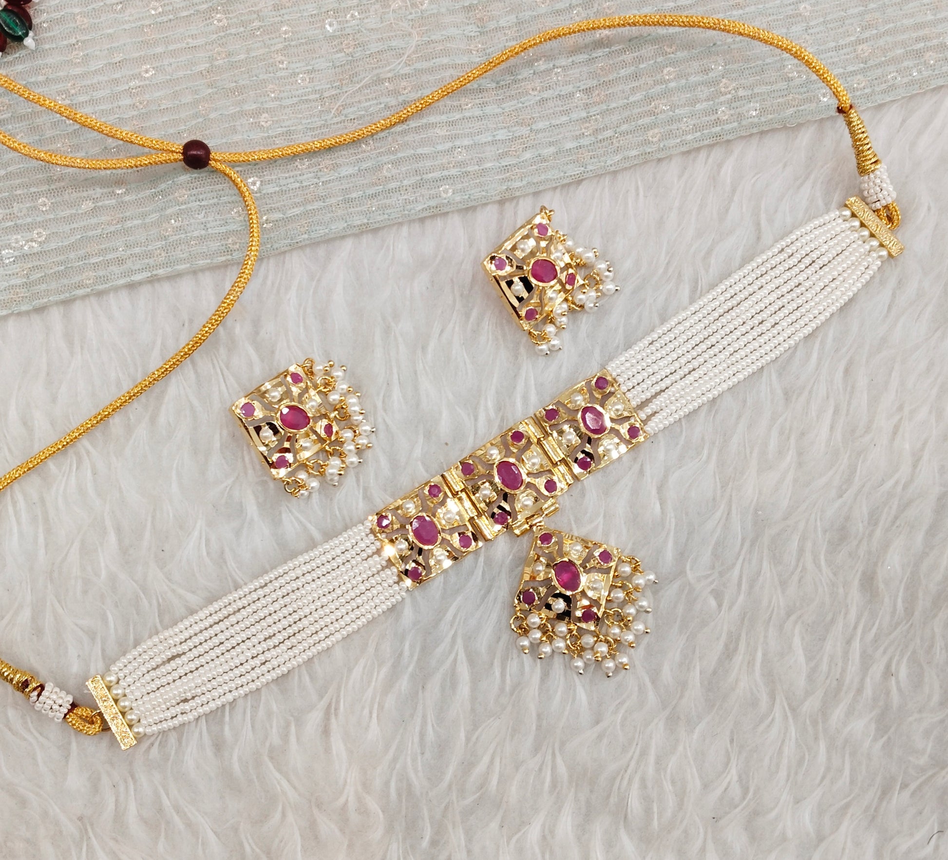 Ruby Gold Jadau Punjabi Style Choker Jewellery Smith Set