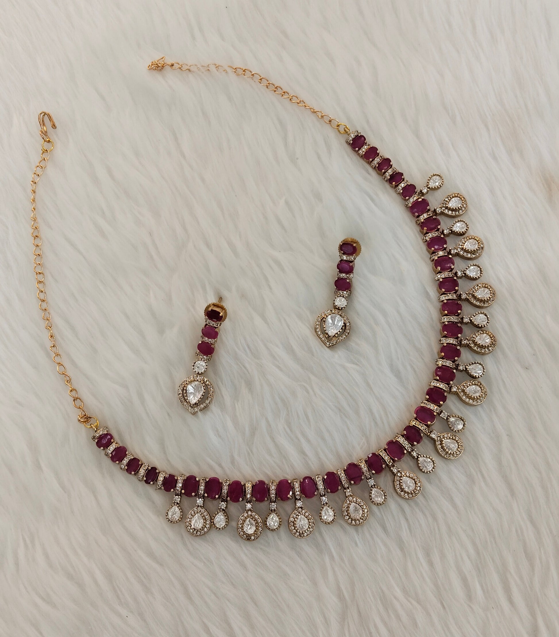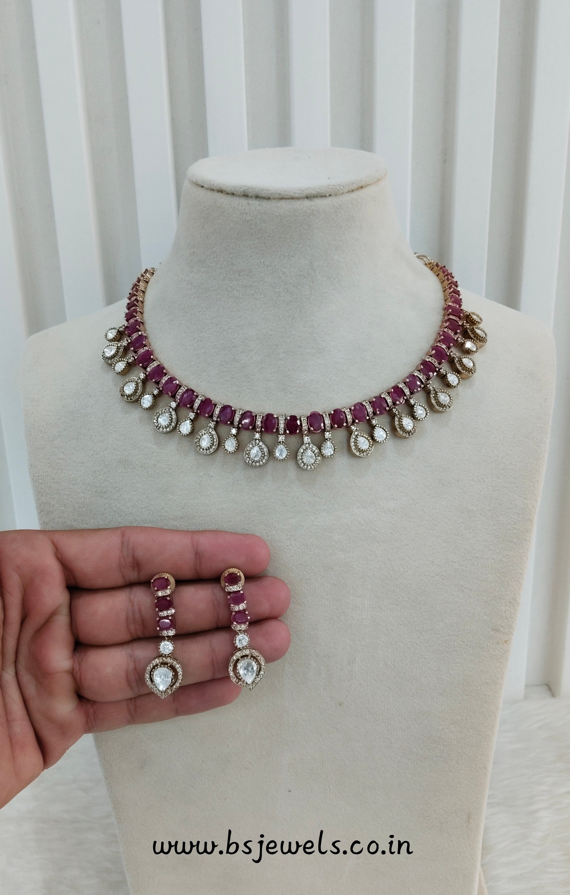 Ruby Gold Moissanite Kundan Necklace Jewellery Echer Set