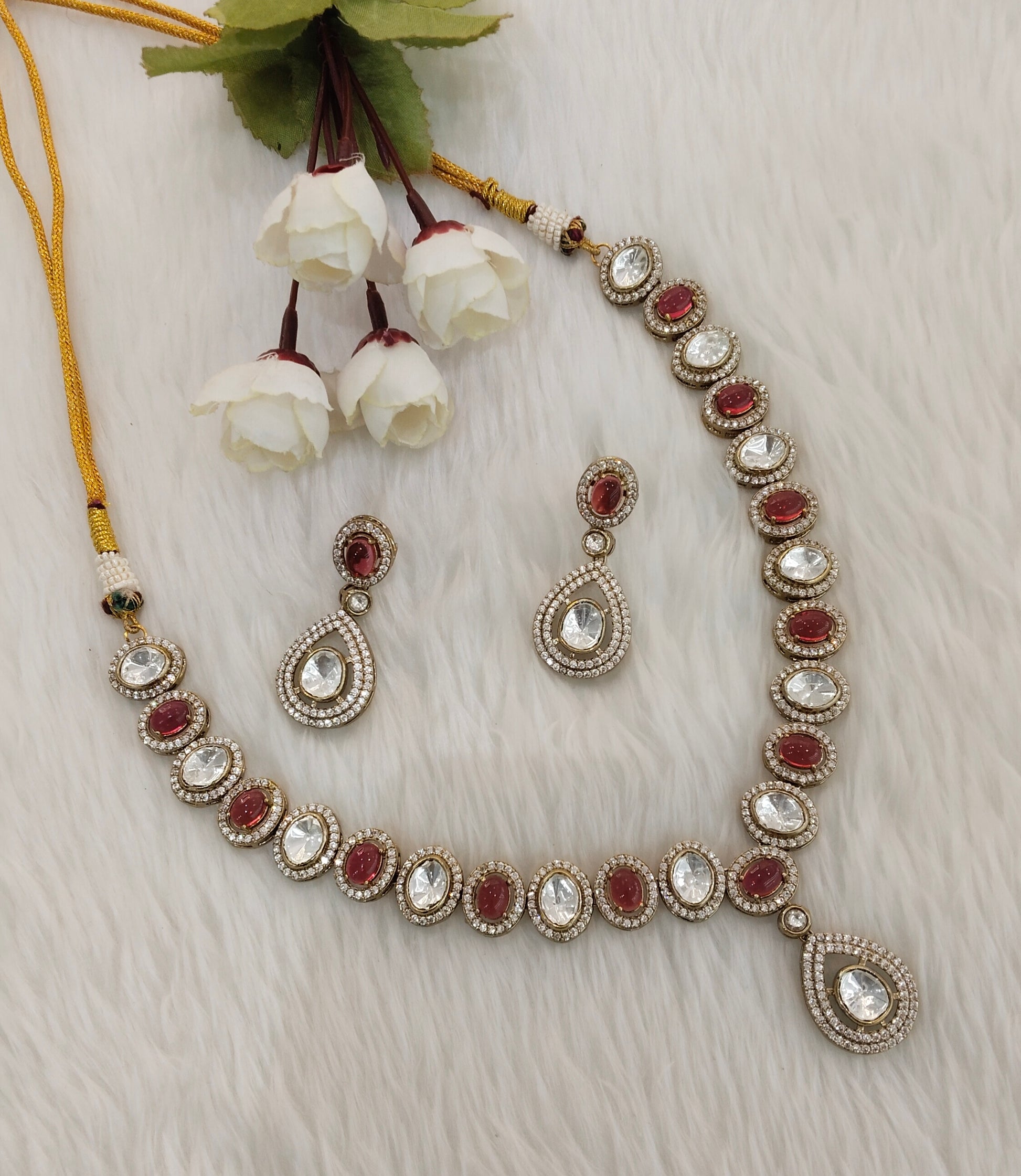 Ruby Gold Moissanite Kundan Necklace Jewellery Sonalika Set