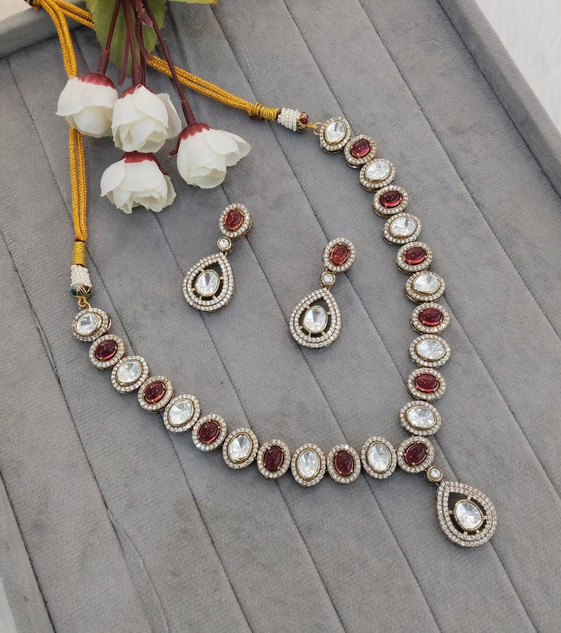 *Moissanite kundan Necklace set with earrings.