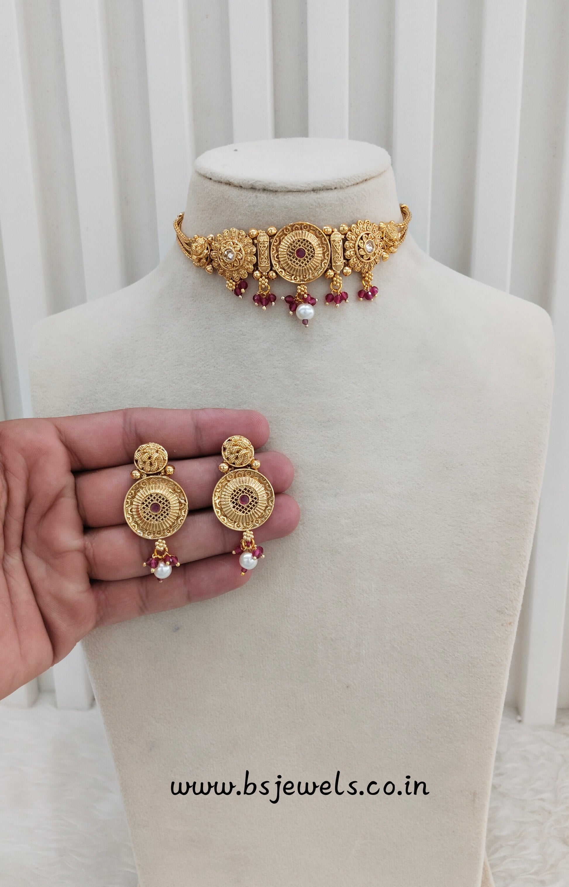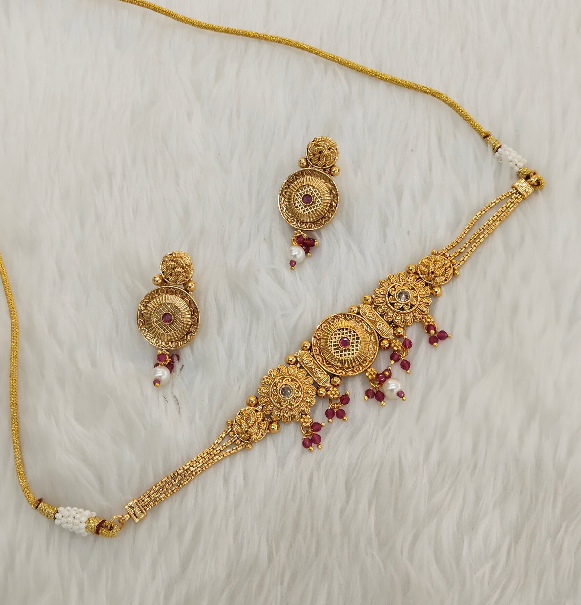 * Gold Finish Polki Choker Set with earrings as shown in the pic.
