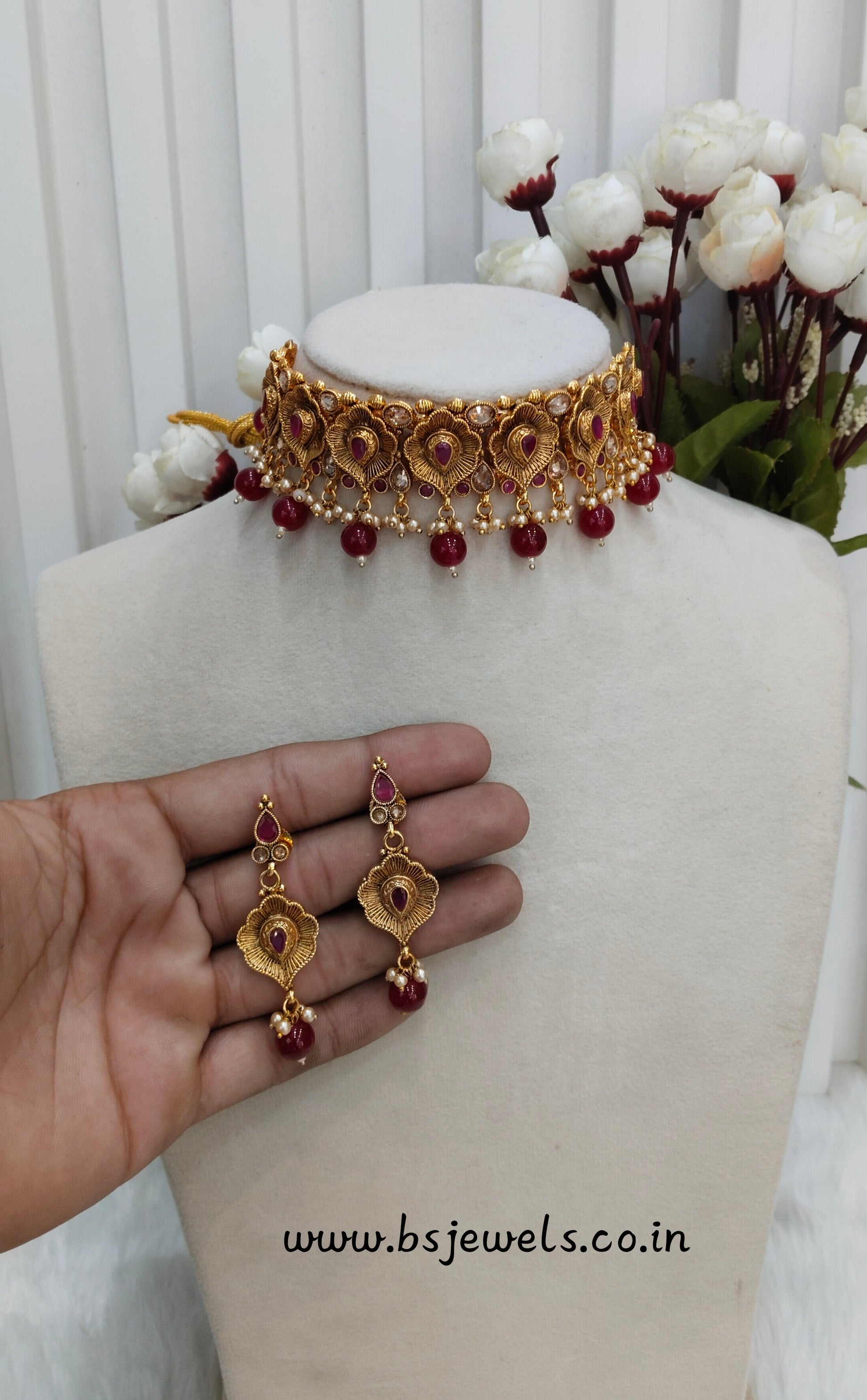 Ruby Gold Polki Choker Jewellery Bobo Set
